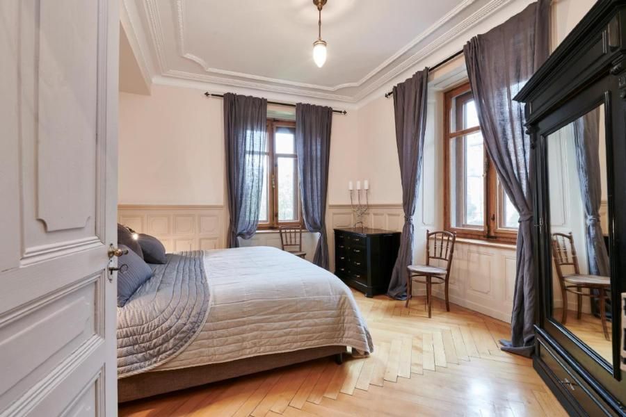 Anzahl Personen 6: Die Wohnung liegt im 2. Stockwerk. Das Haus bietet Platz für sechs Gäste (plus Baby). Es stehen drei Doppelzimmer zur Verfügung. Die Küche mit den wunderschönen buntglas Fenstern bietet modernen Komfort. Im danebenliegenden Esszimmer hat man einen wunderschönen Blick über La Chaux-de-Fonds, da die Domaine des Tourelles etwas erhöht liegt. Das Badezimmer ist mit Badewanne und Toilette ausgestattet. Die Böden bestehen aus Holz und Stein weshalb wir gute Hausschuhe empfehlen.