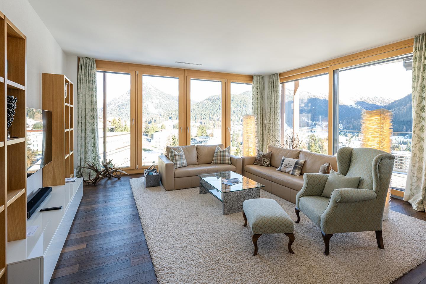 4 Zimmerwohnung (ca. 144 m2) im 6. OG; Mehrfamilienhaus mit Lift, Balkon; 2 Autoabstellplätze in Garage; Mitbenützung des Skiraumes, Waschmaschine/Tumbler; Küche mit Backofen, 4 Plattenglaskeramikherd, Kühlschrank mit Tiefgefrierfach, Geschirrspülmaschine; 1 Bad/WC, 2 Dusche/WC; 3 Doppelzimmer mit je 1 Bett mit 2 Einzelmatratzen; Polstergruppe, Essecke, Bettwäsche, Frottewäsche, Küchentücher, Duvet, TV, WLAN, Abfallsäcke blau; Nichtraucher-Wohnung; keine Haustiere erlaubt; Kinderreisebett steht auf Wunsch zur Verfügung.