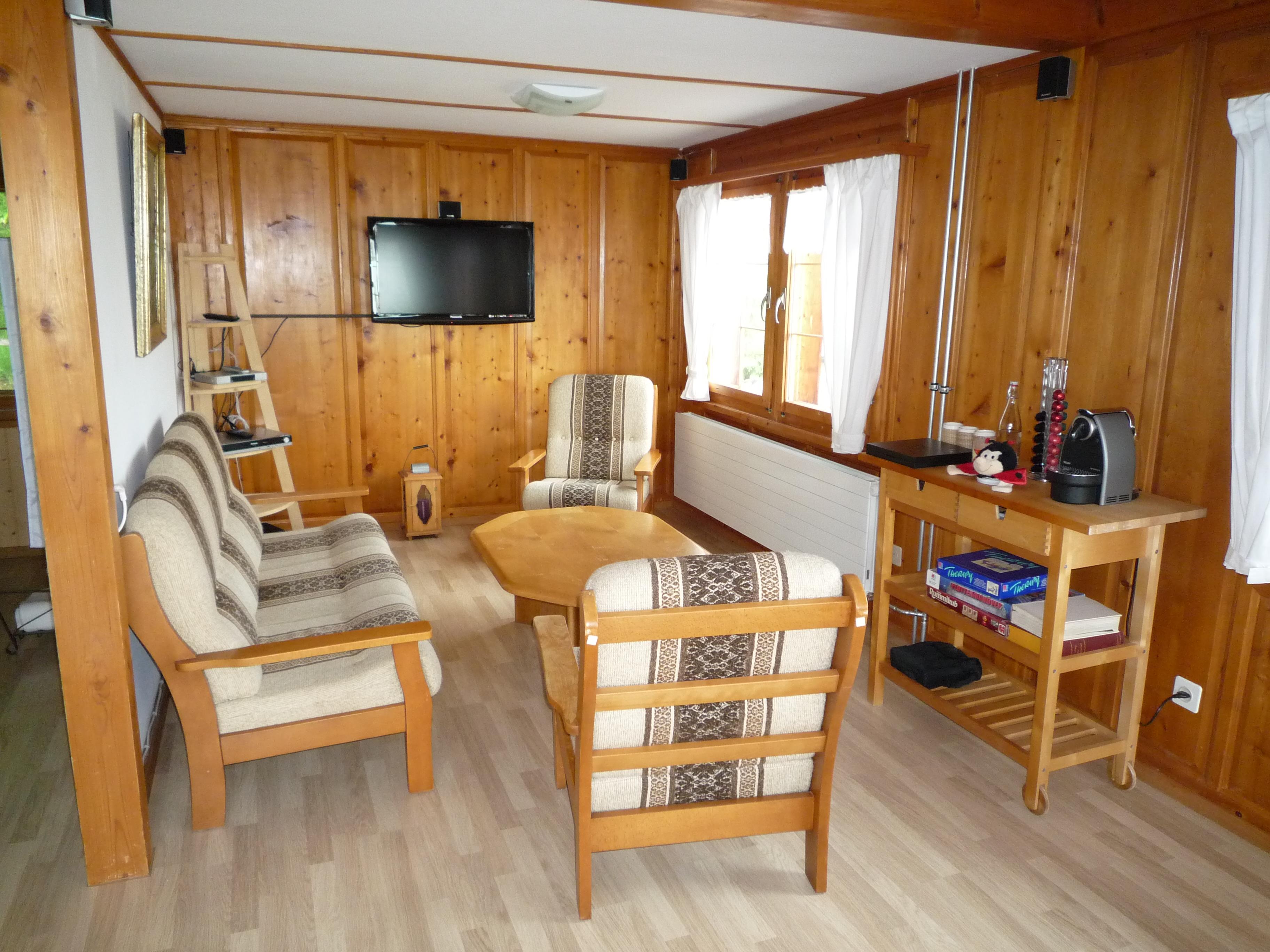 Gut eingerichtetes Chalet mit 2 sonnigen Balkonen. Offene Küche mit Esstisch, Wohnzimmer mit Schwedenofen, TV (keine Schweizer Sender), Radio, DVD, 2 Schlafzimmer (1 im Erdgeschoss mit Doppelbett und 1 Schlafzimmer im Obergeschoss mit 5 Betten), 1 Badezimmer mit Dusche/WC im Erdgeschoss und 1 WC/Lavabo im Obergeschoss. Im Weiteren sind folgende Geräte vorhanden: Geschirrsülmaschine, Backofen, Kühl- und Gefrierschrank, Waschmaschine.
