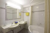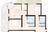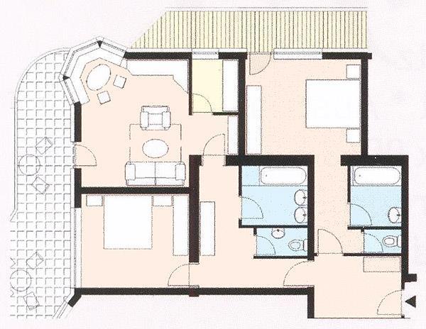 Appartement mit ca. 95 m² bestehend aus: 1 Doppelzimmer mit Flat-TV und Badezimmer mit Dusche und separatem WC, 1 weiteres Doppelzimmer mit Flat-TV , 1 Badezimmer mit Badewanne, 1 zusätzliches separate WC; 1 Wohn-Schlaf-Raum mit ausziehbarer Doppel-Couch für 2 Personen und Essecke, vollausgestattete Küche mit Cerankochfeld, Mikrowelle, Spülmaschine uvm. Flat- TV, Telefon, W-Lan, Balkon, Terrasse.