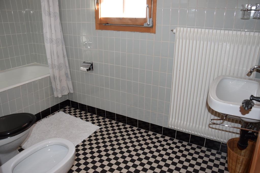 Grosses Wohn- und Esszimmer, Tisch für acht Personen, Cheminée, Stereoanlage, Küche mit Geschirrspüler, Backofen, Kühlschrank und Tiefkühler. Nespresso-Kaffeemaschine, 3 Doppelzimmer mit Doppelbetten (180 x 200 cm), 1 Doppelzimmer mit zwei Einzelbetten und zwei weiteren Ausziehbetten (insgesamt 4), 1 Zusatzzimmer für die Eigentümer. 2 Badezimmer, 1 Abstellraum mit einer Waschmaschine und Tumbler, Tiefkühler, Regale usw. 2 PKW-Parkplätze nicht gedeckt, Balkon im 1. Stock mit Tisch. Die beiden Parkplätze befinden sich neben der Garage und sind beschriftet. Bitte nicht unter das Dach der Garage parkieren, da die Garage jederzeit, für die Eigentümer der Wohnungen, zugänglich sein muss und das Garagentor geöffnet werden kann. Sollten Sie einen weiteren Parkplatz benötigen, können Sie das dritte Auto im Dorf auf öffentlichen Parkplatz Brüggmatte, im Sommer kostenlos sowie im Winter gebürenpflichtig parkieren.