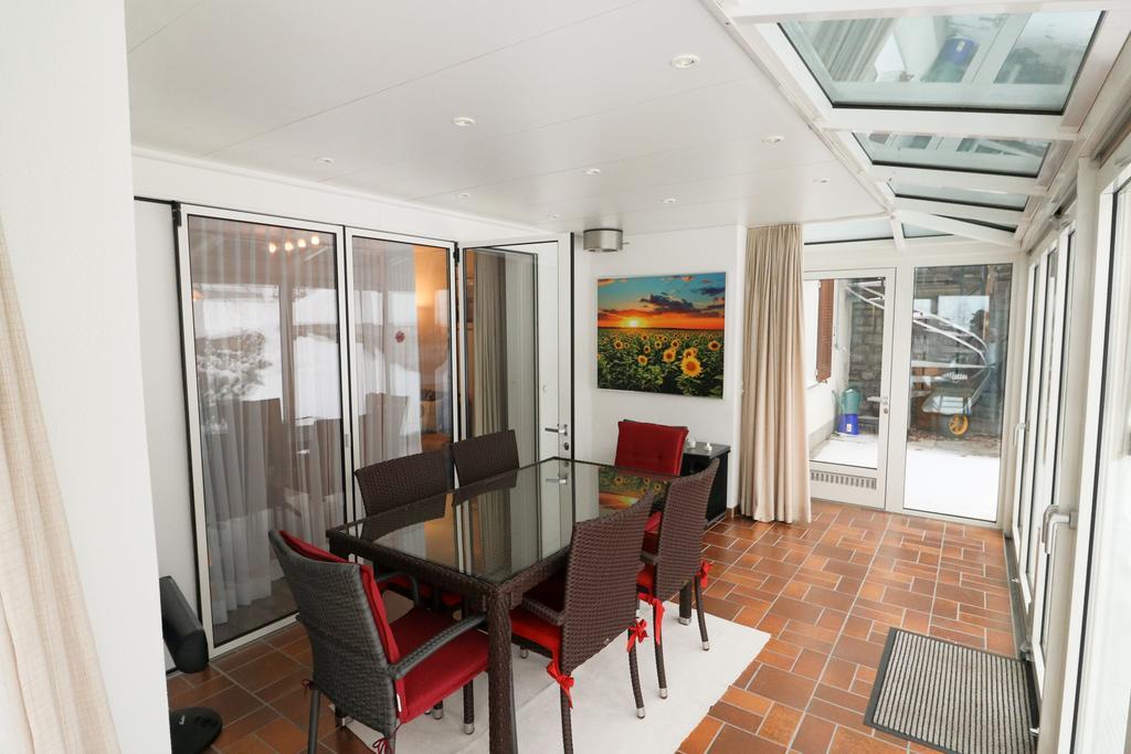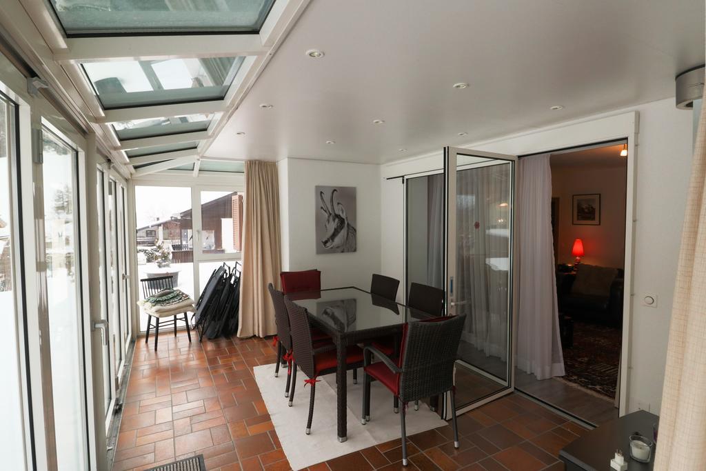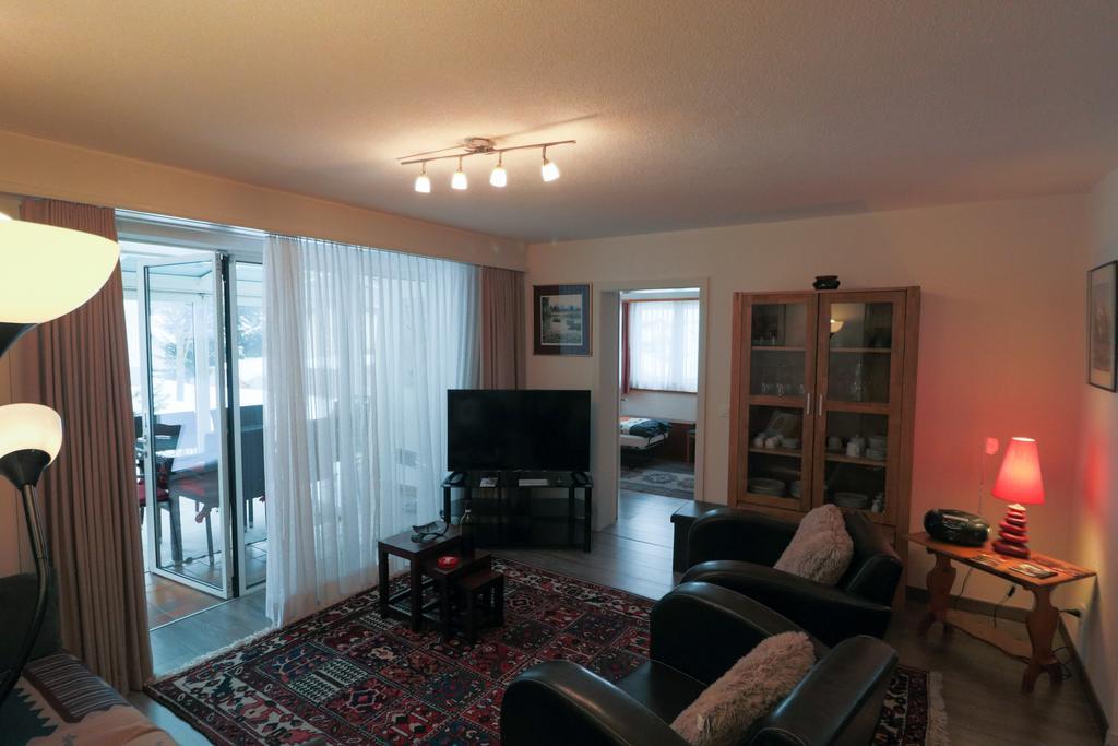 3 ½ Zimmer Wohnung (ca. 80m2) und Wintergarten (ca. 30m2) für 6 Personen (4 Erwachsene + 2 Kinder ); sehr ruhig gelegen, Privatstrasse; Zufahrt nur für Bewohner / Gäste; Parkplatz; Bergblick; Wohnzimmer mit Sofa, 2 englische Sessel, TV, WLAN; Wohnküche mit Tisch 6 Plätze, Geschirrspüler, Backofen, Mikrowelle, Kühlschrank, Kaffemaschine; 1 Schlafzimmer mit 1 Doppelbett; 1 Schlafzimmer mit 1 Doppelbett und 1 Kajutenbett (für 2 Kinder); Bad/WC; direkte Zufahrt zur Haustür mit den Ski vom Skigebiet Jakobshorn; Haustiere auf Anfrage; Nichtraucher Wohnung.