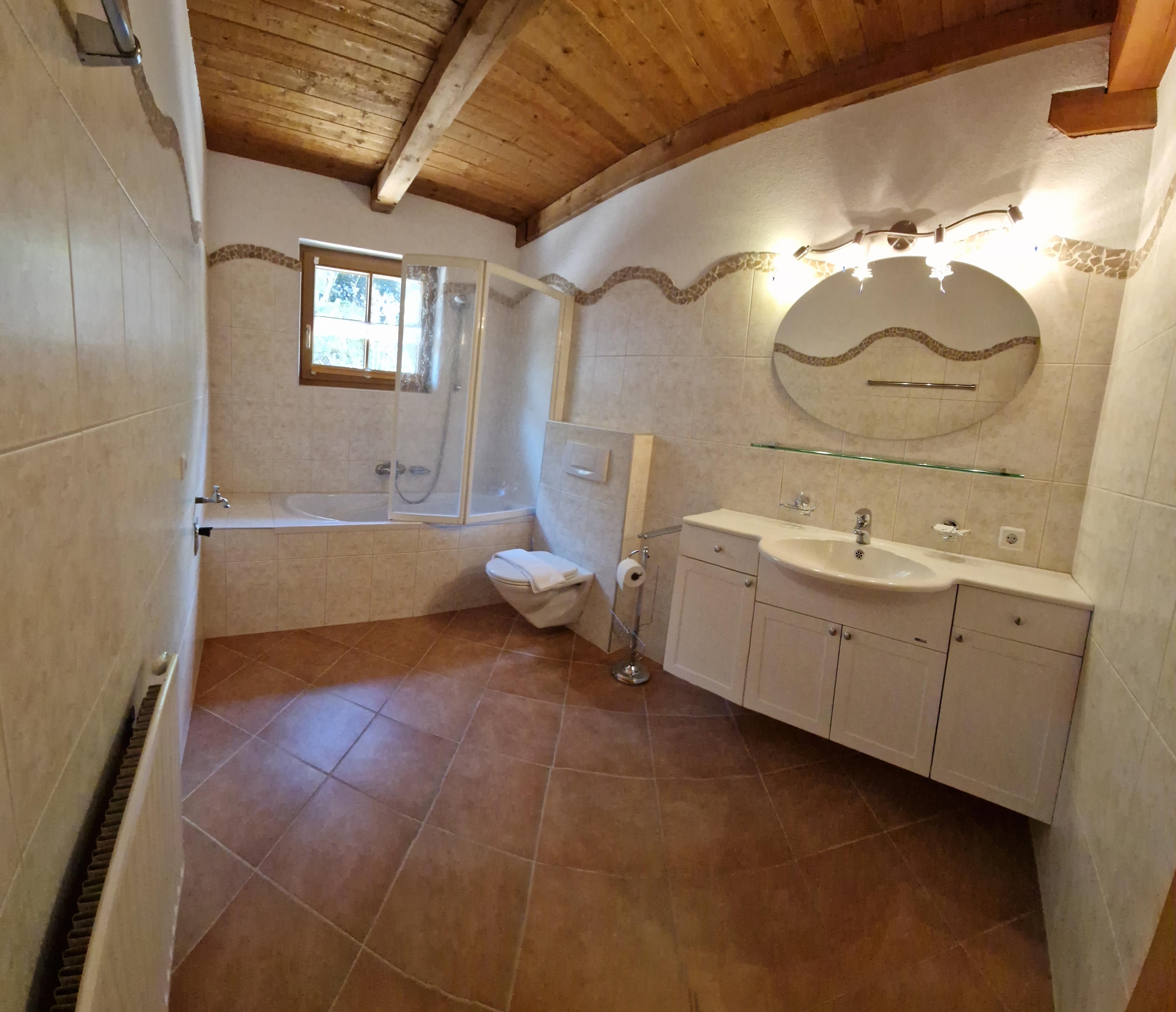 Appartement 3 im Dachgeschoss mit ca. 60 m²: 2 Doppelzimmer, 1 Badezimmer mit Badewanne, 1 separates WC. Wohnküche mit Essbereich und Sofa (Schlafsofa für eine weitere Person), Elektroherd, Spülmaschine, Kühlschrank, Mikrowelle, Kaffeepadmaschine, Wasserkocher, Toaster, uvm.