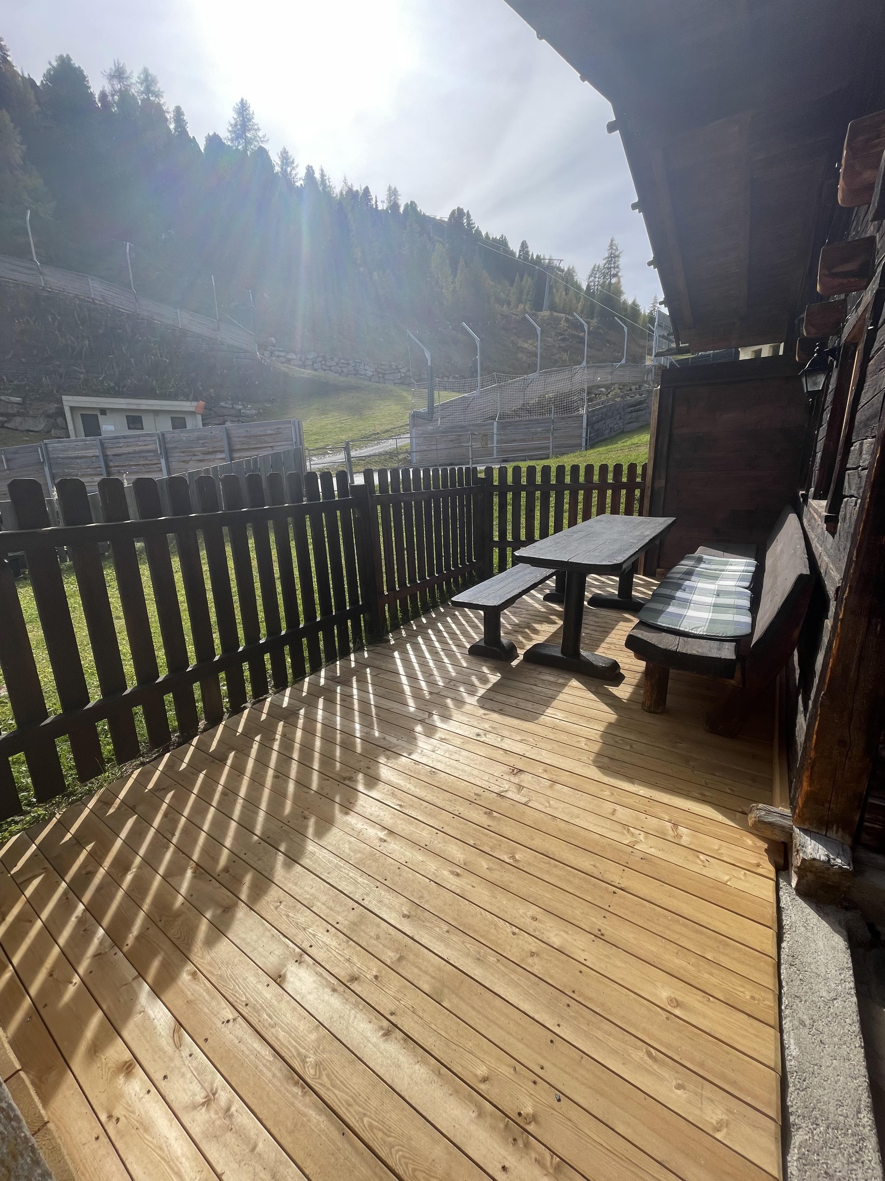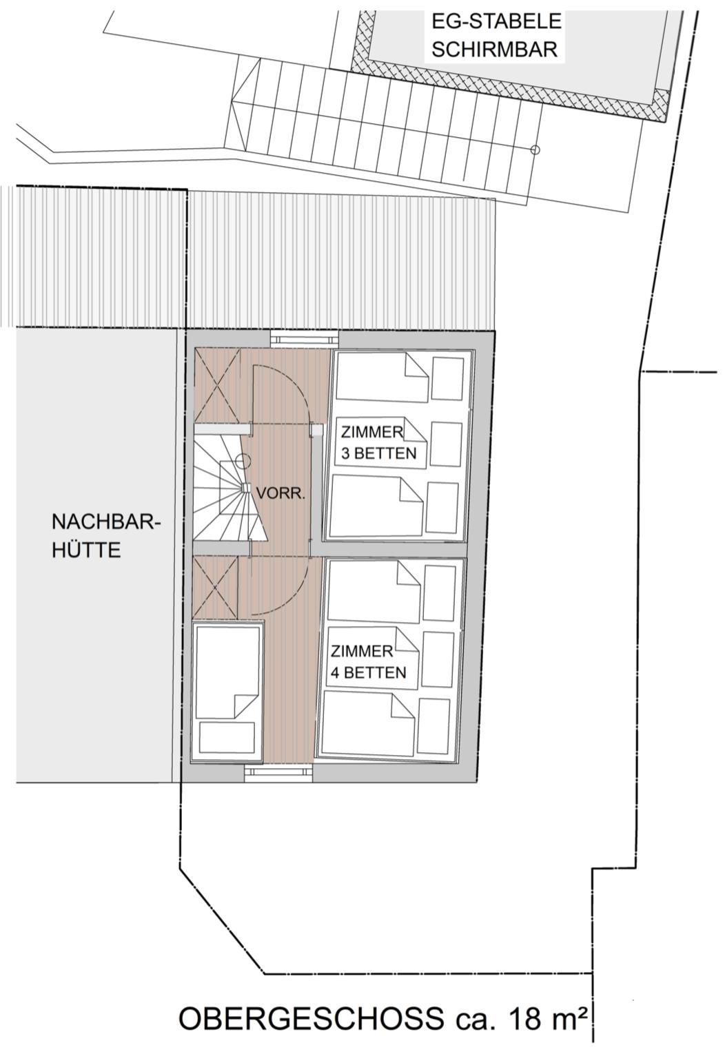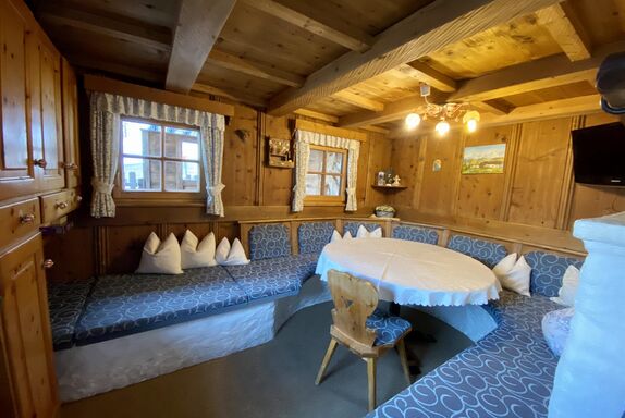 Thalers Almhütte (Stabele) mit ca. 41 m² (halbe Hütte): 1 Dreibett- und 1 Vierbettzimmer, 1 Badezimmer mit Dusche, 1 separates WC, Küche mit Geschirrspüler, E-Herd, Speisekammer uvm. Stube mit Kachelofen, der eine wohlige Wärme erzeugt und viel zur Hüttenidylle beiträgt sowie TV mit Sat-Anschluss. Skiraum, beheizter Skischuhtrockner; Auf der überdachten Terrasse können Sie unvergessliche Stunden auf der Alm erleben.