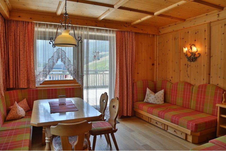 Appartement (ca.120m²) mit 3 Schlafzimmern, große Küche mit Essecke, Kaffeeautomaten und Mikrowelle,Wohnraum im Tiroler Stil mit Kachelofen mit 1 Bett , 1 Badezimmer mit Bad und Dusche, seperates WC,1 Schlafzimmer direkter Zugang zu Dusche/WC, große Sonnenterrasse, TV-Gerät mit SAT-Anschluss