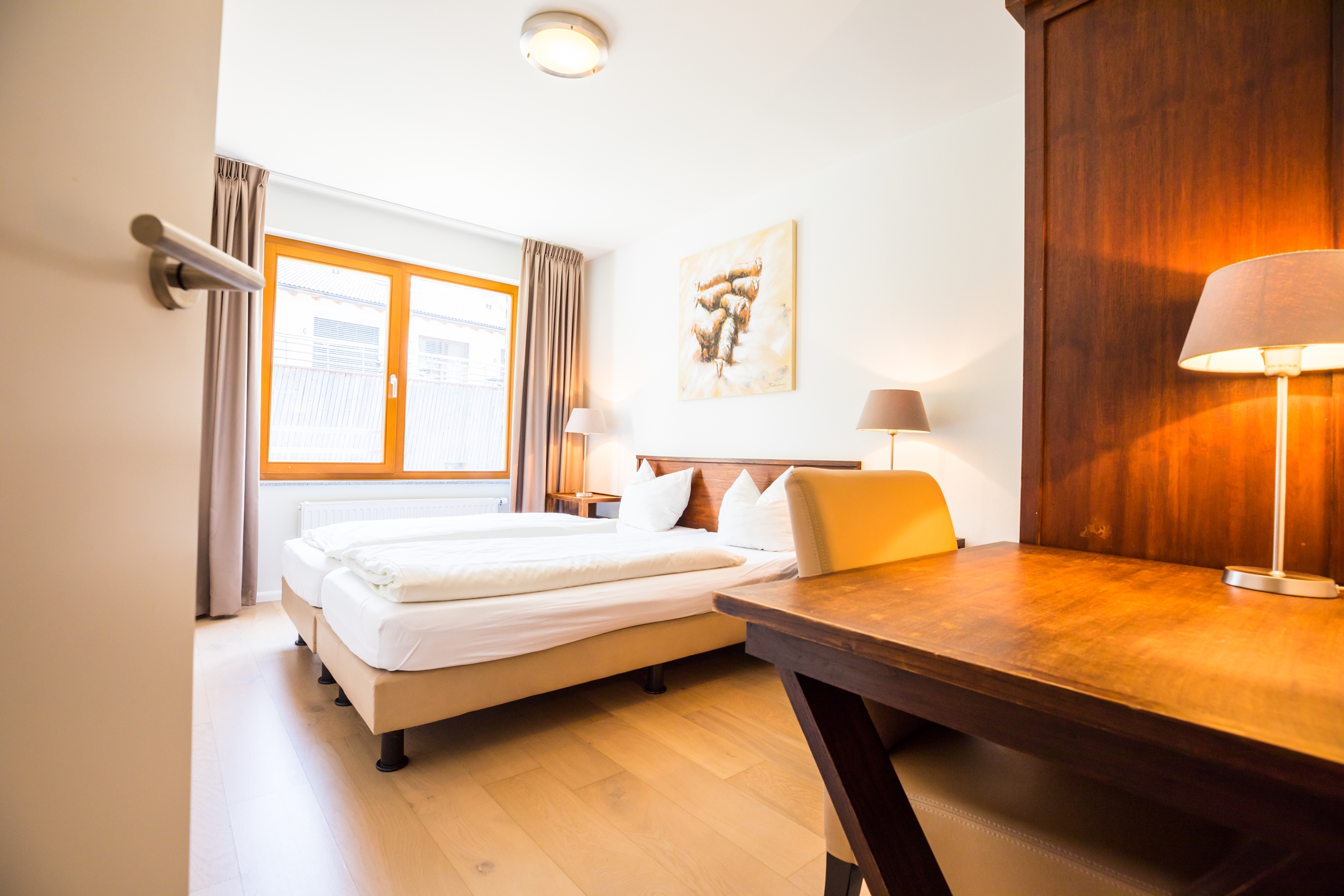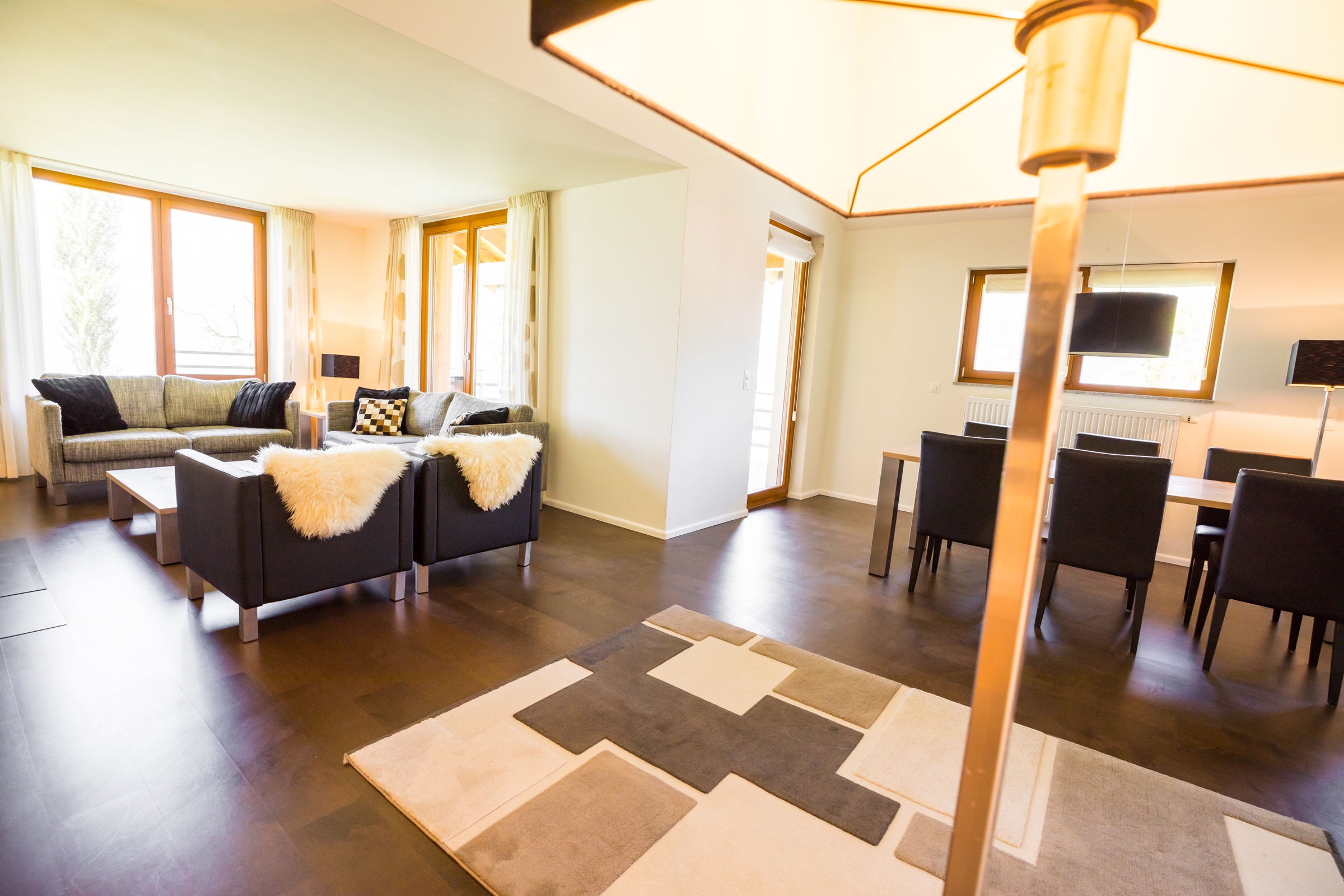 Die Wohnungen verfügen beide über einen geräumigen und gemütlichen Wohnraum. Die gesamte Wohnung ist sehr modern und mit pflegeleichtem Parkett eingerichtet. Beide Wohnungen verfügen über 3 Schlafzimmer sowie 2 separate Badezimmer mit Bad, Dusche, WC sowie einer Sauna. Technische Einrichtung