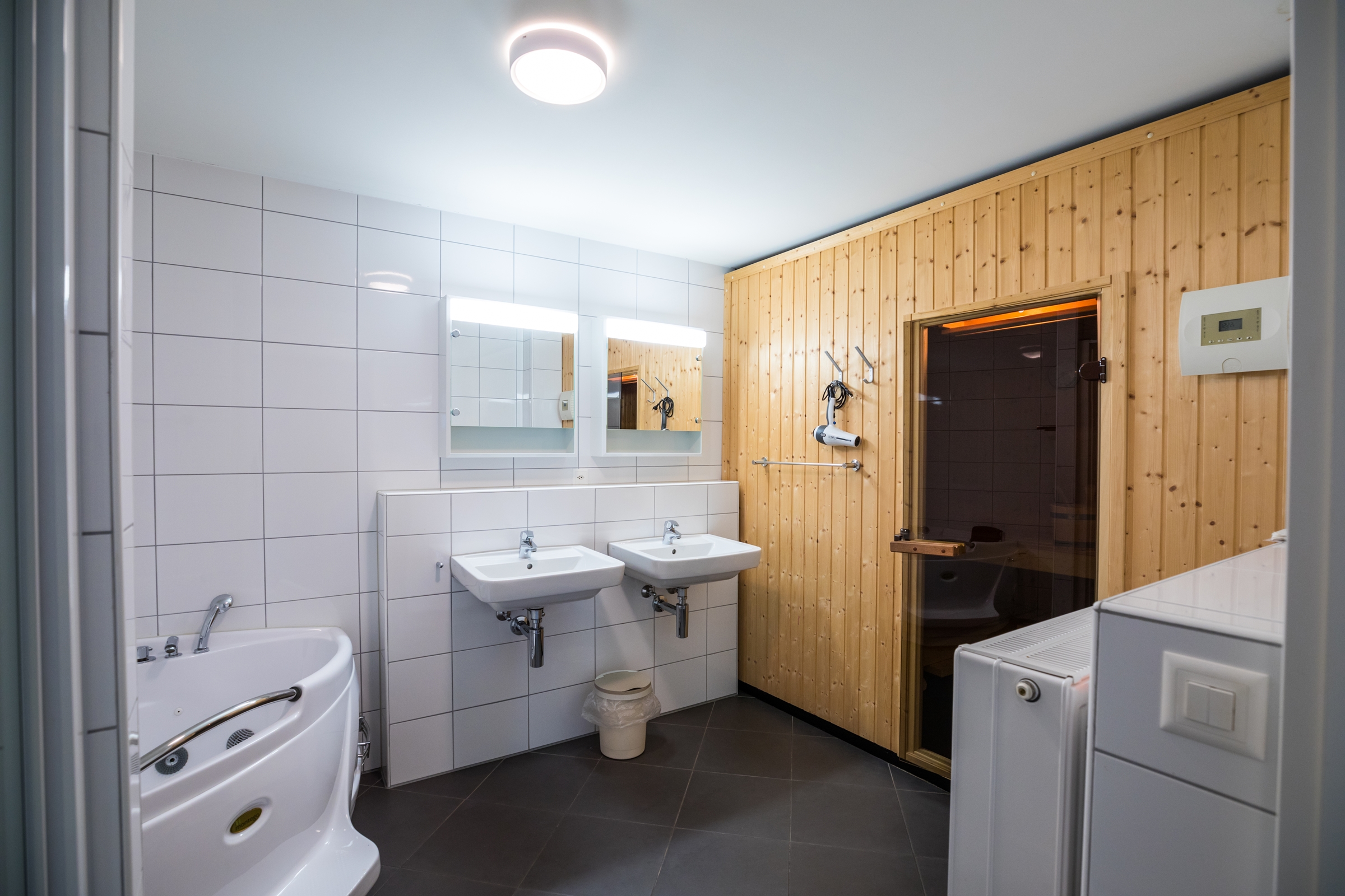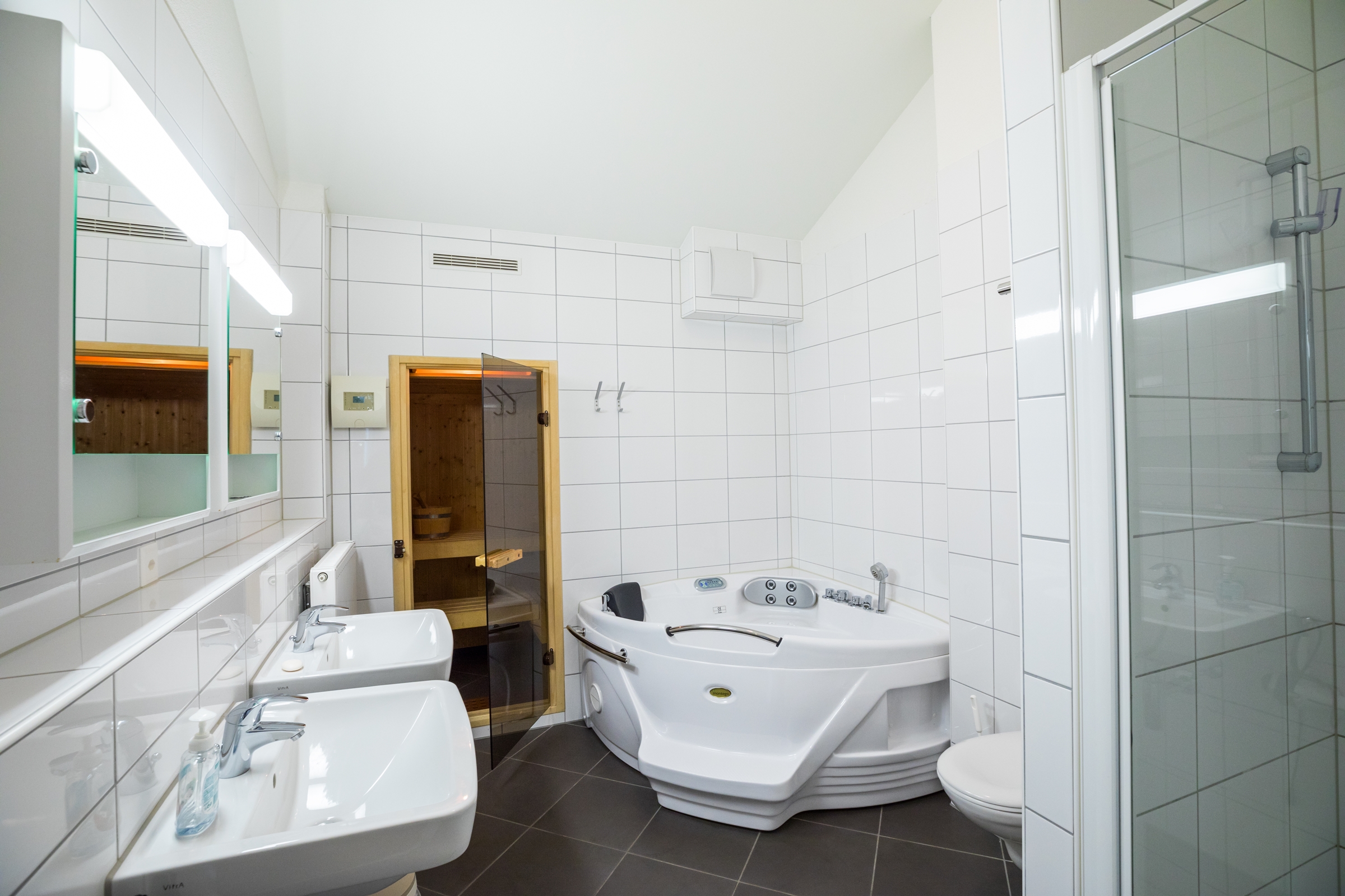 Die Ferienwohnung verfügt über 3 Schlafräume mit je 2 Betten 2 separate Toiletten und Duschen und eine Badewanne 1 Sauna