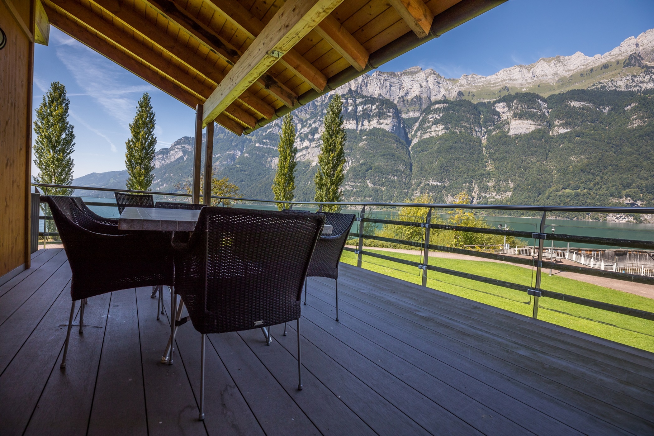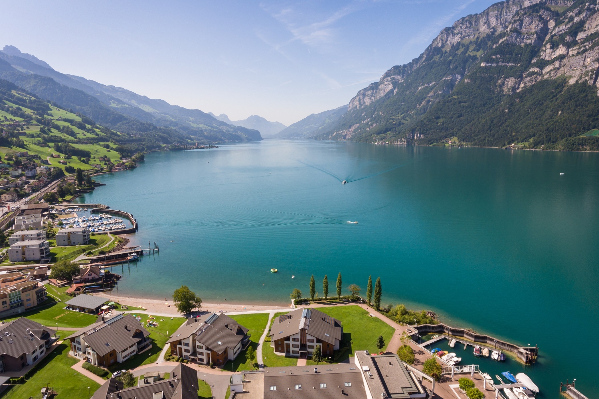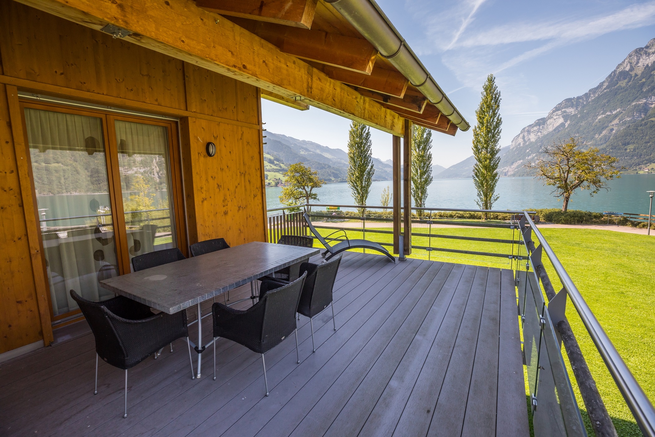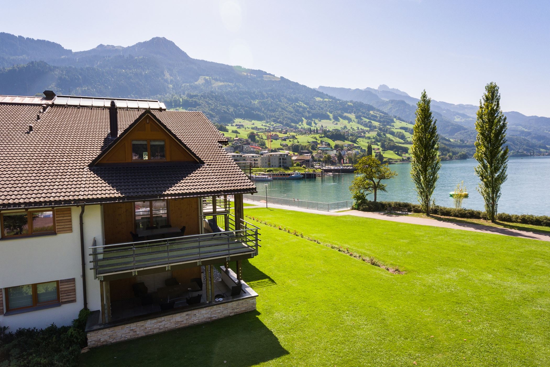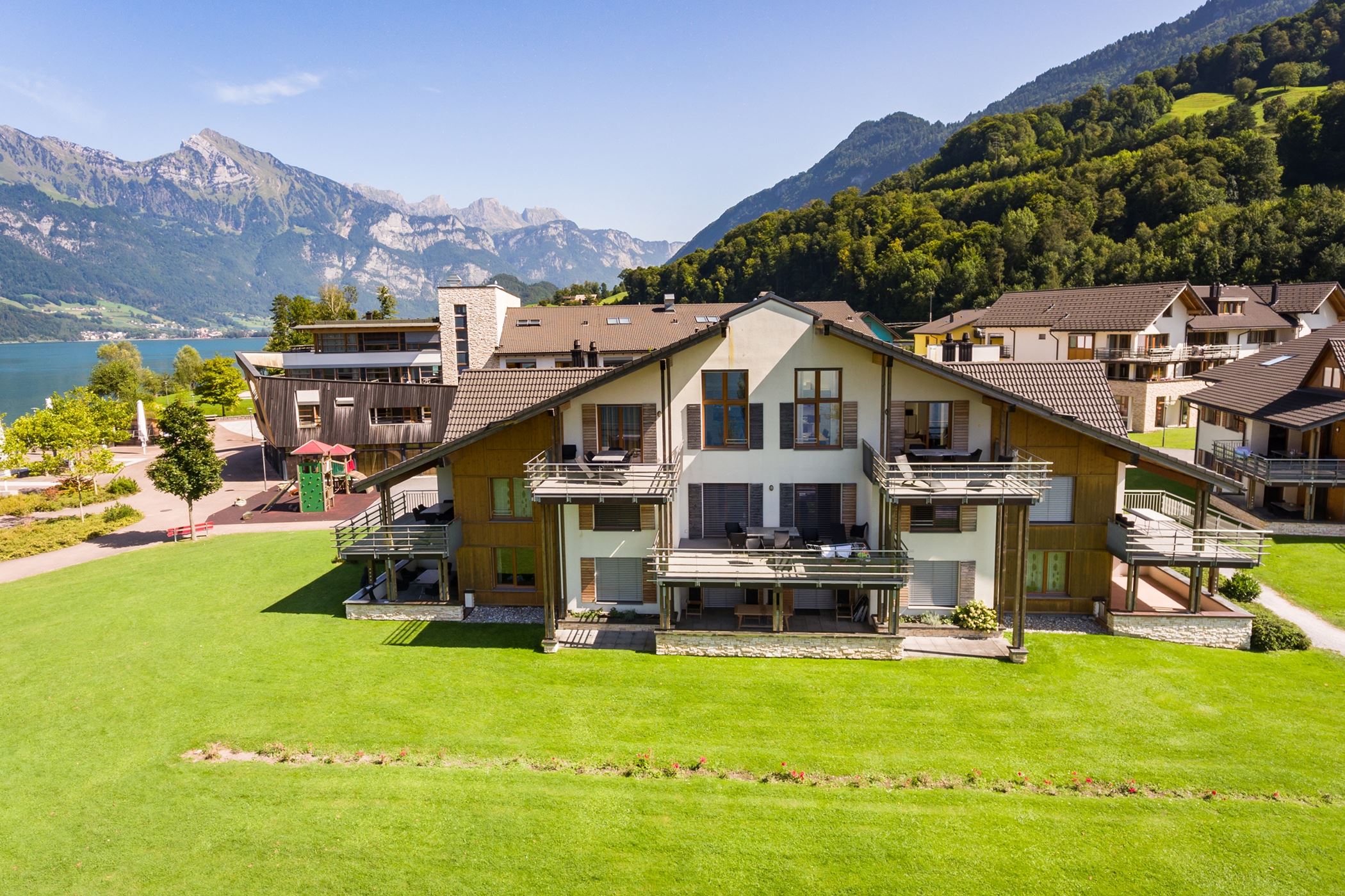 Die Ferienwohnungen Nr. 129 & 130 vom Haus A3 im Walensee Resort in Unterterzen haben eine wunderschöne Aussicht auf den Walensee und die umliegenden Churfirsten. Die Ferienwohnungen sind ein idealer Ausgangspunkt für Wanderausflüge sowie See- und weitere Outdooraktivitäten. Die ruhig gelegenen Wohnungen sind nur wenige Meter vom Bahnhof, den Bergbahnen sowie den nächsten Einkaufsmöglichkeiten entfernt. Details der einzelnen Ferienwohnungen 1x 4.5 Zimmerwohnung Penthouse im 3. Stock 1x 4.5 Zimmerwohnung im 2. Stock Inneneinrichtung
