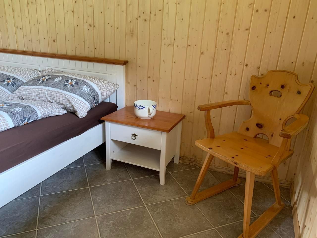 Im Schlafzimmer hat es ein Doppelbett sowie ein kleines Massenlager für maximal 3 Kinder (Zugang über eine Leiter).