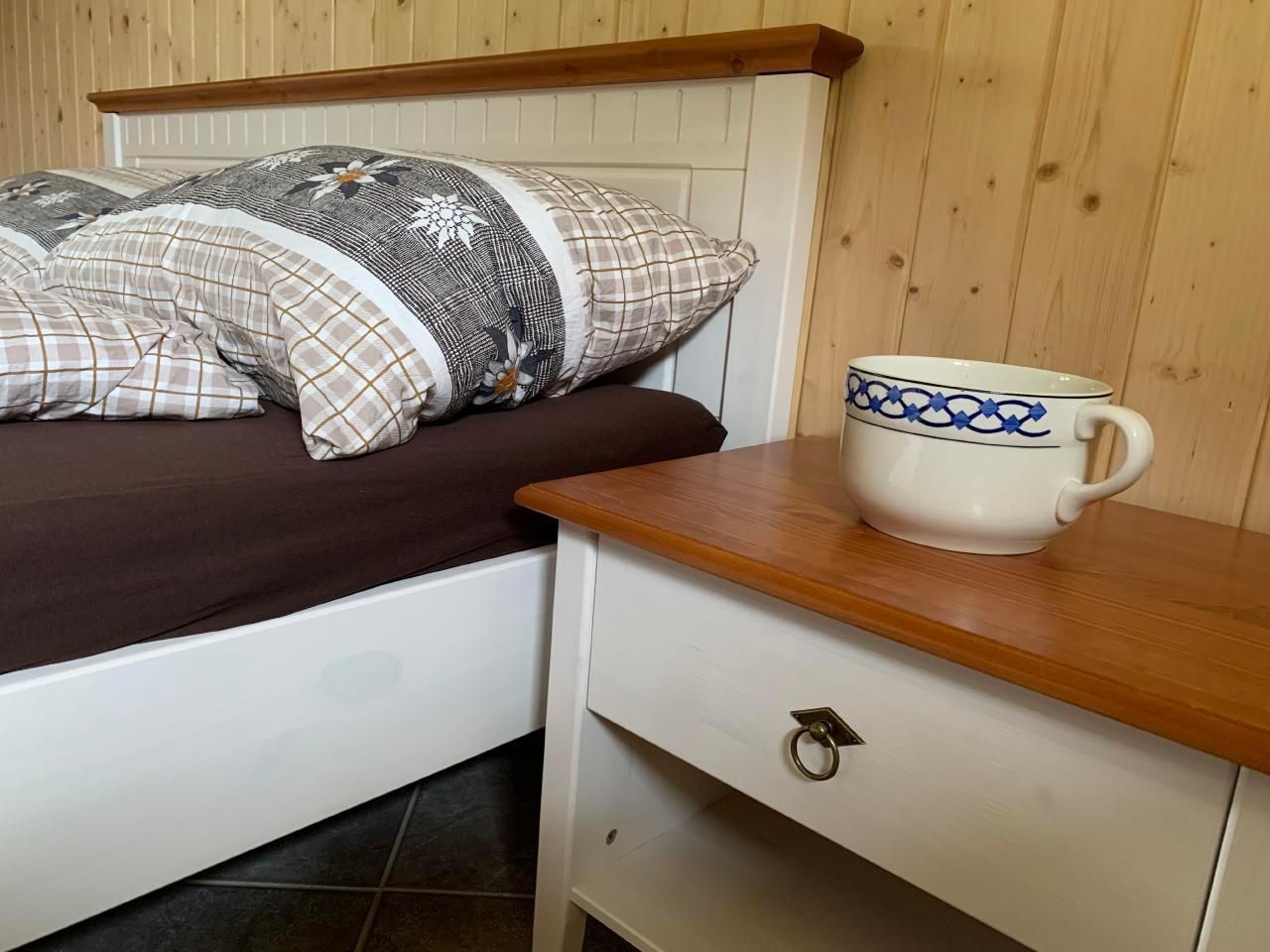 Das Schlafzimmer wird elektrisch mit Bodenheizung gewärmt.