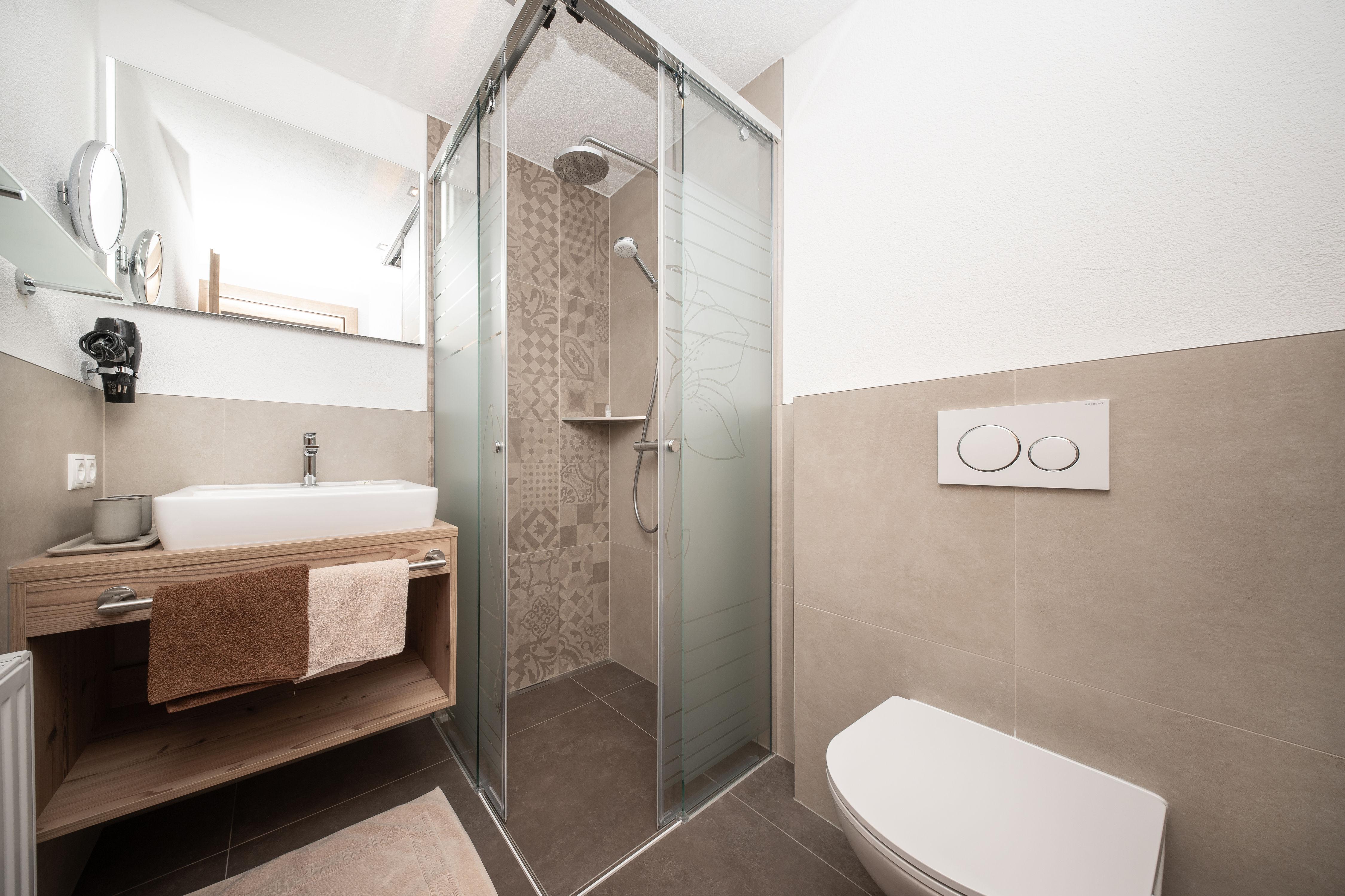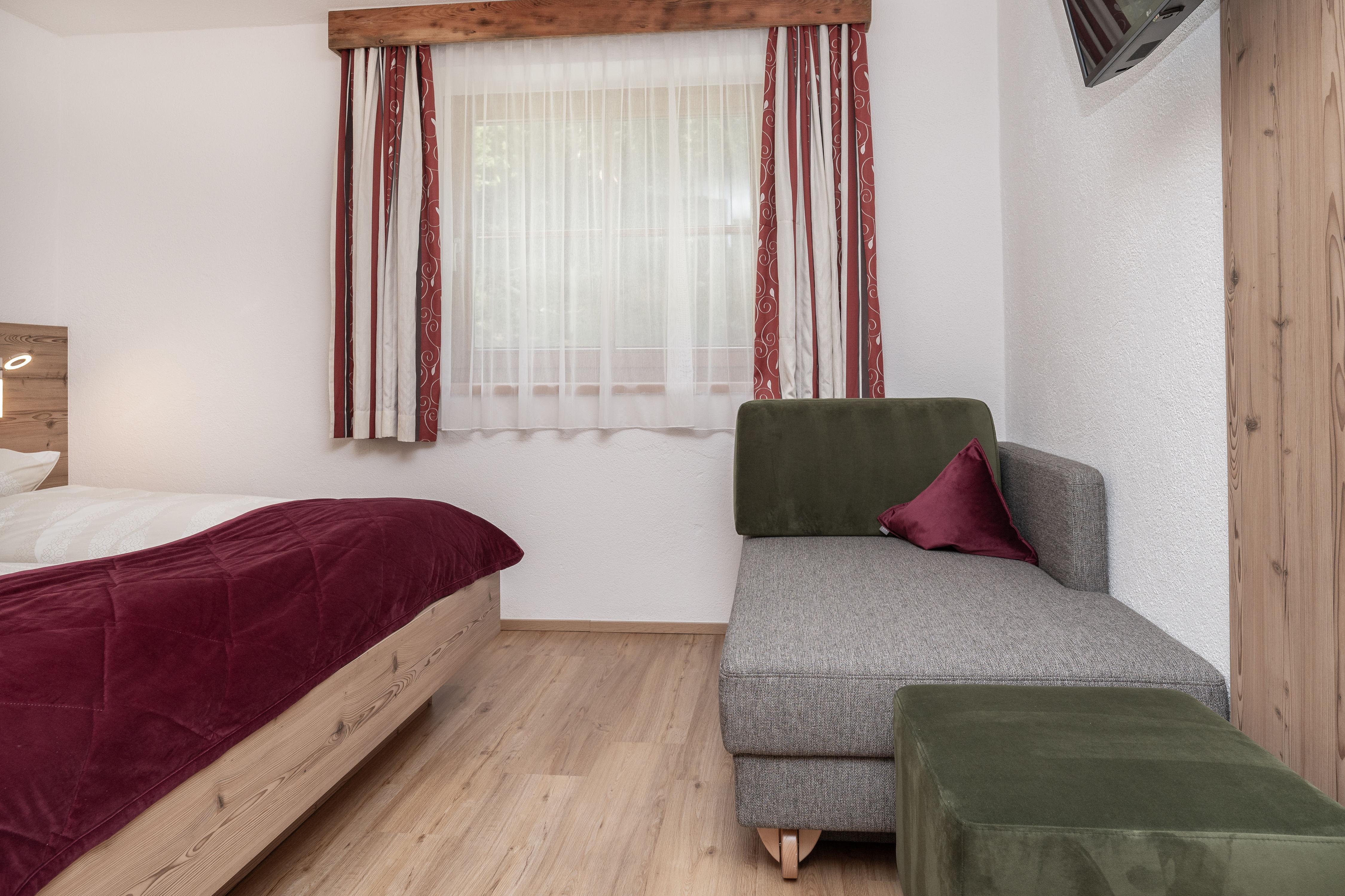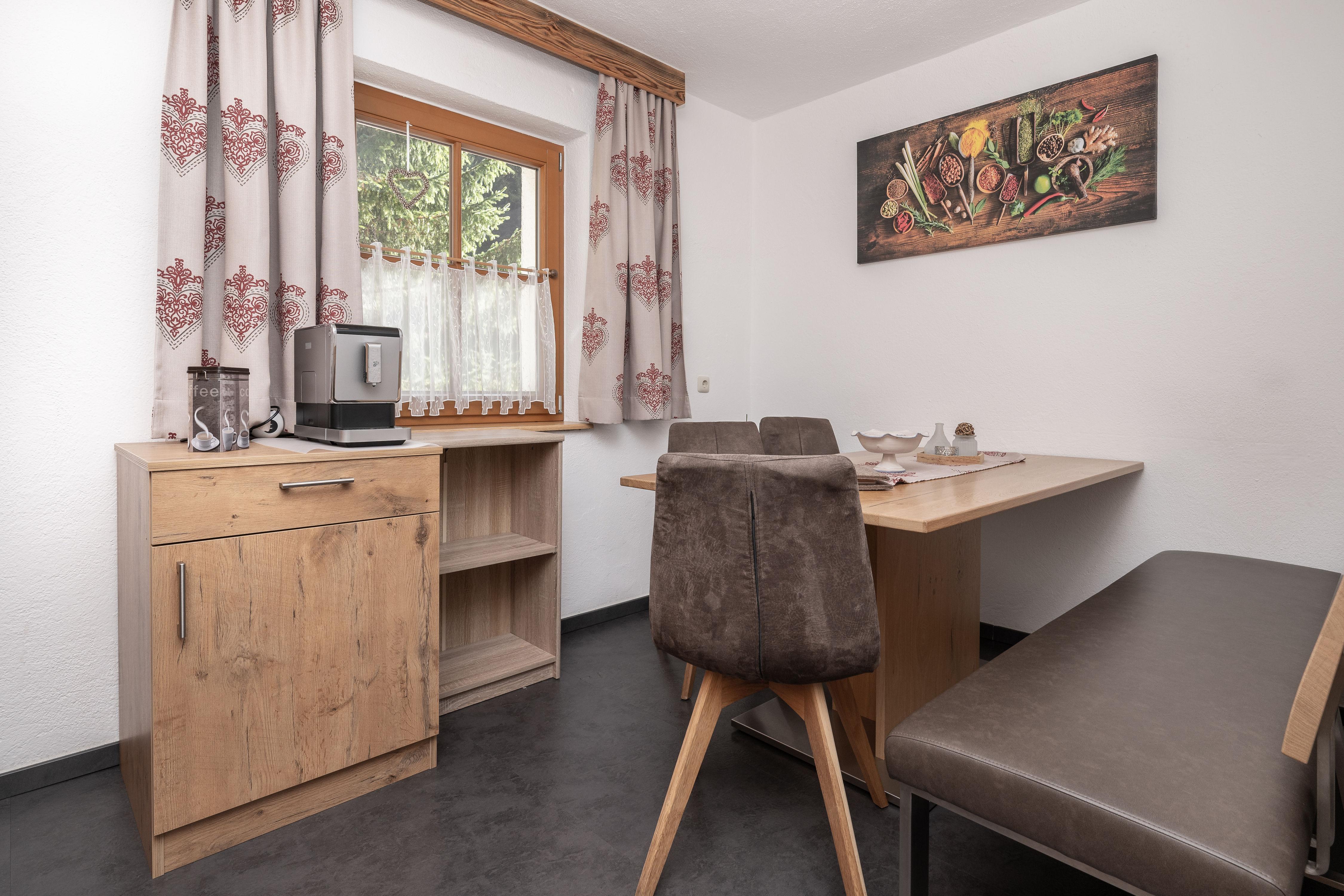 Ihr gemütliches Appartement Enzian mit ca. 60 m² verfügt über: 2 Schlafzimmer mit Doppelbetten (1 x mit zusätzlichem Schlafsofa für eine weitere Person), 2 Badezimmer mit Dusche/WC, 1 Wohnküche mit Essecke und Küchenblock (mit Ceranfeld, Backofen, Geschirrspüler, Kaffeemaschine), SAT-TV, Safe und Südbalkon.