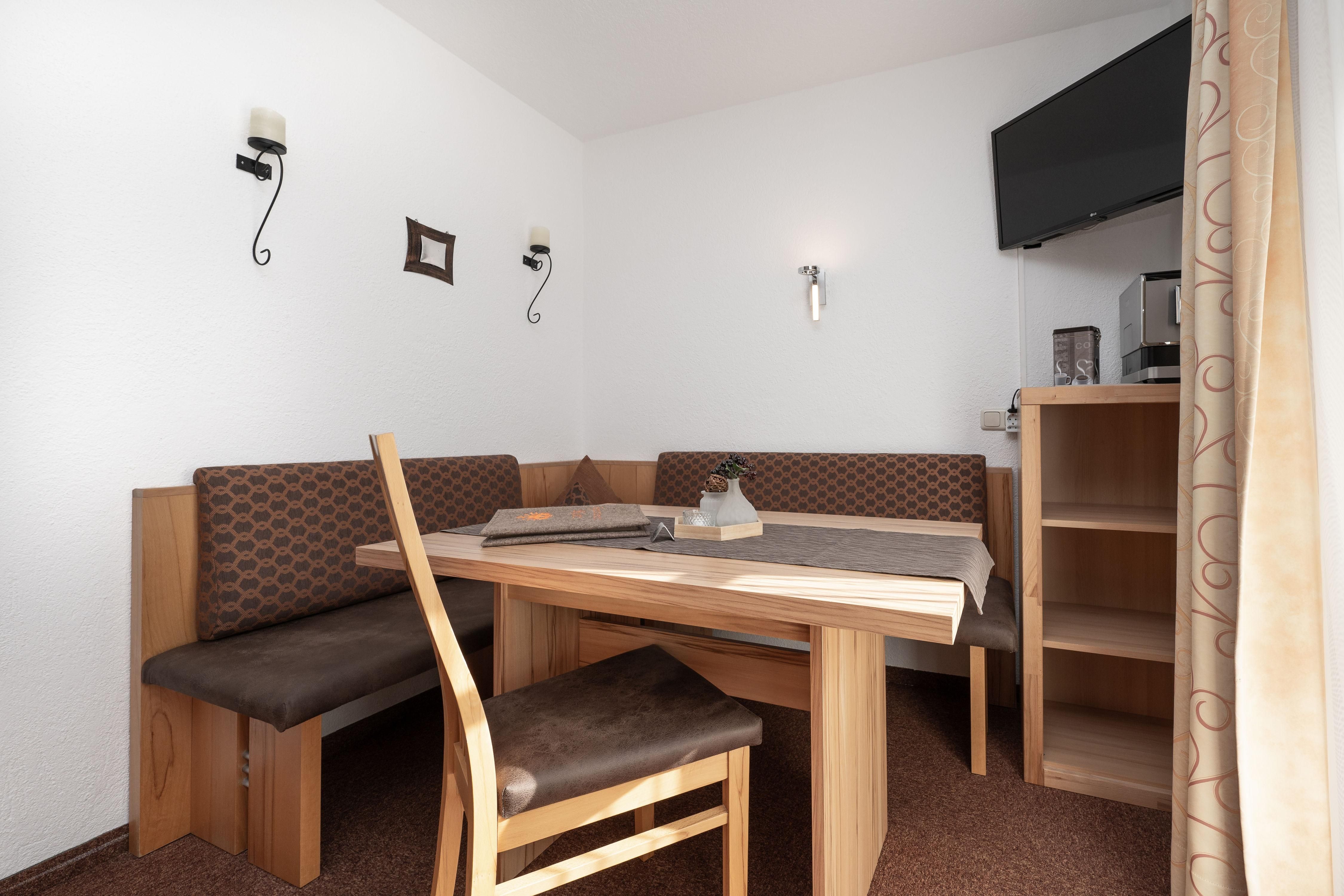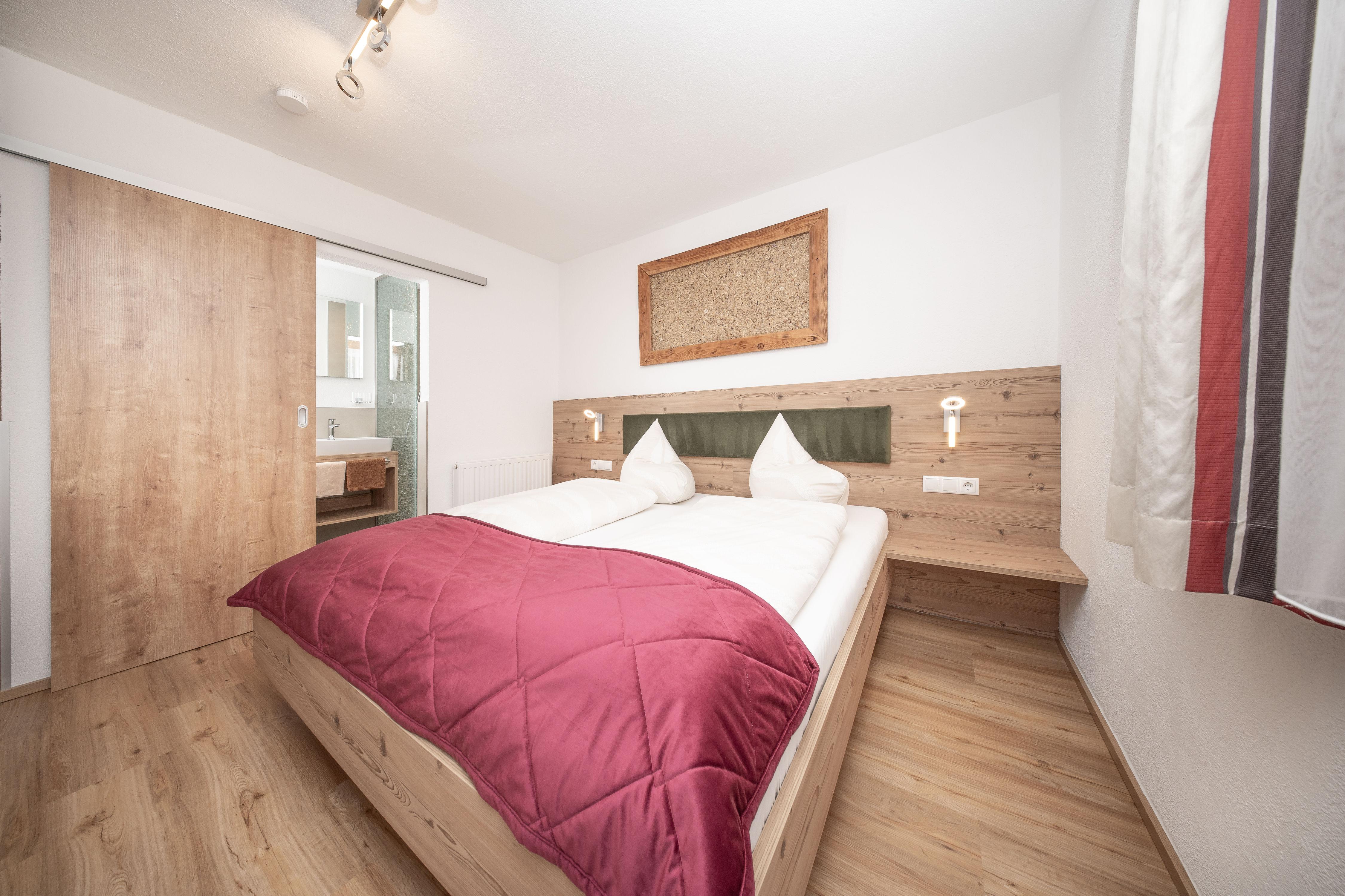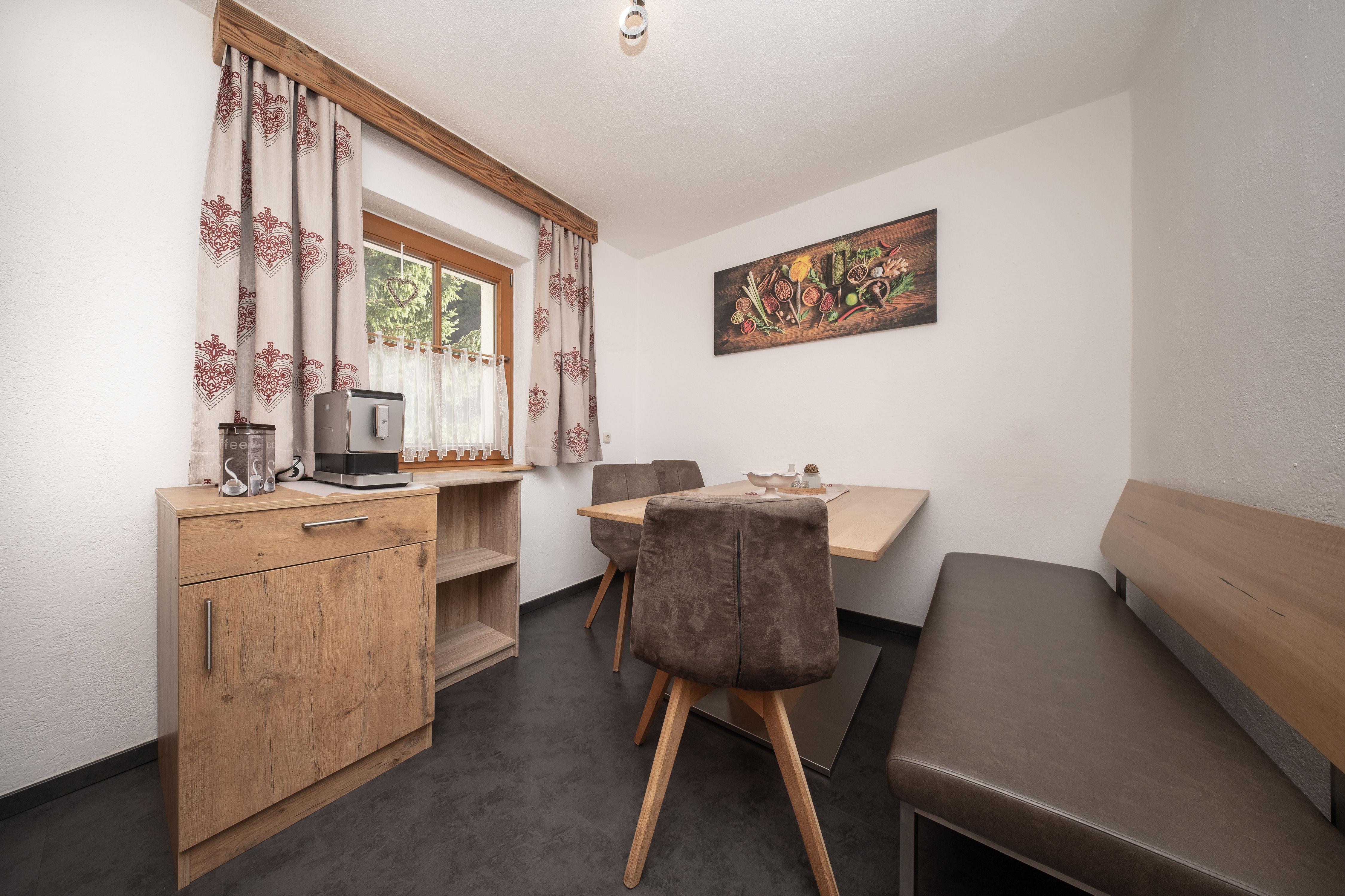 Ihr gemütliches Appartement Enzian mit ca. 60 m² verfügt über: 2 Schlafzimmer mit Doppelbetten (1 x mit zusätzlichem Schlafsofa für eine weitere Person), 2 Badezimmer mit Dusche/WC, 1 Wohnküche mit Essecke und Küchenblock (mit Ceranfeld, Backofen, Geschirrspüler, Kaffeemaschine), SAT-TV, Safe und Südbalkon.