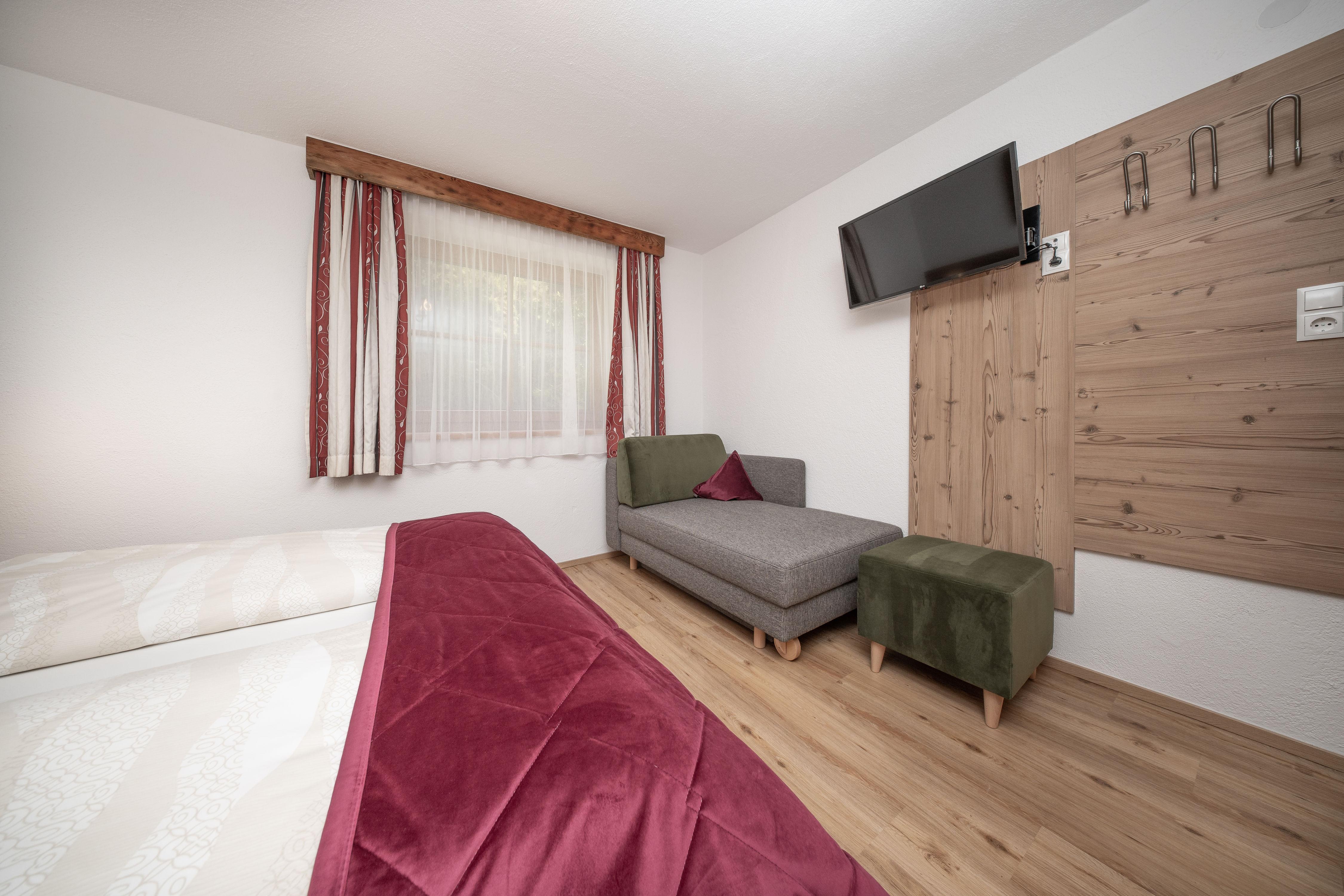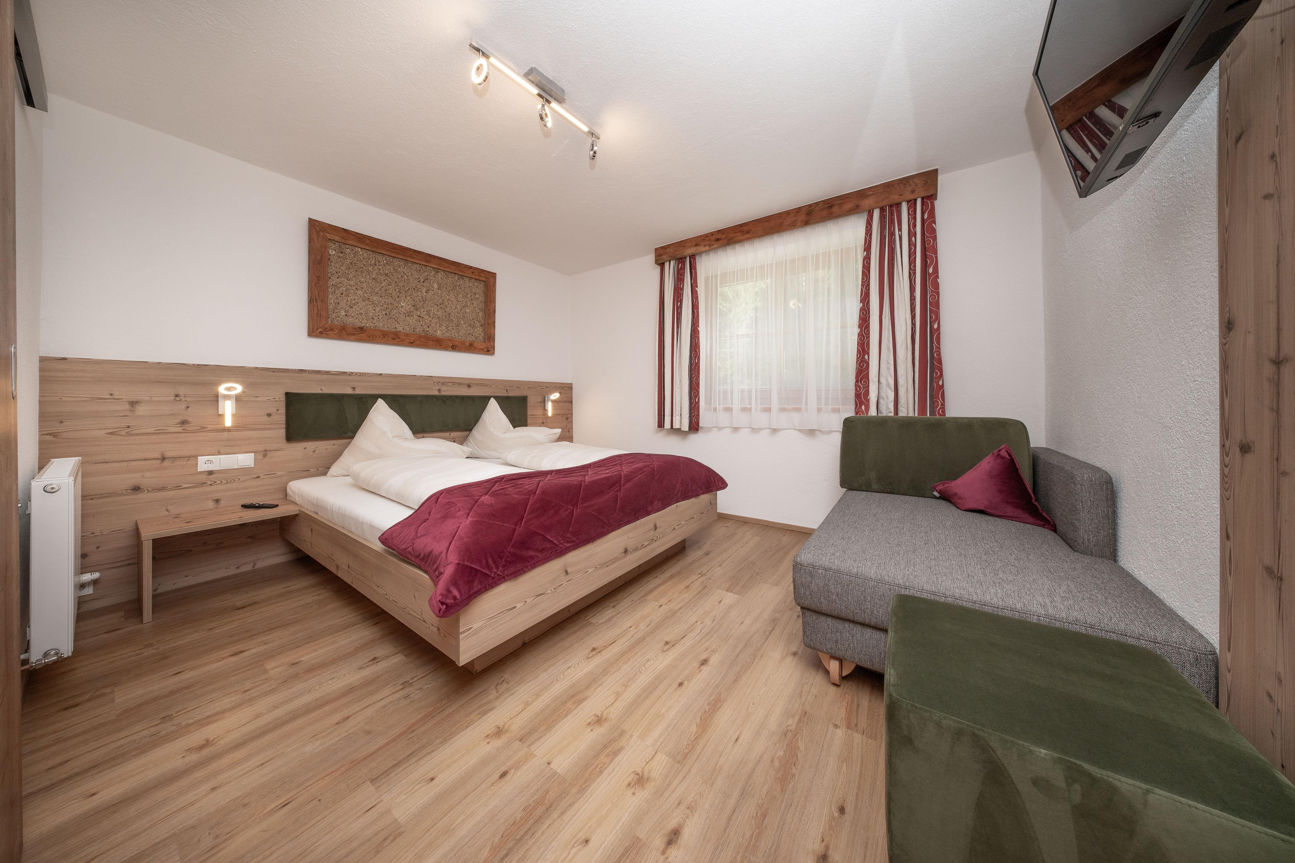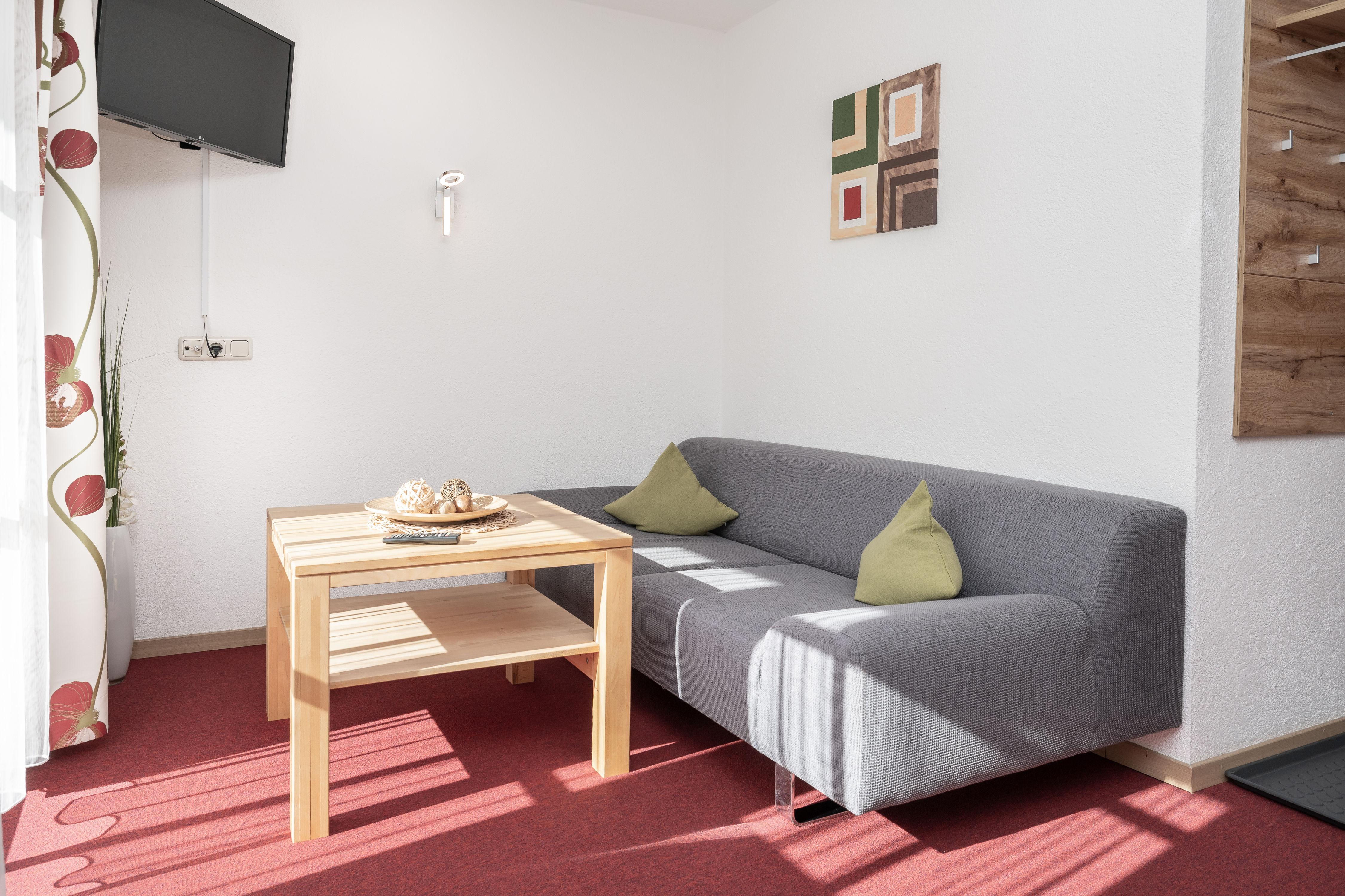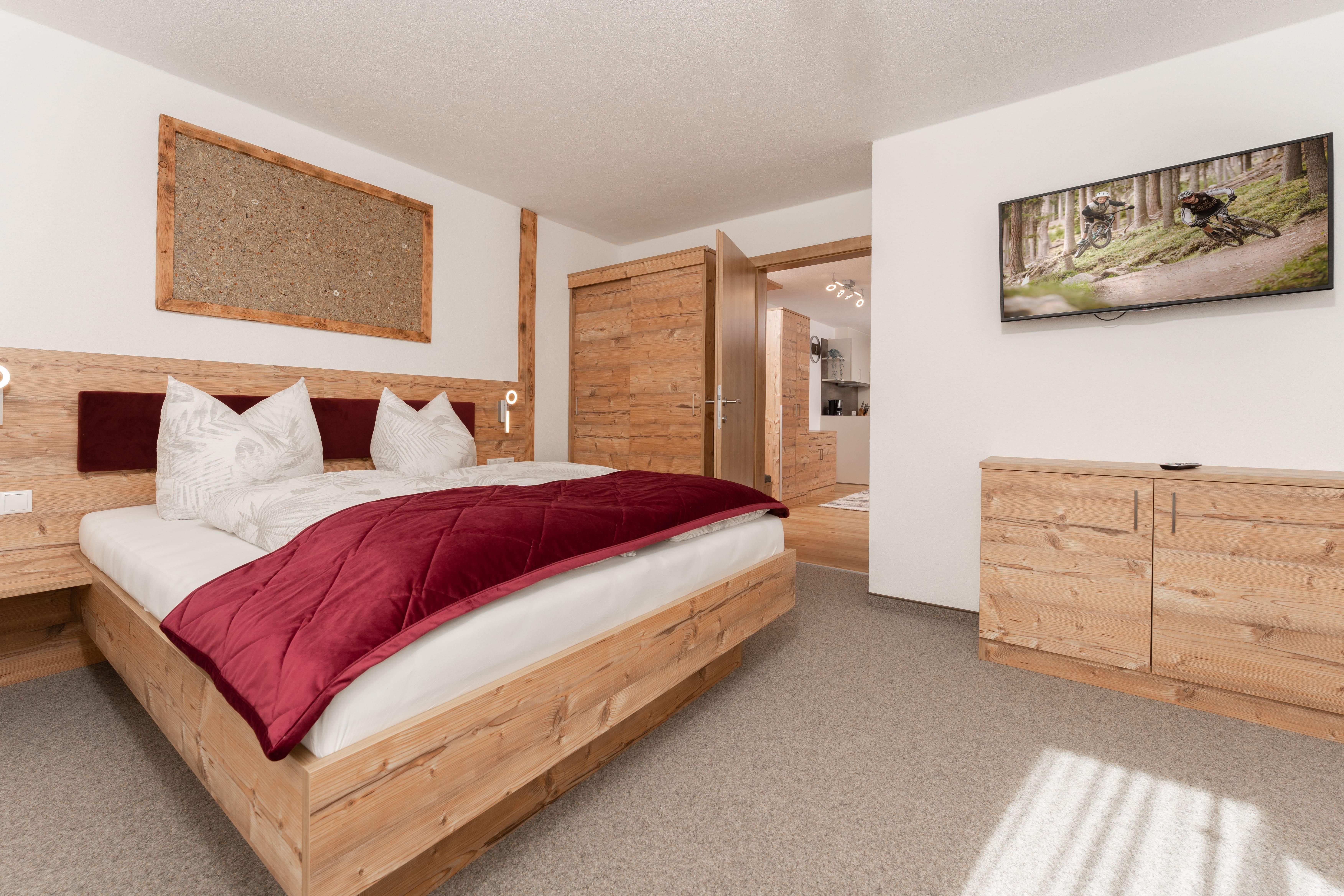 Ihr gemütliches Appartement Enzian mit ca. 60 m² verfügt über: 2 Schlafzimmer mit Doppelbetten (1 x mit zusätzlichem Schlafsofa für eine weitere Person), 2 Badezimmer mit Dusche/WC, 1 Wohnküche mit Essecke und Küchenblock (mit Ceranfeld, Backofen, Geschirrspüler, Kaffeemaschine), SAT-TV, Safe und Südbalkon.