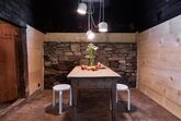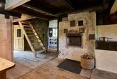 Sonstige Wohnzimmerausstattung: Das Sofa bzw. die Schlafcouch ist vom Esszimmer mit einem Vorhang abtrennbar. Der Boden im Essbereich ist seit Jahrhunderten ausgetreten und deshalb sehr uneben.