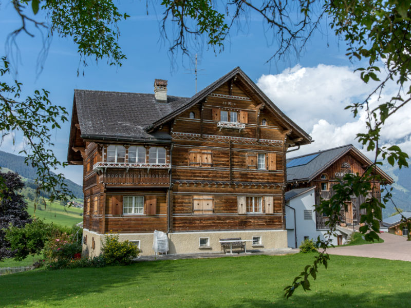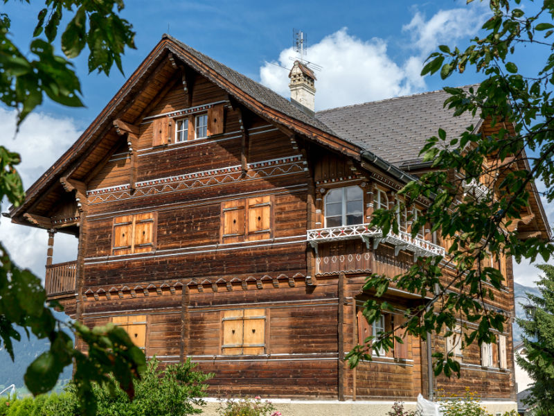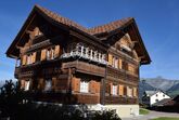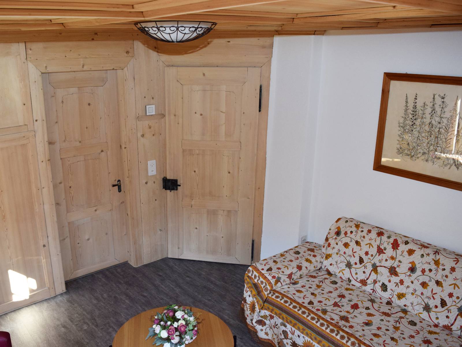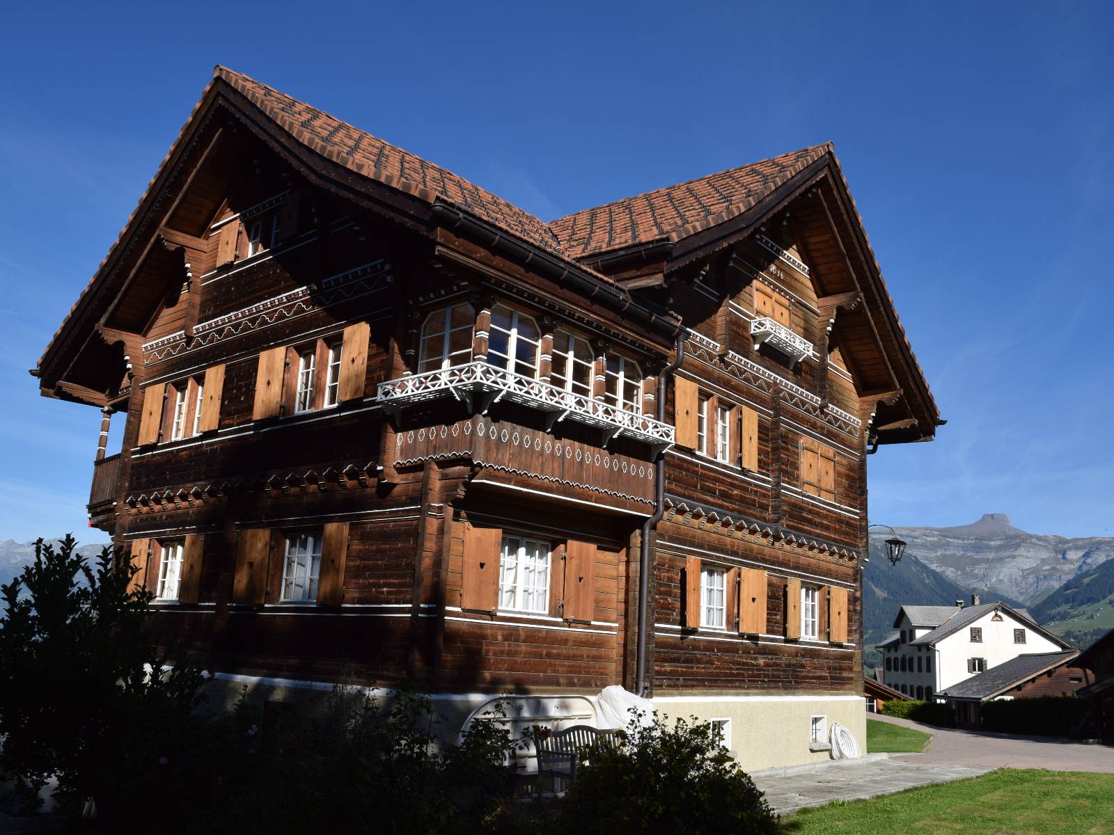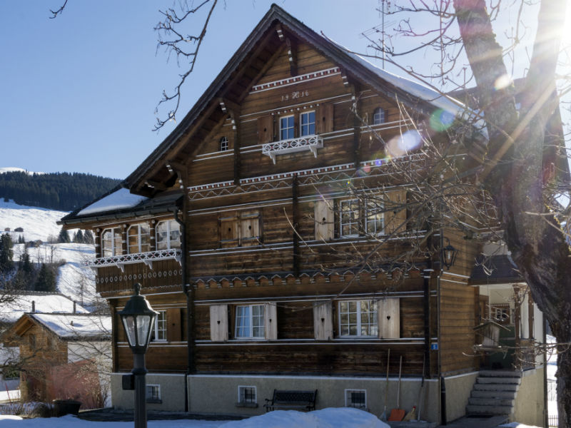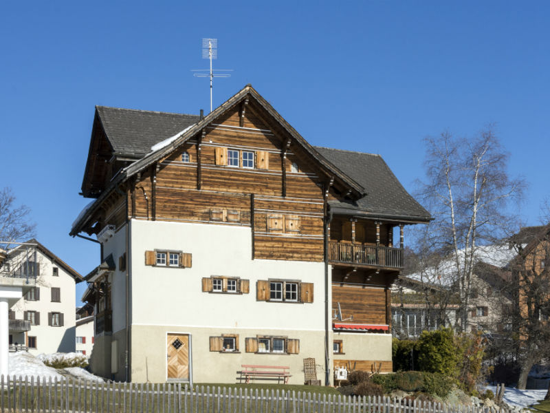 Das im Schweizer Kulturführer erwähnte Haus wurde 1916 vom Architekten Coray erbaut, zwischen 1975 und 1980 renoviert und mit schallisolierten Böden ausgestattet. 2022 Totalrevision. Post, Bus-Haltestelle, Restaurants, Lebensmittelgeschäft, Bankomat und Talstation der Sesselbahn Meierhof - Kartitscha sind in wenigen Minuten zu Fuss erreichbar.