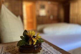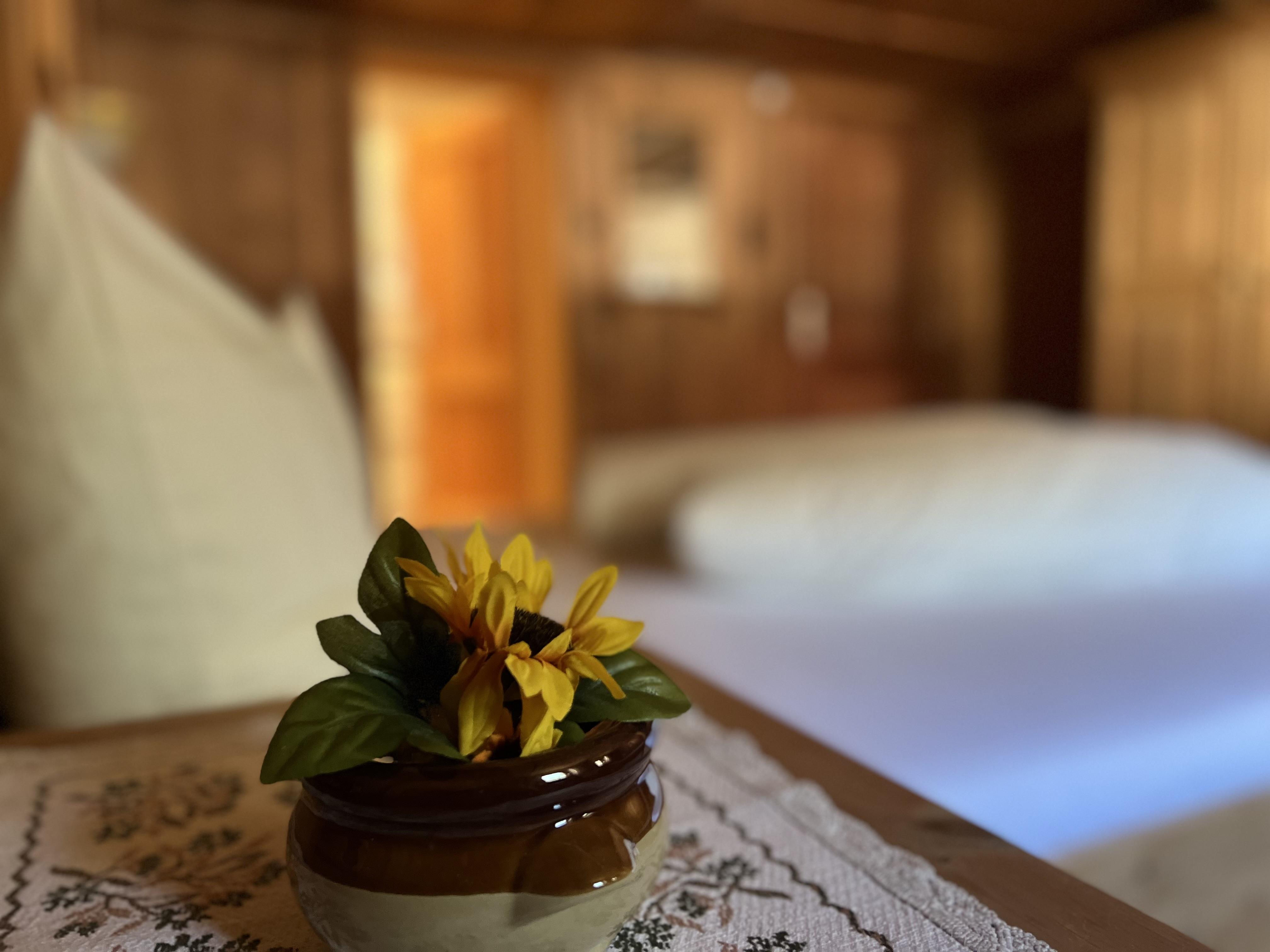 Unser Bauernhof ist mit 4 Blumen ausgezeichnet. Bei uns heißt es viel erleben und genießen. Wir verwöhnen Sie beim biologischen Bauernfrühstück mit hofeigenen Produkten. Der Frühstücksraum - traditionell mit Holz und Bauern-Kachelofen ausgestattet - kann jederzeit von Ihnen genutzt werden. Genießen Sie die familiäre Atmosphäre in unserem Nichtraucherhaus und dem großen Gemeinschaftsgarten, die Kinder können sich dort nach Herzenslust austoben. Restaurants, die Bushaltestelle, der Loipeneinstieg, der Rad- und Wanderweg sowie ein Geschäft sind fußläufig erreichbar.