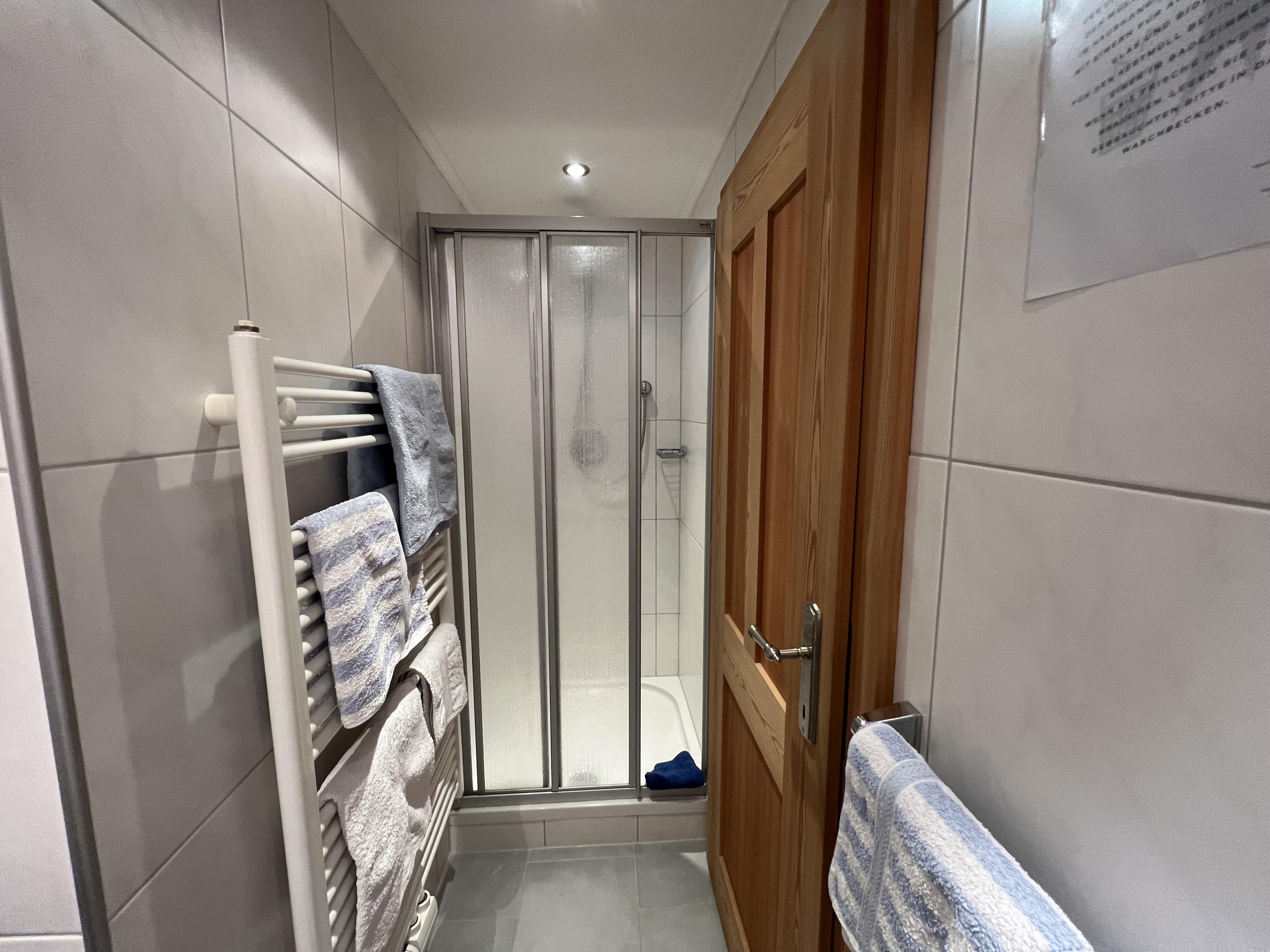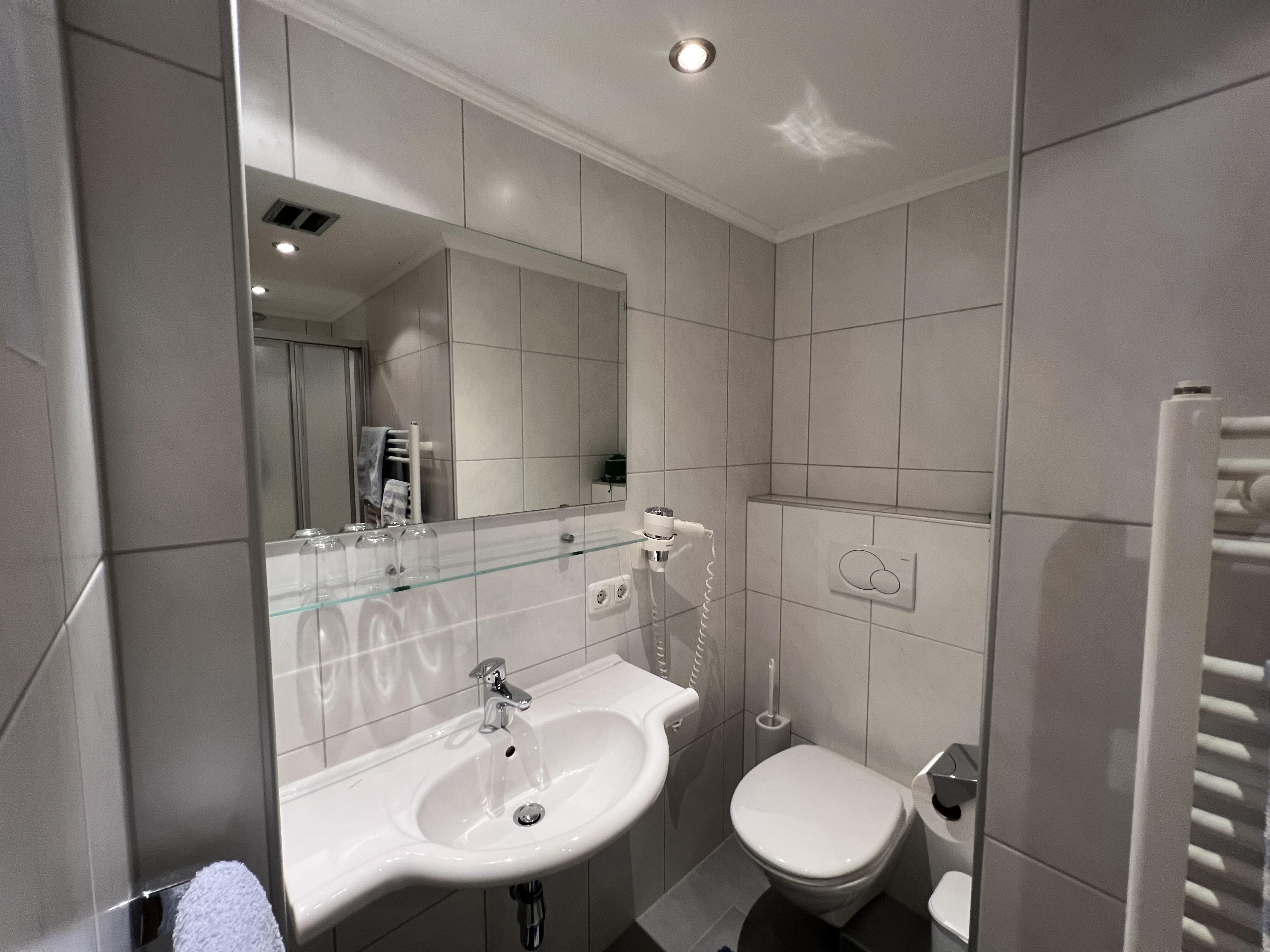 Doppel- bzw. Dreibettzimmer mit Dusche/WC und Sat-TV. Größe: ca. 23 m²