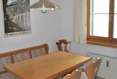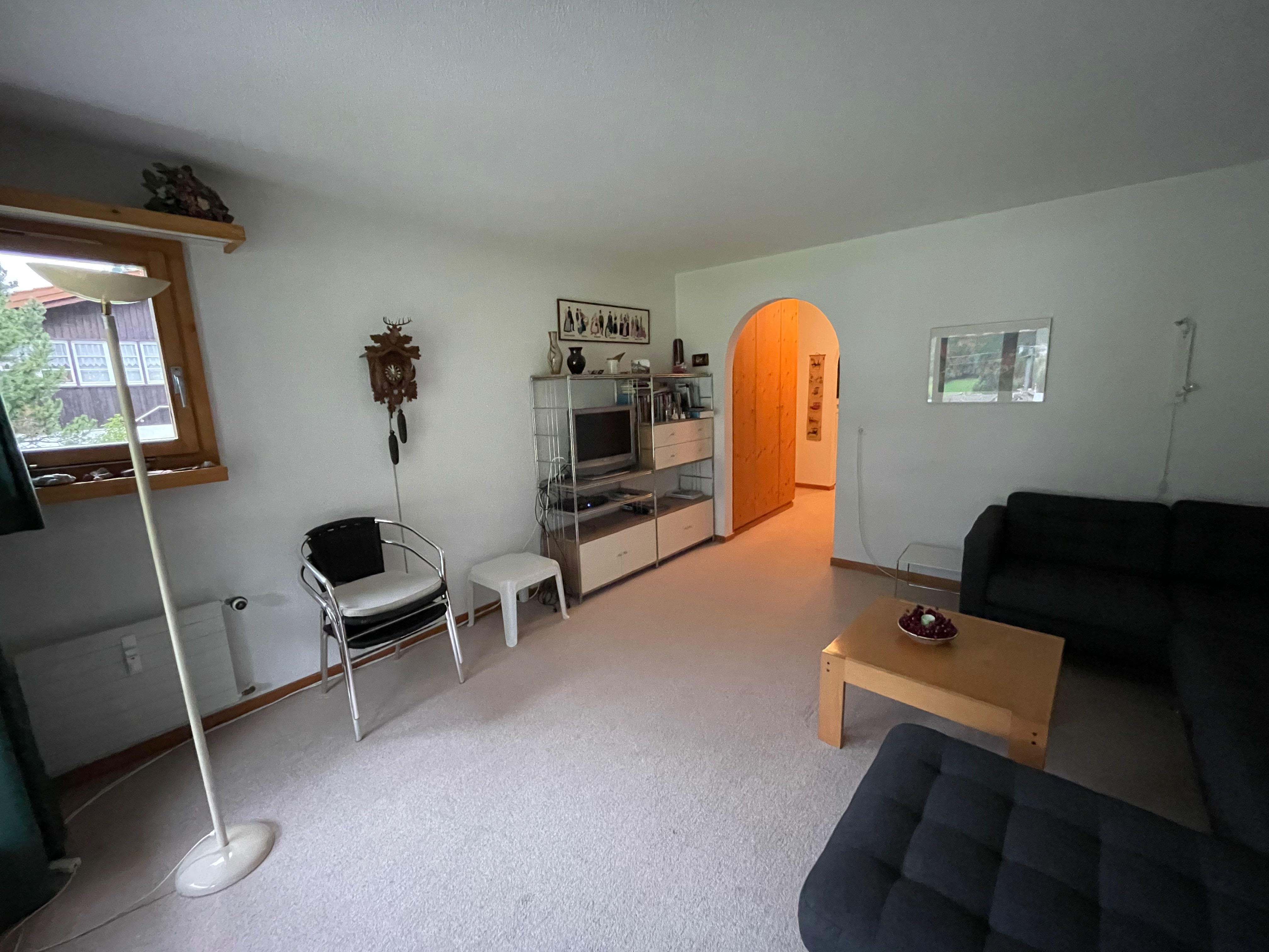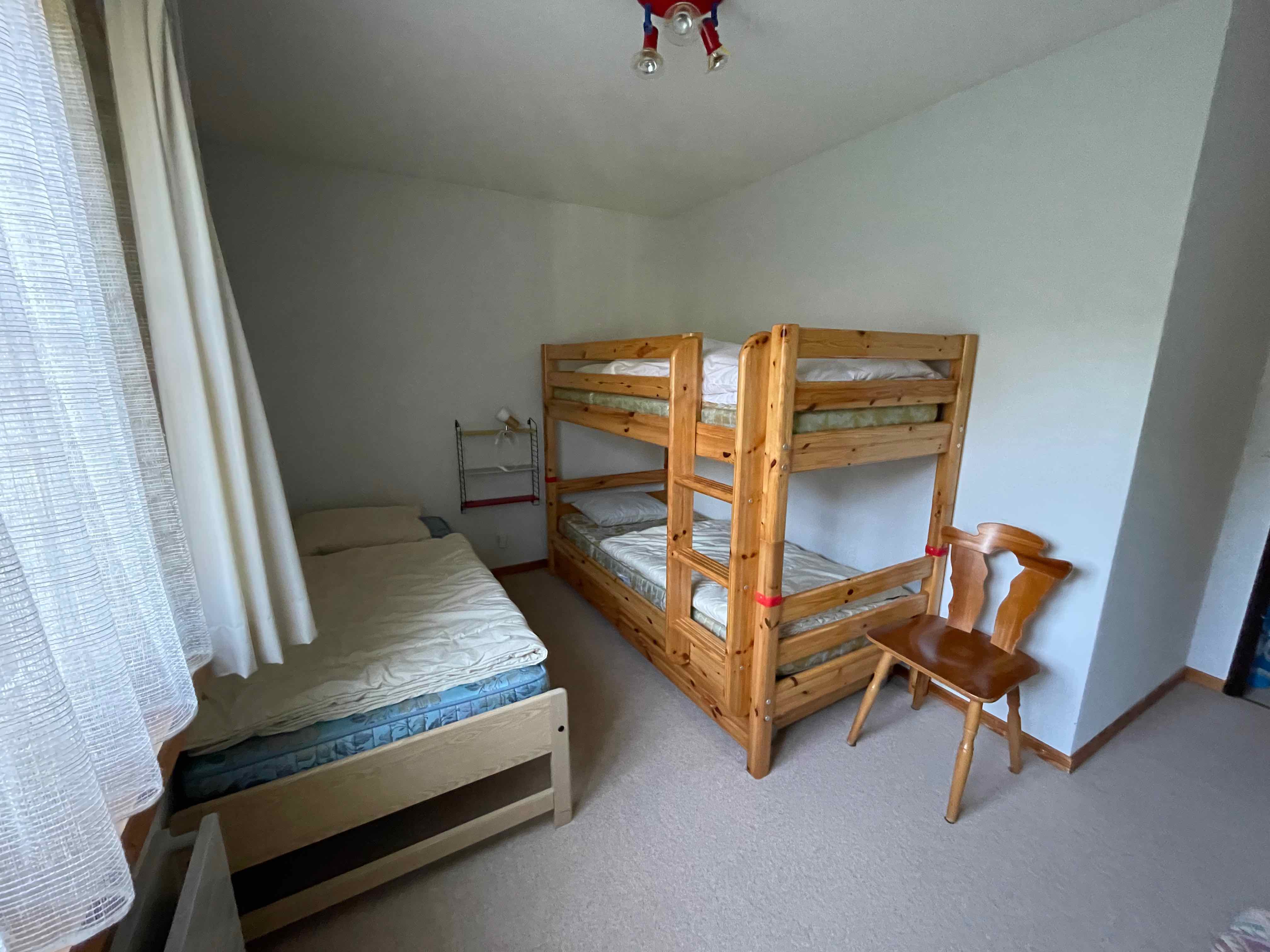 Schöne 3 1/2 Zimmerwohnung ca. 71 m2 mit 5 Betten + Sonne Terasse 12m2 auf Süd Westen. 1 Schlafzimmer mit Doppelbett, ein Schlafzimmer mit einem Kajütenbett und 1 extra Bett. Separate Wohn-Essküche mit Backofen, Kühlschrank, Geschirrspülmaschine, Kaffeemaschine (Nespresso) und Wasserkocher. Dusche ohne WC in einem Raum. Separates WC. Terrasse, Garten und Garage für ein PKW. TV, Apple TV, Internet, WiFi, Radio. Haustiere nicht erlaubt. Nichtraucherwohnung. Skiraum.