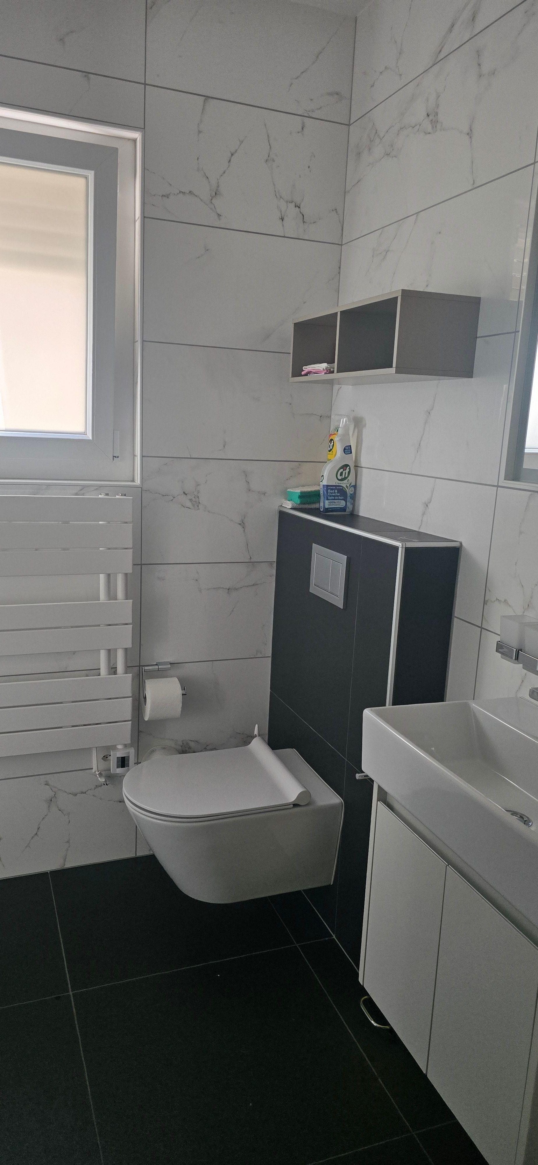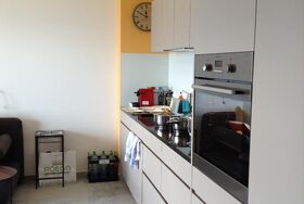 Neue 21/2-Zimmerwohnung 45 m2 in 3-stöckigem Familienhaus, 1. Stock mit Lift direkt ab Garage. Grosses Wohn/Esszimmer mit integrierter grosser, vollständig eingerichteter, neuer Küche. Geschirrspüler, Backofen, Nespresso-Kaffeemaschine. Im Wohnbereich grosser Esstisch und Cheminée-Ofen.