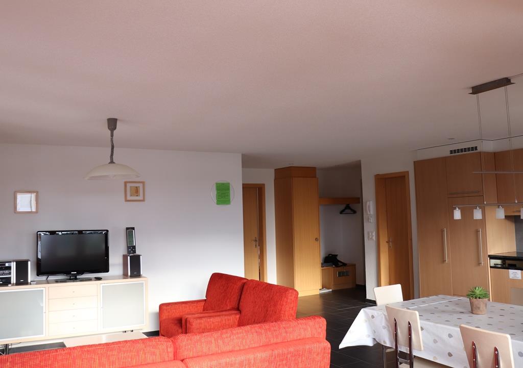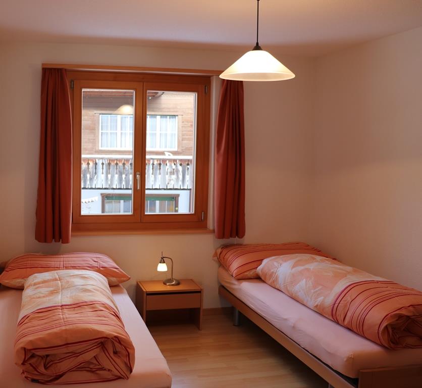 Neue, moderne 3.5 Zimmerwohnung im 1. Stock eines Mehrfamilien-Chalets im Ausserschwand für bis zu 6 Personen (zwei Schlafzimmer mit je 2 Betten und im Wohnraum ein Bettsofa für 2Personen). Ein Babybett kann für CHF 50 gemietet werden. Sonniger, grosser Balkon mit schöner Aussicht. Grosses Wohnzimmer mit Kabel-TV/Radio und Internet W Lan, Einbauküche, komplett eingerichtet inkl. Geschirrspüler., Nespresso Kaffeemaschine, 1 Einstellhallen (Garagen-Parkplatz) ist im Preis inbegriffen. Ein 2. Parkplatz kann dazu gemietet werden. Nichtraucherwohnung. Haustiere sind nicht erlaubt. Die Wohnung liegt an ruhiger, sonniger Lage, ca. 3 Fahrminuten vom Zentrum entfernt, 2 Gehminuten zu Busstation mit Verbindung zu allen Seilbahnstationen.