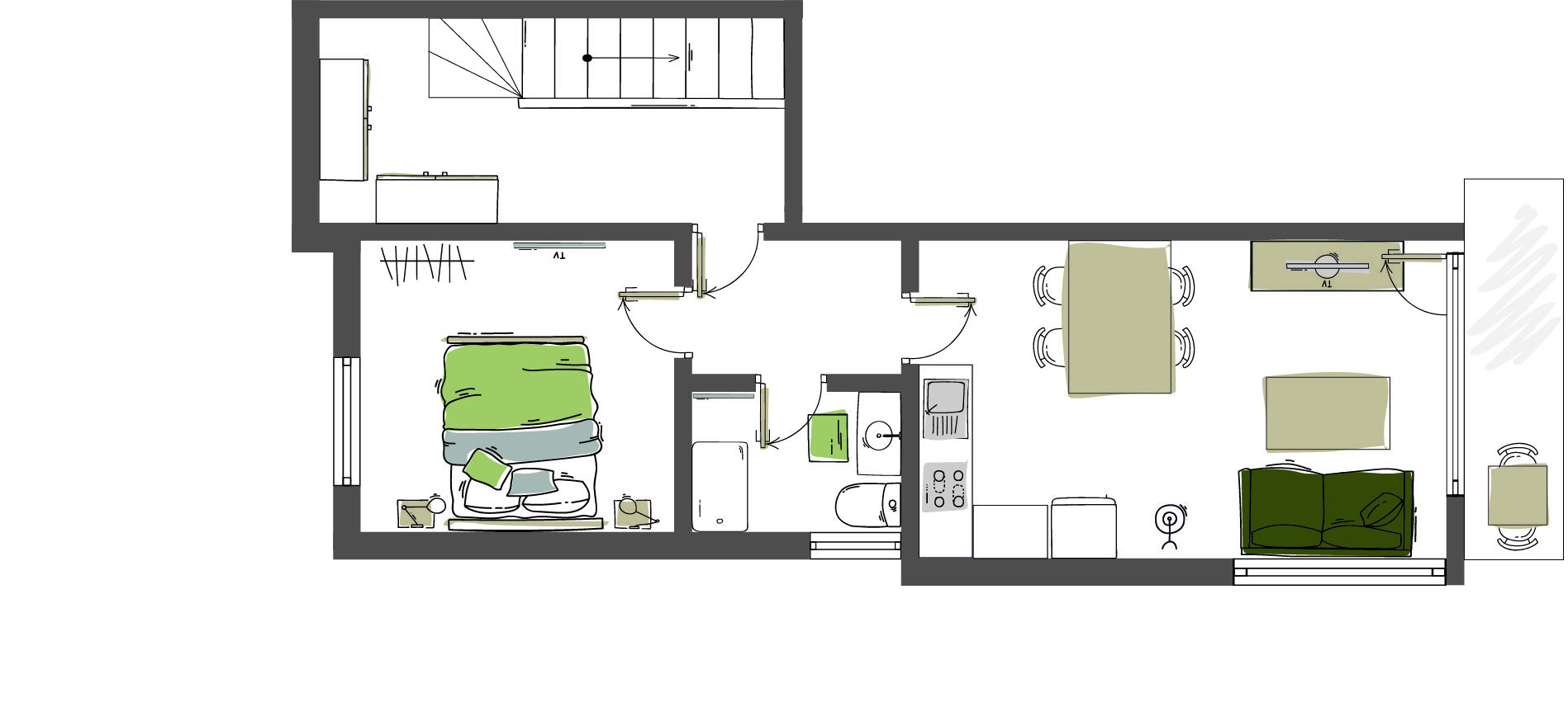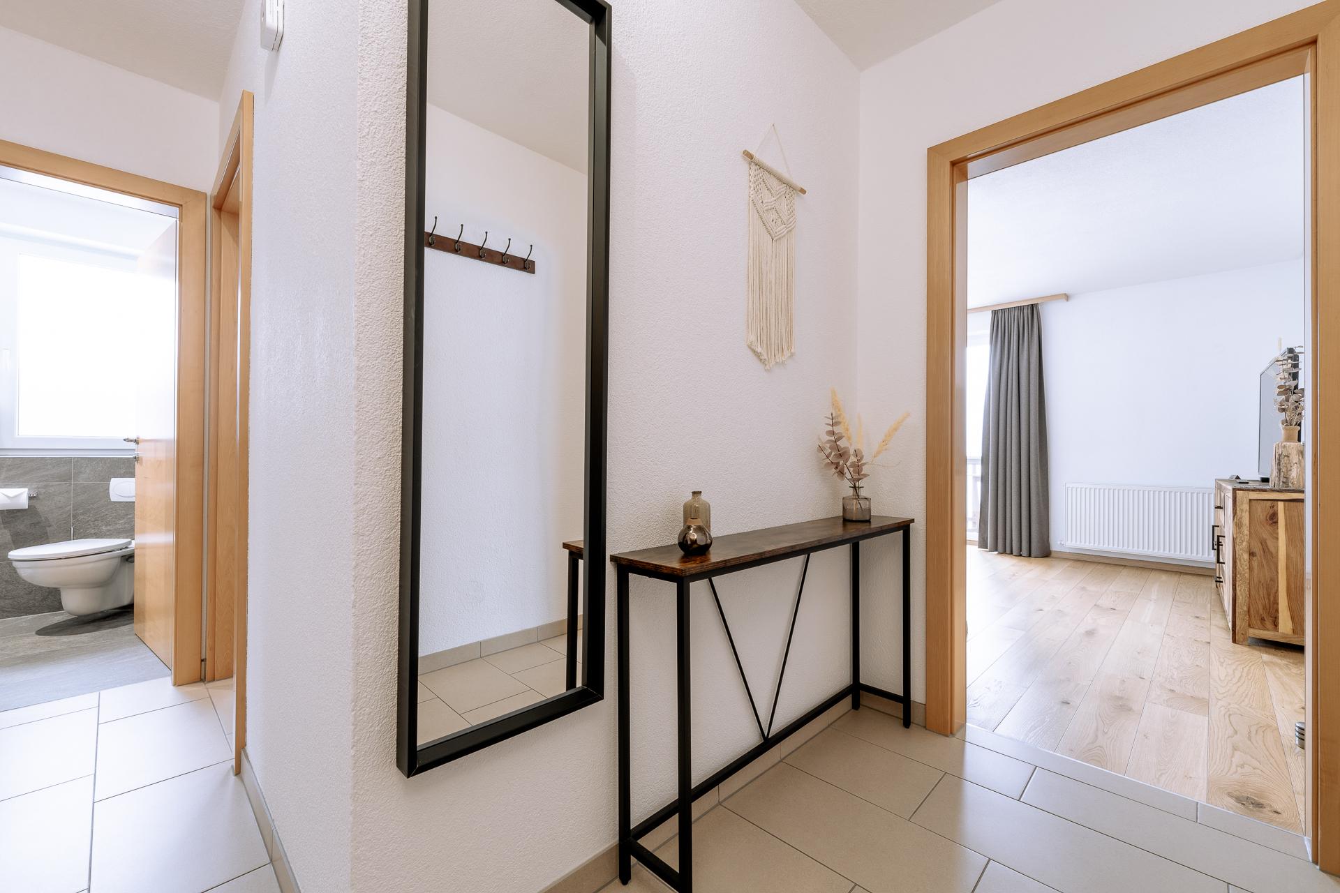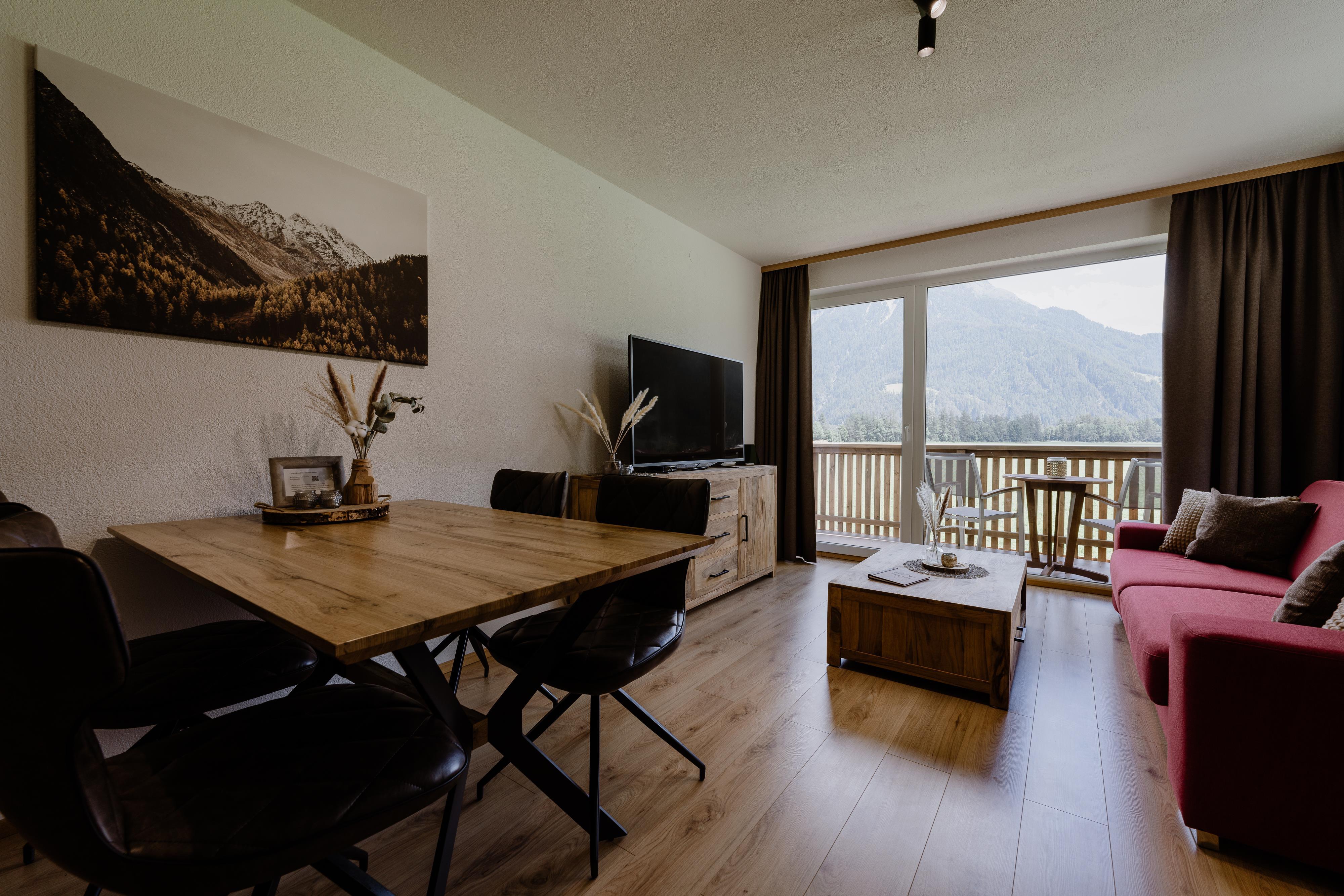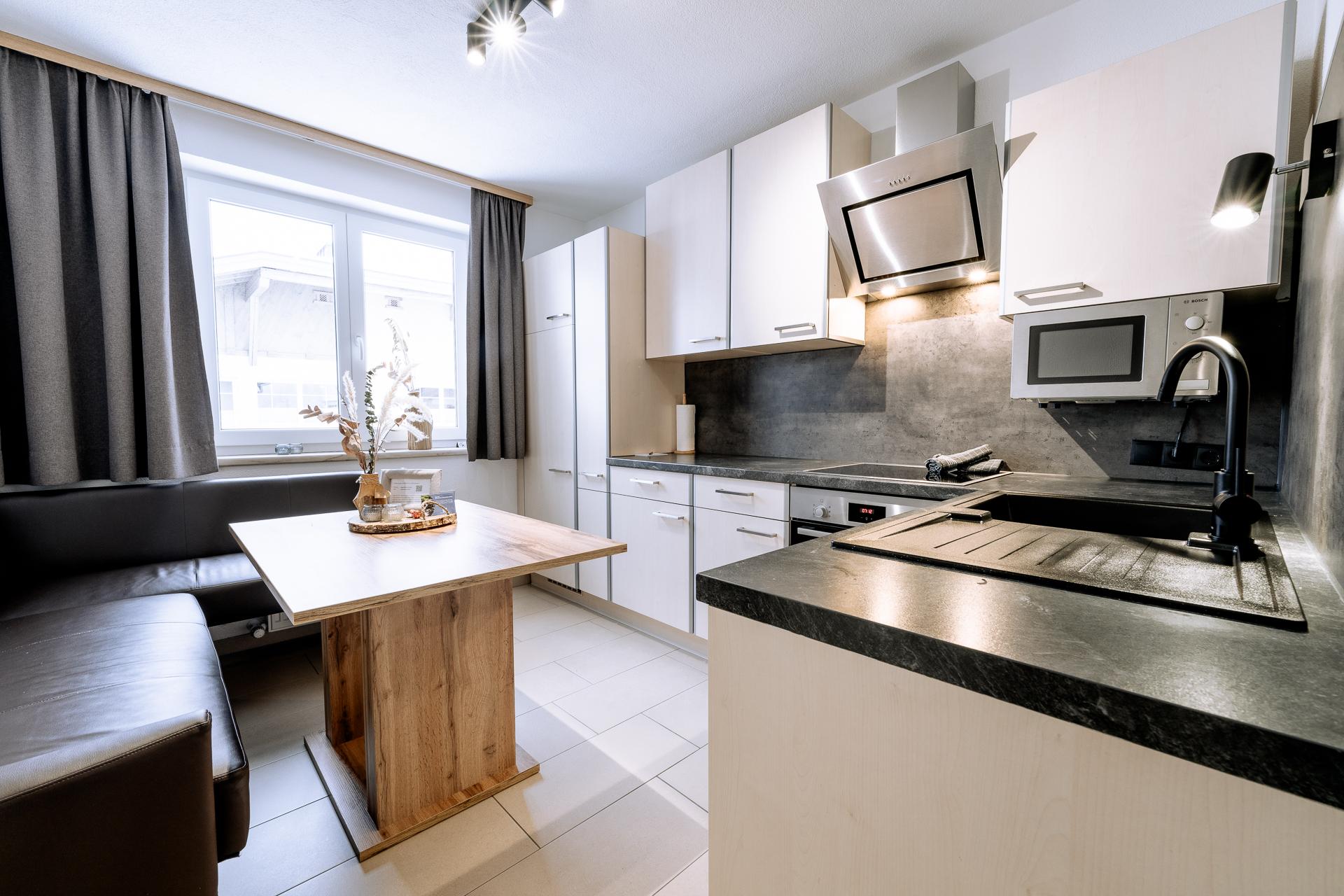 Peak 1 mit ca. 42 m²: 1 Doppelzimmer (Boxspringbetten) mit Flat-TV; 1 komplett ausgestattete Wohnküche mit einer gemütlichen Sitzecke, Doppel-Schlafsofa (180 cm x 200 cm), Flat-TV, Cerankochfeld, Backofen, Kühlschrank mit Gefrierfach, Geschirrspüler, Wasserkocher, Kaffeemaschine, uvm.; 1 Badezimmer mit Tempeldusche/WC und Haarfön; Südbalkon mit herrlichem Ausblick auf den Gamskogel