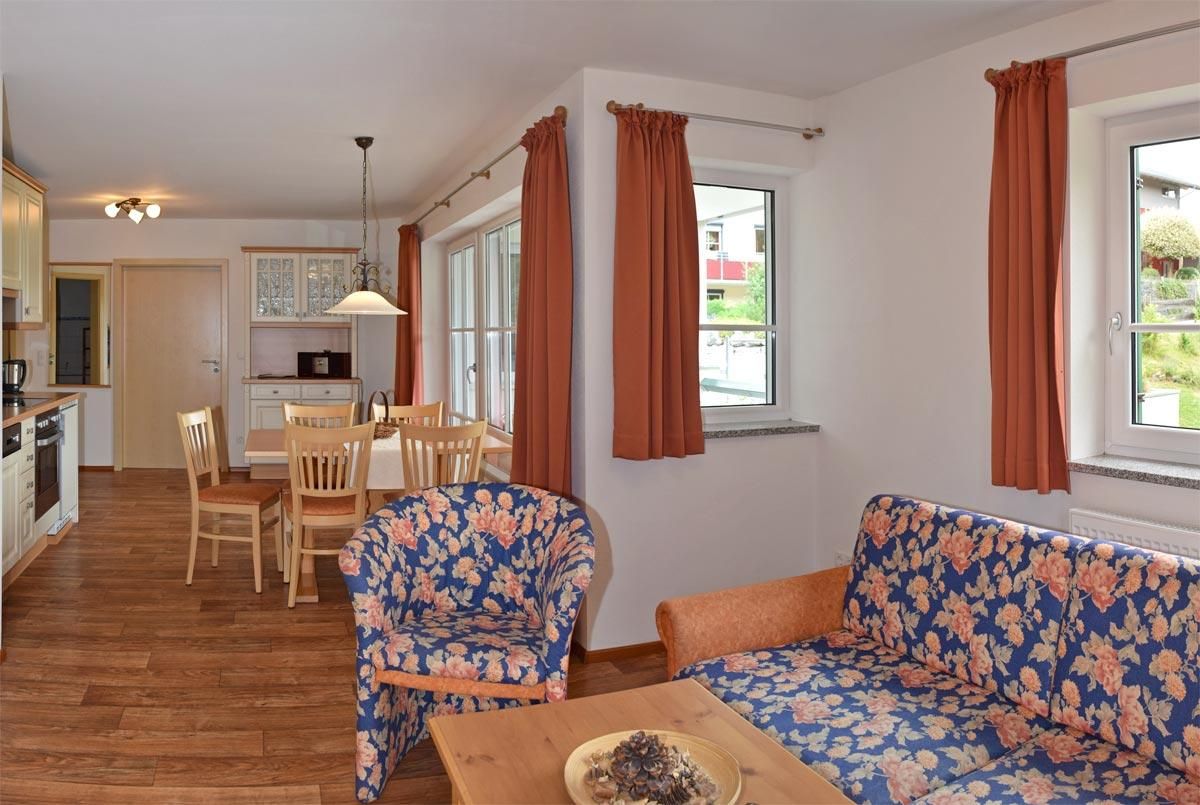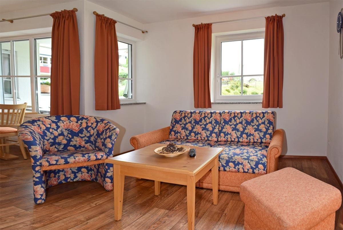 Unser neu erbautes Ferienhaus steht am Ortsrand von Ettensberg in ruhiger und schöner Lage. Genießen sie den Ausblick auf die nahe Bergwelt. Es stehen 7 Wohnungen zur Verfügung, die für 2- max.6 Personen Platz bieten. Alle Ferienwohnung sind in einem moderneren ländlichen Stil eingerichtet. Die Küchen sind mit einer Spülmaschine und weiterm Zubehör komplett ausgestattet. Jede der 7 Wohnungen verfügt über einen seperaten Balkon oder Terrasse. Internetanschluß ist ebenfallls in jeder Wohnung vohanden. 3 Ferienwohnungen sind behindertengerecht ausgestattet, und bieten einem Rollstuhlfahrer die Möglichkeit sich bequem bewegen zu können. Im Soutarain befindet sich ein Frühstücksraum in dem auf Wunsch ein Frühstück eingenommen werden kann. Daneben lädt ein Wellnesbereich mit Sauna, Dusche und Ruheraum mit Gartenzugang zur Erholung ein. Auch diese Räume sind barrierefrei und können leicht erreicht werden. Ein naturnaher Bach und Waldrand begrenzen die Gartenanlage mit Liegewiese, Grillstelle und Kinderspielplatz. Da ein Reitstall zu diesem Anwesen gehört, kommen reitbegeisterte Kinder und Erwachsene auf ihre Kosten. Wander - und Skigebiete, Seen, sowie das Familien-Vital-Park Bad sind schnell zu erreichen. Parkplätze und Mietgaragen direkt am Haus stehen zur Verfügung. Bushaltestelle und Bahnhof befinden sich in der Nähe.