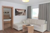 Wohlfühl-Appartement mit Balkon und ca. 93 m²: 2 Doppelzimmer mit je einem Badezimmer mit Dusche/WC, 1 weiteres Doppelzimmer, 1 separates Badezimmer mit Badewanne, 1 separatem WC, vollausgestatteter Wohnküche mit Cerankochfeld, Kaffeemaschine, Mikrowelle, Wasserkocher, Geschirrspüler, Backrohr uvm., Wohnbereich mit Sofa (2 weitere Schlafplätze).