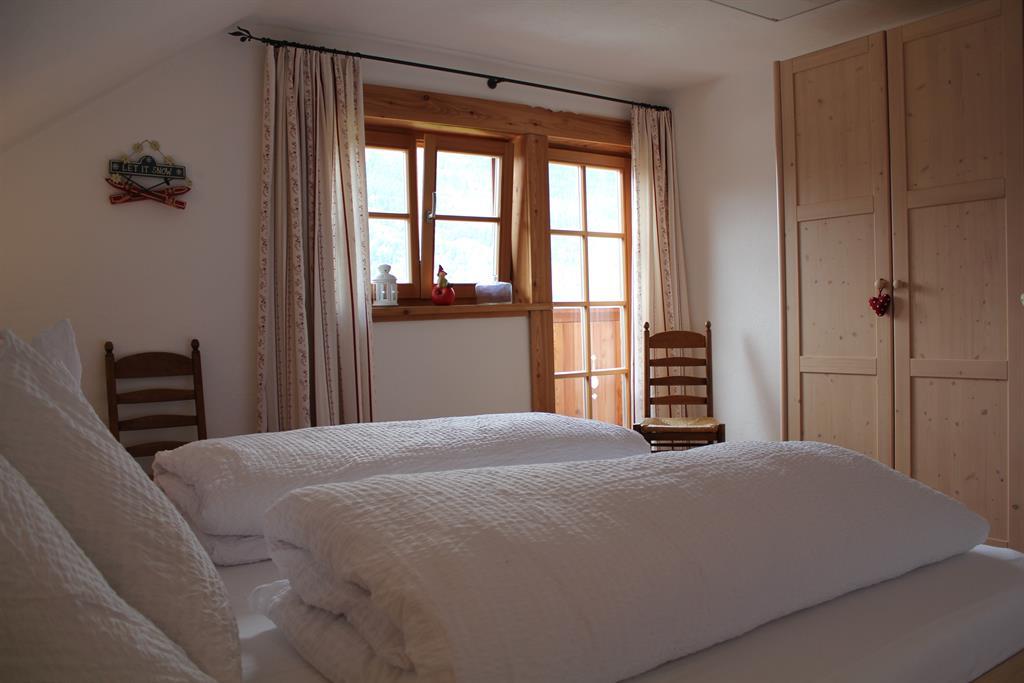 Die Wohnung Heustadl liegt ruhig in einem charmanten Chalet. Die Wohnung ist sehr geräumig (110m²) und verfügt über 1 Schlafzimmer mit Doppelbett, 1 Schlafzimmer mit 2 Einzelbetten und 2 Zusatzbetten auf dem Treppenabsatz, einem Badezimmer mit Dusche, WC separat. Im großen Wohnzimmer befindet sich eine Sitzecke, ein Essbereich und eine gut ausgestattete Küche mit einem elektrischen Kamin, Mikrowelle, Backofen, Toaster, Geschirrspüler