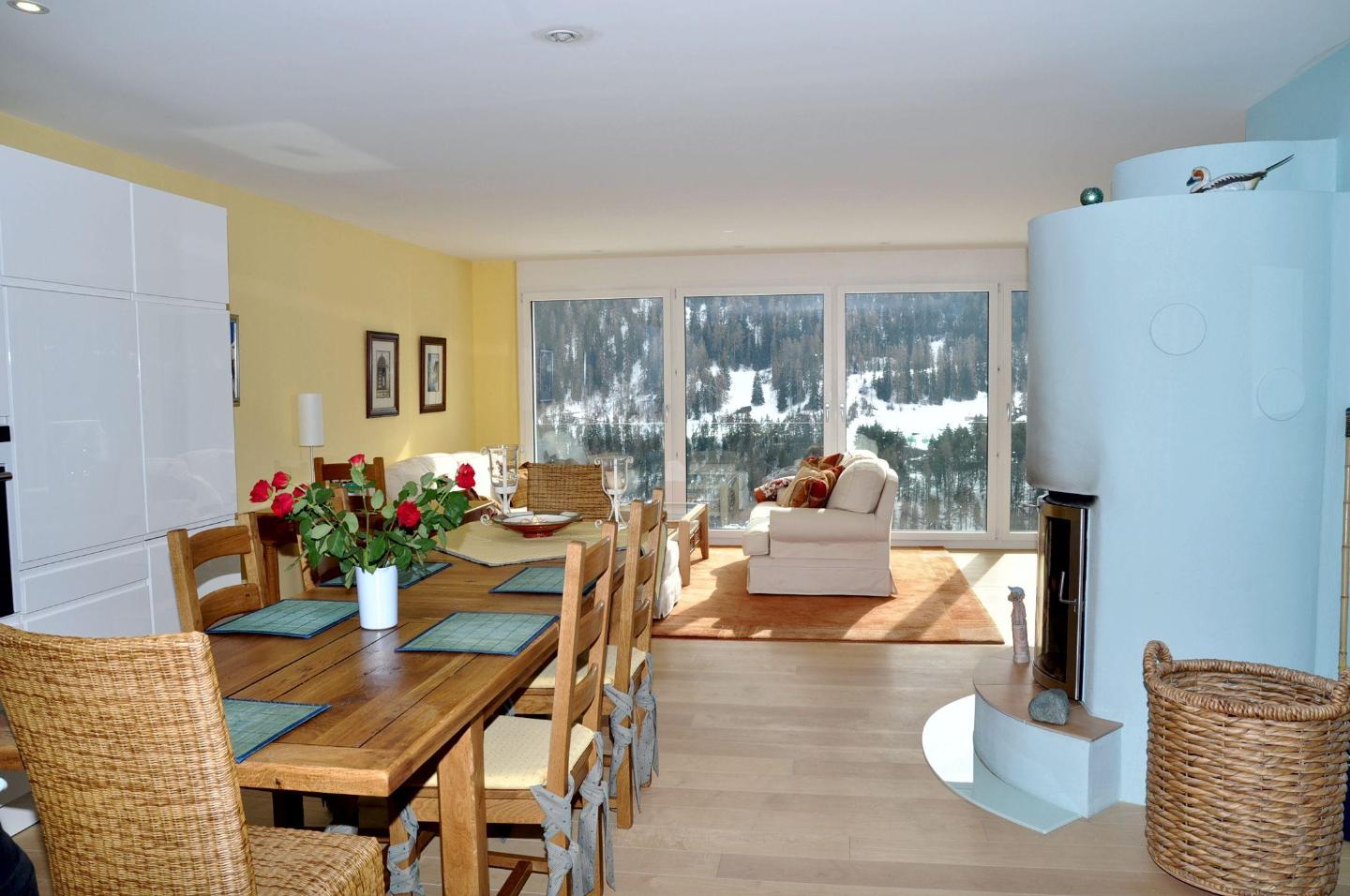 Die Ferienwohnung Chasa Miramunt 9 verfügt über eine helle - mit raumhohen Fenstern versehene - Wohnstube mit offenem Kamin und Elektrostoren. Top ausgestattete Küche mit Mikrowellenofen & Geschirrspülmaschine. 2 Doppelschlafzimmer. Badezimmer mit Badewanne, Dusche, WC, Lavabo + zusätzliches Badezimmer mit Dusche, WC, Lavabo und eigener Waschmaschine/Wäschetrockner. Reservierter Garagenplatz in der Autoeinstellhalle. Personenlift. Gratis-WLAN, Nespresso-Kaffeemaschine, u.v.m.