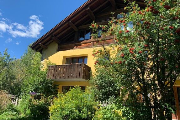 Im Außenbereich steht den Gästen im Sommer ein einladender Aufenthaltsplatz auf einer Wiese unter Bäumen zur Verfügung, ausgestattet mit Sitzgelegenheiten, Grill und Spielgeräten für kleinere Kinder. Ein Parkplatz direkt vor dem Haus erleichtert die Anreise und den Aufenthalt. Der Keller bietet einen Gemeinschaftsraum zur Aufbewahrung von Fahrrädern, Ski- und Wanderutensilien, sowie eine Waschmaschine und einen Trockner zur gemeinsamen Nutzung, ideal für längere Aufenthalte oder aktive Urlaubstage im Freien.