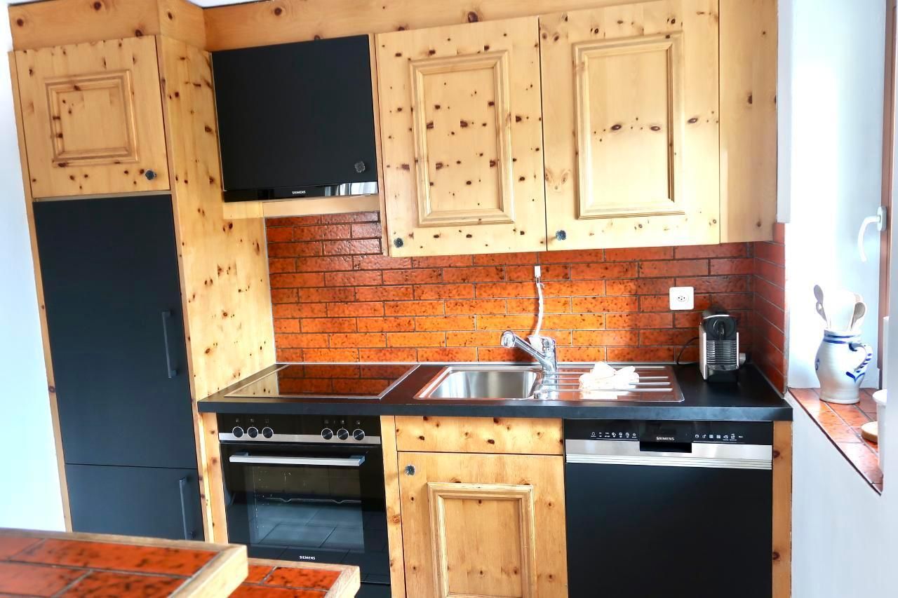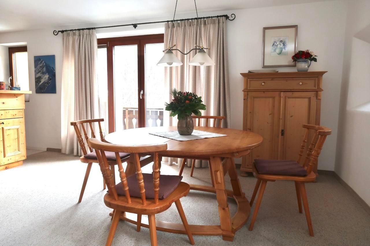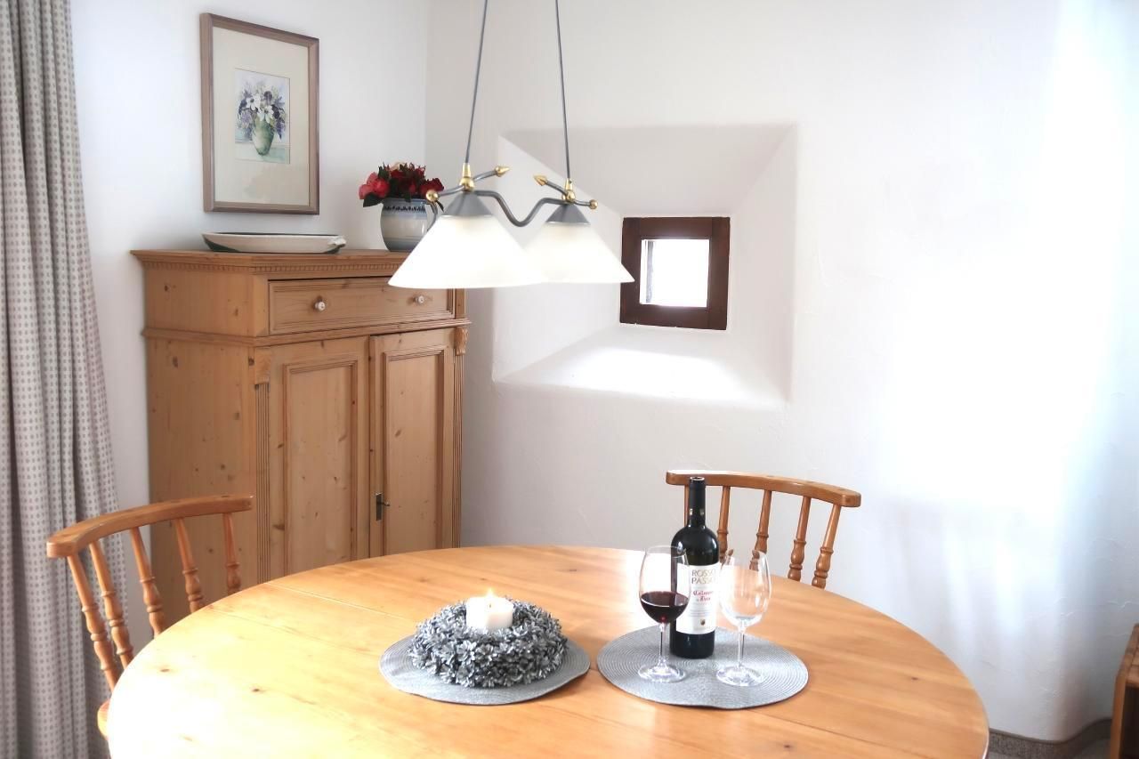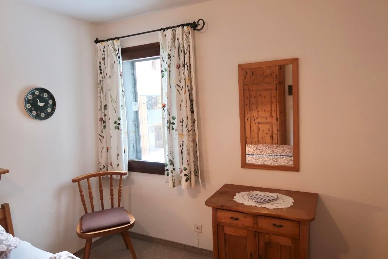 Im Inneren erwartet die Gäste eine sonnendurchflutete Wohnung im 1. Stock, liebevoll eingerichtet mit einheimischen Arvenmöbeln im typischen Engadiner Stil. Die Wohnung verfügt über einen gemütlichen Wohnraum mit südseitigem Balkon, Essplatz für vier Personen und einer bequemen Polstersitzecke zum Entspannen. Eine gut ausgestattete Küche, durch eine Theke vom Wohnraum getrennt, bietet alles, was der Feriengast zum Kochen gerne vorfinden möchte, inklusive Spülmaschine, Gefrierschrank und Kaffeemaschine. Zwei Schlafzimmer, eines mit Doppelbett und eines mit Stockbetten ausgestattet, bieten ausreichend Platz für die ganze Familie, ergänzt durch ein Badezimmer mit Dusche und WC sowie einen einladenden Flur mit großer Garderobe.