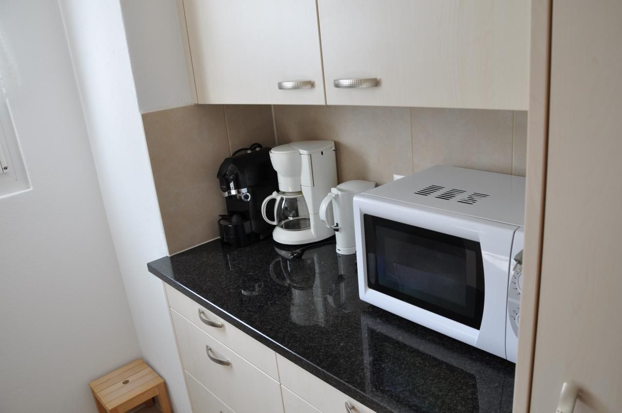 Sonstige Kücheneinrichtung (Küche1): Die Küche wurde im Dezember 2008 vollständig renoviert, Glaskeramikherd, Geschirrspüler, Backofen, grosser Kühlschrank, viel Geschirr, Kochtöpfe und Bratpfannen, viel Stauraum, schöne dunkle Granitabdeckung. Filterkaffeemaschine und Nespressomaschine für Kapseln von COOP und ALDI. Fonduegeschirr