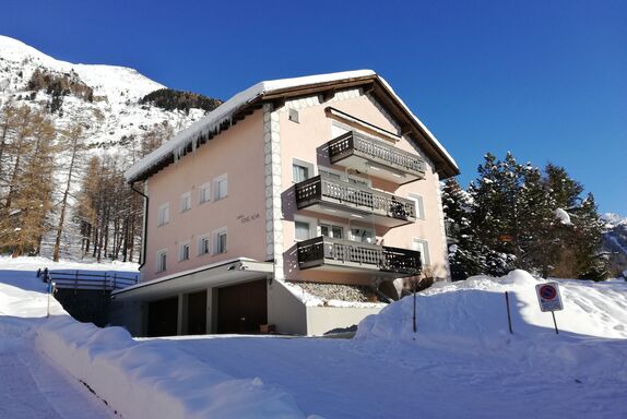 Gemütliche 1-Zimmerwohnung (28 m2), 1. Stock, sonnige ruhige Lage, Balkon mit schöner Aussicht auf die Engadinerbergwelt. 2 komfortable Schrankbetten, Esstisch mit Stühlen, 2 Fauteuils, TV, Radio, Telefon, offene, moderne Küche(2013)mit Mikrowelle, Backofen, Kaffeemaschine, Toaster, Fondue-Set. Neues Badzimmer mit Dusche. Grosser Garten, Skiraum, Waschmaschine und Tumbler im Haus. Bike-freundlich. Parkplatz. Haustiere nicht erlaubt. Nahe bei der Busstation Godin. Optimaler Ausgangspunkt für sportliche Aktivitäten. Nichtraucher-Wohnung. WLAN vorhanden.