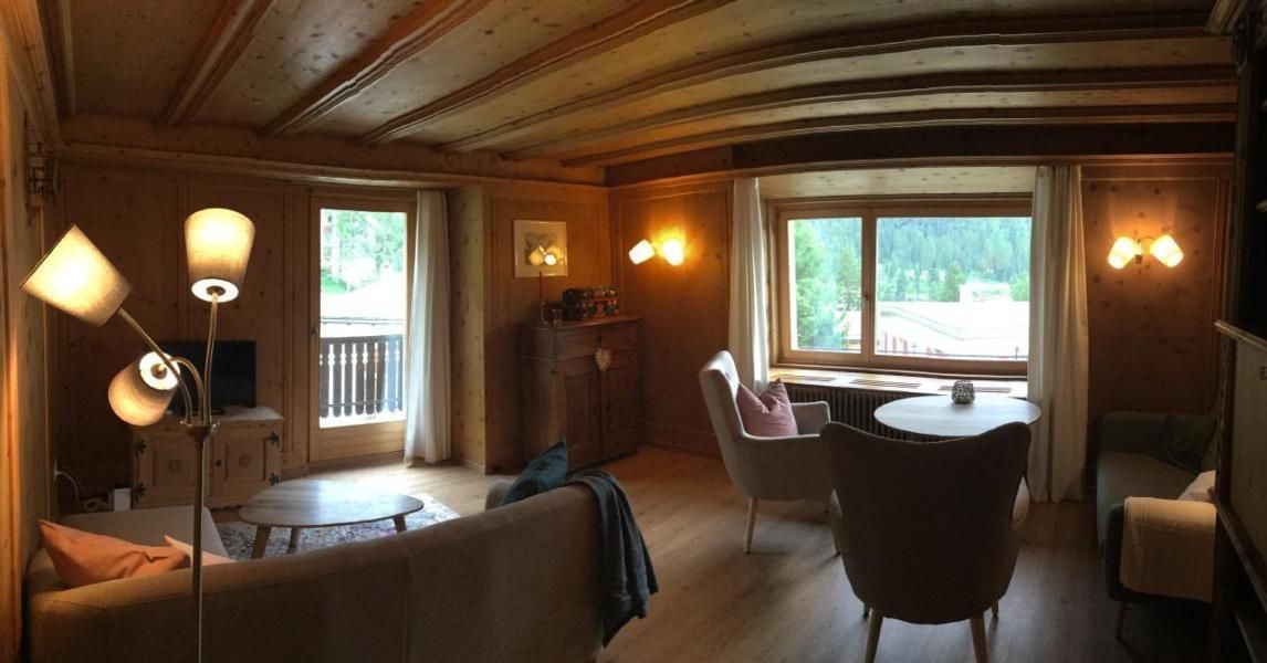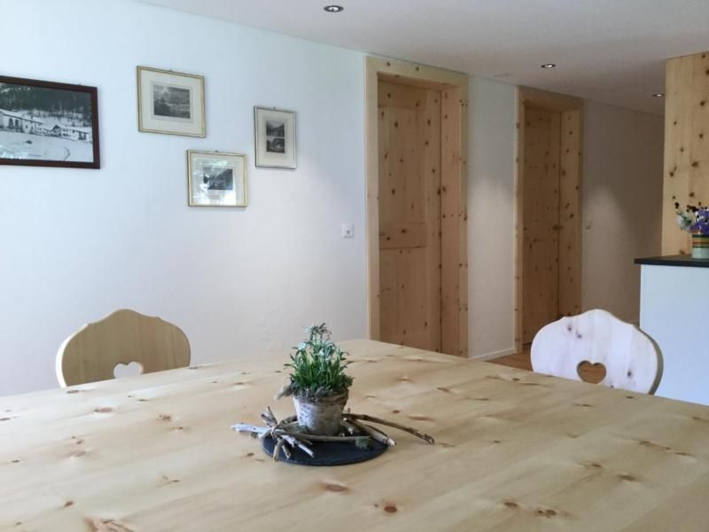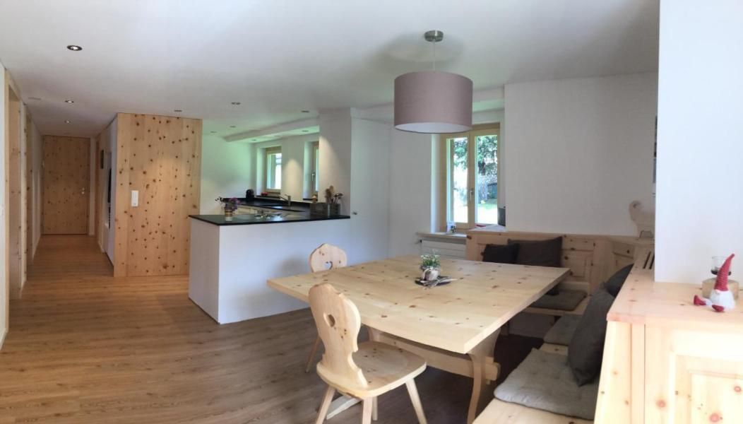Während Ihres Aufenthalts erwartet Sie eine Wohnung, die mit viel Liebe zum Detail gestaltet wurde. Eine helle und geräumige Atmosphäre begrüßt Sie, dank großer Fenster, die einen beeindruckenden Blick auf die Berge freigeben. Entspannen Sie in der gemütlichen Arvenstube mit angenehmem, nicht textilem Bodenbelag. Die offene Wohnküche mit ihrem einladenden Essbereich, bestehend aus einer Eckbank aus Arvenholz und direktem Balkonzugang, bietet sowohl Raum zum Genießen als auch zum Kochen. Ein ruhiges Schlafzimmer mit hellen Fichtentäfern an Decke und Wänden sorgt für erholsame Nächte.