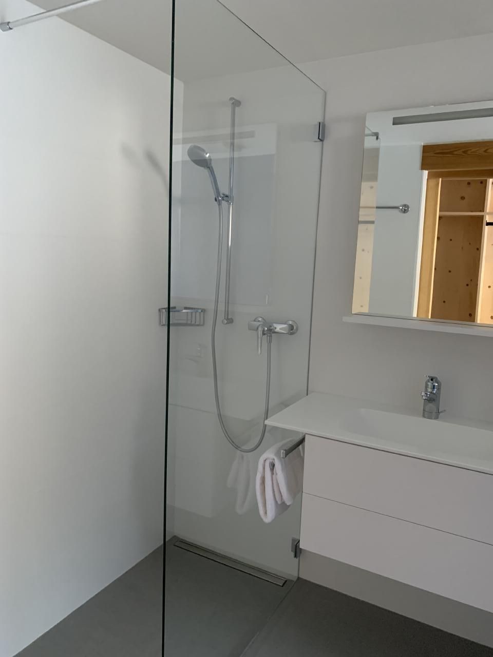 Abwaschmaschine, genügend Geschirr für 6 Personen, grosses Badezimmer mit Dusche. Lift im Haus.