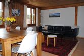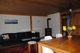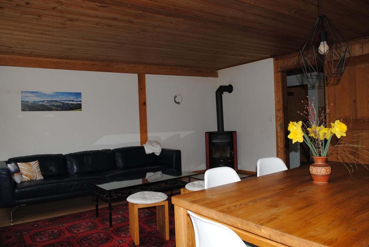 Die Ferienwohnung verfügt über ein grosses Schlafzimmer mit Doppelbett und über ein kleineres Zimmer mit einem Etagen- und einem Einzelbett. Das lichtdurchflutete Wohn- und Esszimmer bietet viel Raum für gemütliche Stunden. Die Küche ist ausgestattet mit Backofen, Kochherd und Geschirrspüler, Nespresso-Kaffeekapselmaschine und Bialettikanne, Wasserkocher und allen nötigen Utensilien zum Kochen. Zur Wohnung gehören ausserdem ein überdachter Parkplatz sowie ein Sitzplatz zum Verweilen an der Sonne.