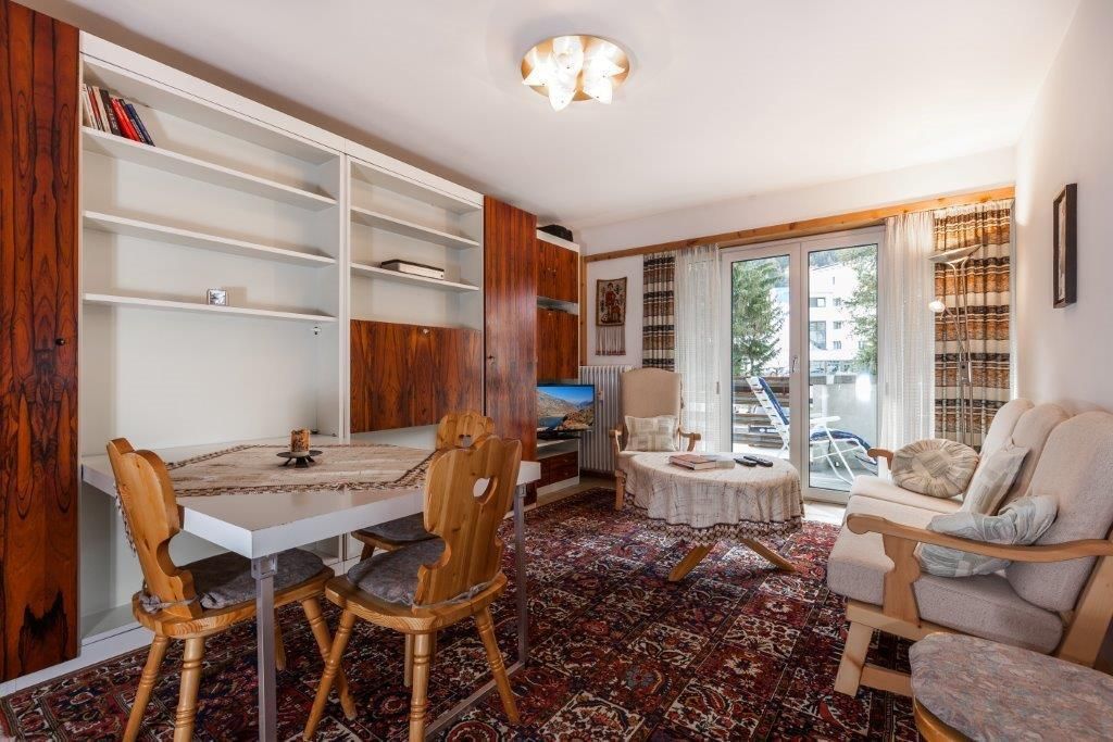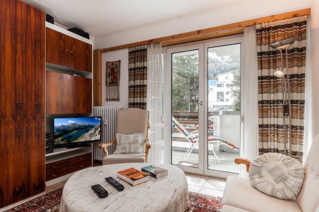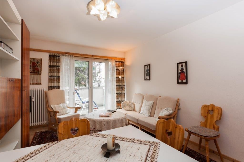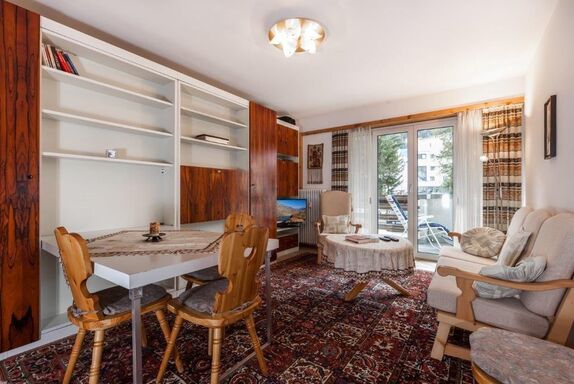 2 1/2 Zi.-Wohnung mit Balkon bis 4 Personen, zentrale, sehr ruhige Lage, Panoramablick (Rosatschmassiv), vorzügliche Verkehrsanbindung, kurze Wege zu Sportstätten und fußläufig erreichbaren Einkaufsmöglichkeiten, eigener PKW-Stellplatz in der Hausgarage, helle Wohnräume durch raumhohe Balkontüren/-Fenster (mit Rolladen), INTERNET(HiSpeed)/TV/Radio/CD-Player, sehr gute Ausstattung für gehobenes Ambiente durch hochwertige Möbel, Arventüren, etc., bei Bedarf: Babyset mit Reisebett und Hochstuhl, separate Küche mit allen heutigen Einrichtungen wie Spülmaschine/Cerankochfeld mit 4 Kochstellen/Backrohr (mit Grill und Microwelle), etc.; Bad mit Badewanne + Comfortduscheinrichtung.