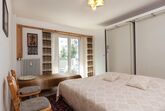 Sonstige Schlafzimmereinrichtung (Schlafzimmer1): Doppelbett, Komfort-Einzelliege, Wandeinbauschrank, Keramikfliesen-Bodenbelag mit Orientteppich, Tisch 80*1,20 (im Schrank eingebaut zur Nutzung bei Bedarf als Eß-/Spiel-/Arbeitstisch), Stühle