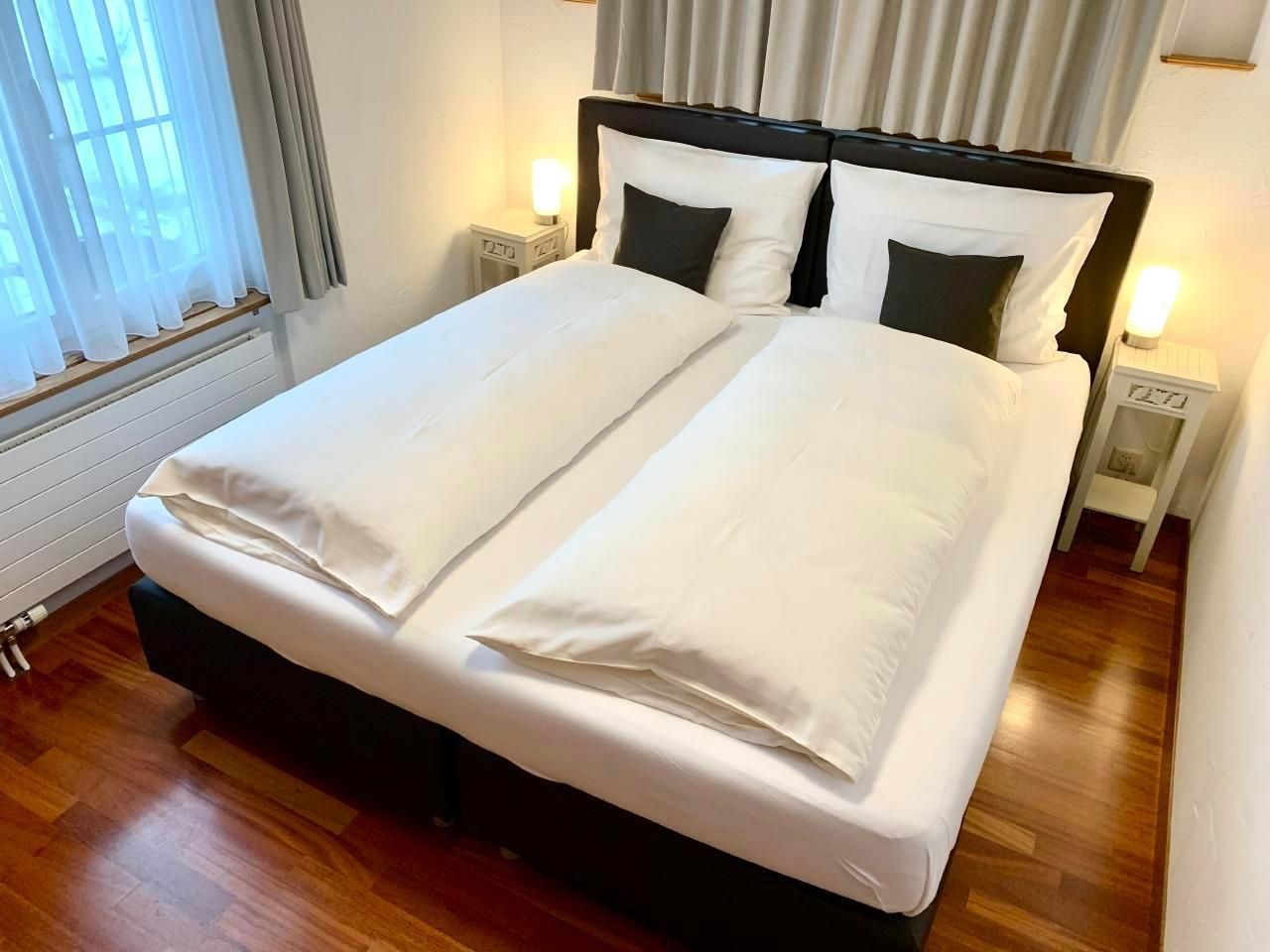 Der Innenbereich der Wohnung zeichnet sich durch eine hochwertige und geschmackvolle Einrichtung aus. Die moderne Küche ist mit Glaskeramikherd, Backofen, Geschirrspüler und einer Nespresso-Kaffeemaschine ausgestattet und bietet zudem Spezialgeschirr für Raclette und Fondue. Im Wohn-/Esszimmer sorgen ein gemütliches Sofa, Swisscom-TV mit über 200 Sendern und ein großer Esstisch neben dem freien Internetzugang für behagliche Stunden. Die zwei Schlafzimmer mit Boxspringbetten garantieren erholsamen Schlaf, während das Badezimmer mit Dusche, Toilette und integriertem Haarfön keine Wünsche offen lässt.