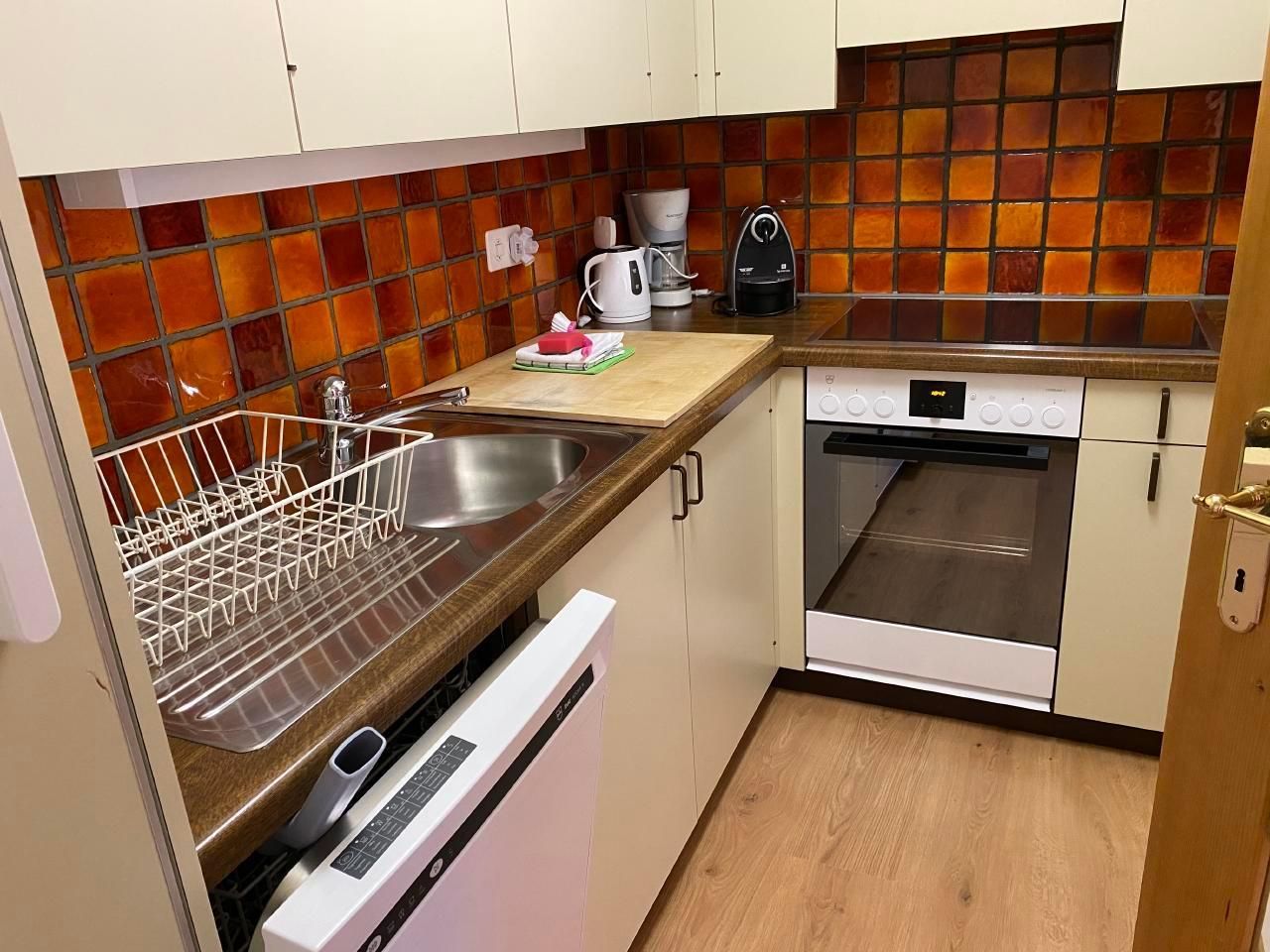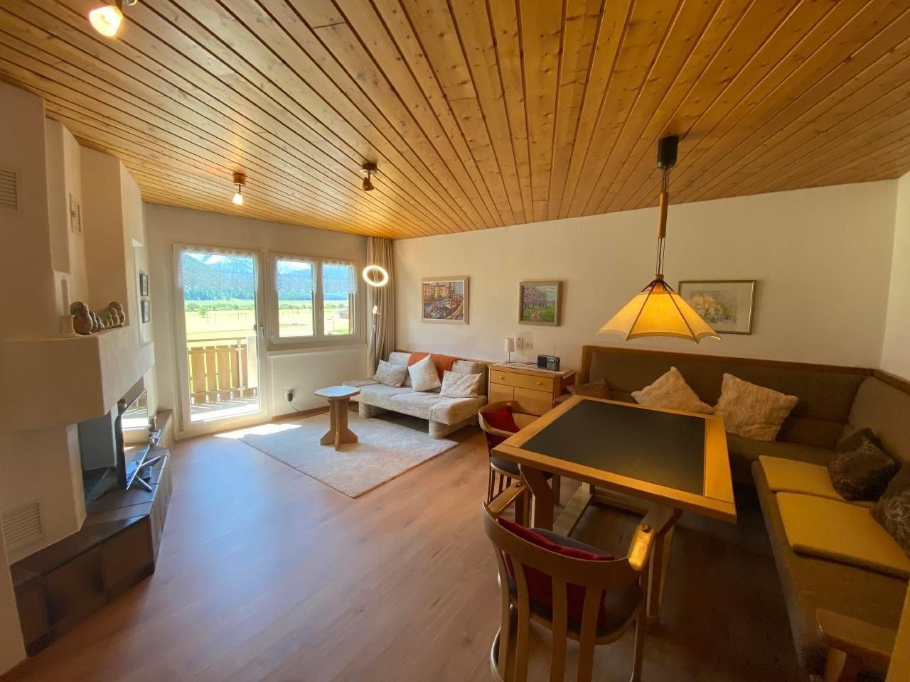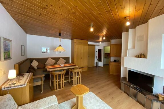 Das Innere der Wohnung bietet Ihnen gemütlichen Komfort und eine ansprechende Ausstattung. Das Wohnzimmer ist mit einer Essecke, einer gemütlichen Couch, Sat-TV, Radio und WLAN-Internetzugang ausgestattet. In der modernen Küche finden Sie ein Glaskeramikkochfeld, einen Geschirrspüler sowie weiteres Kochzubehör, inklusive eines Racletteofens. Das Apartment verfügt über Parkettböden in der gesamten Wohnung und eine praktische DU/WC-Kombination, während das Schlafzimmer mit einem großen Einbauschrank und Nachttischen mit Lampen bestückt ist.