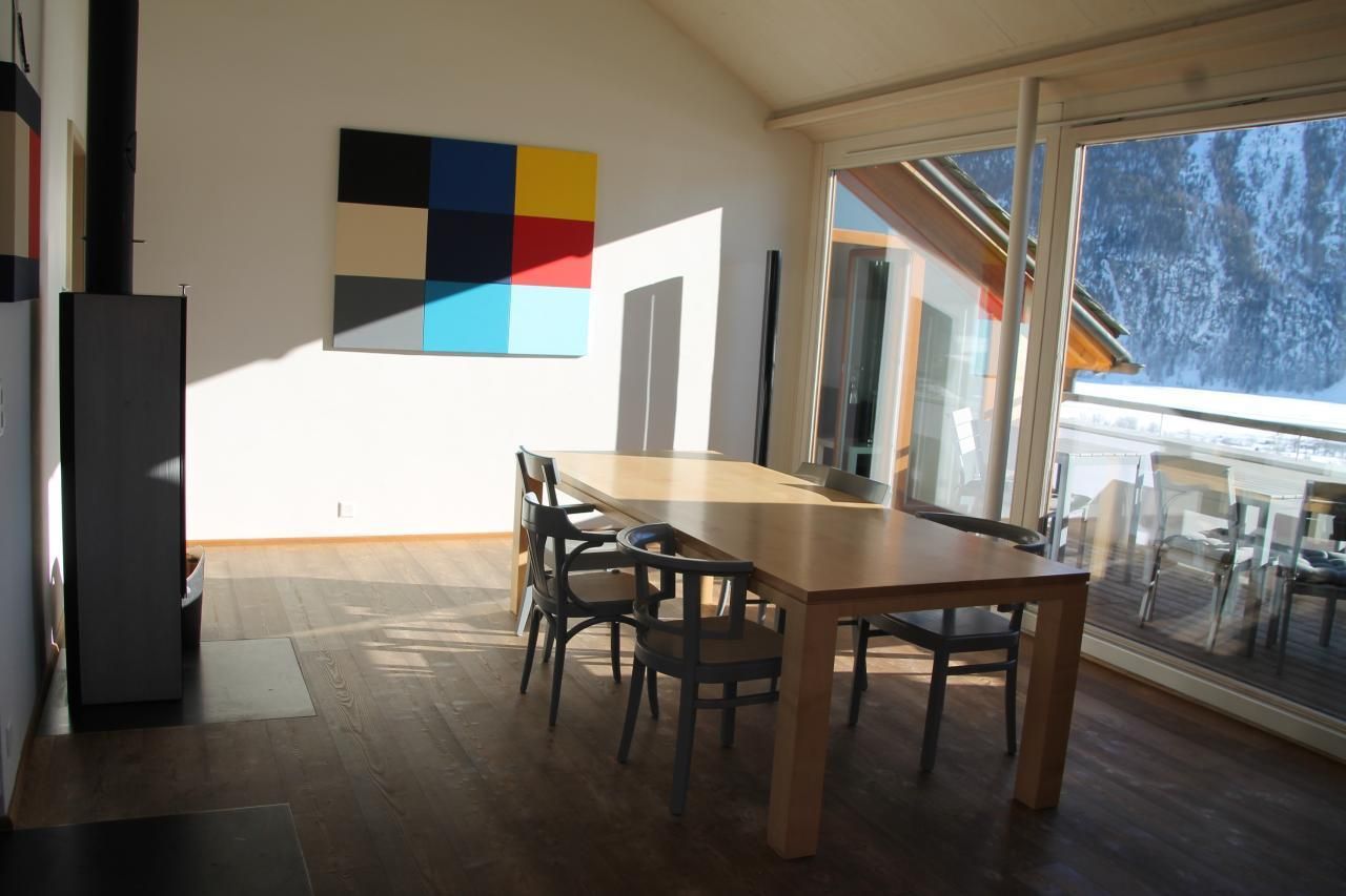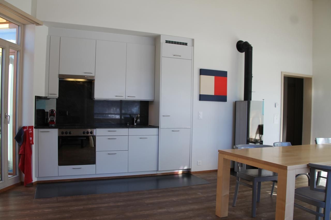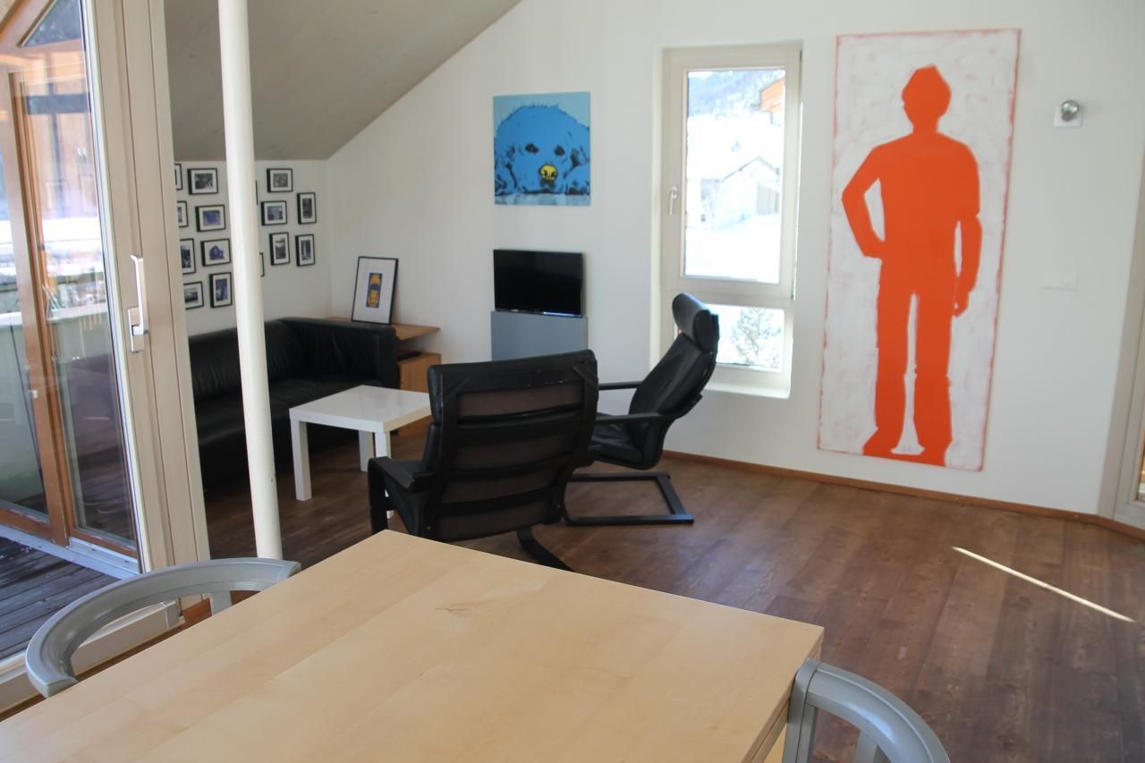 Moderne 3 1/2 Zi-Dachwohnung (3.OG, Lift) in Mehrfamilienhaus, ruhige Lage, 5 Minuten bis ins Zentrum, schöne Aussicht, Tiefgarage mit zwei Parkplätzen, grosses Wohnzimmer mit Küche, 2 Schlafzimmer (eines mit Galerie), Du/WC, Bad/WC, Zentralheizung,Bodenheizung. Schwedenofen,Holzboden, Geschirrspüler, Bachofen/Kochherd, Waschmaschine, Trockner, TV und Radio, Internet, Ski-/Veloraum, auch für 6 Personen geeignet. Grösse: 105 m2