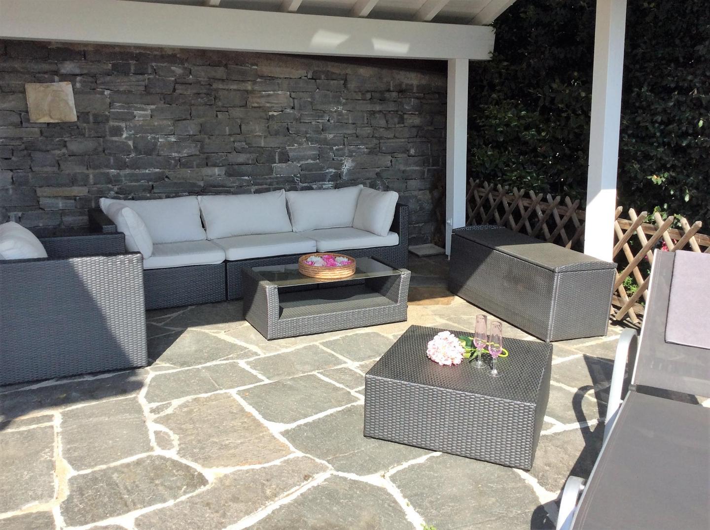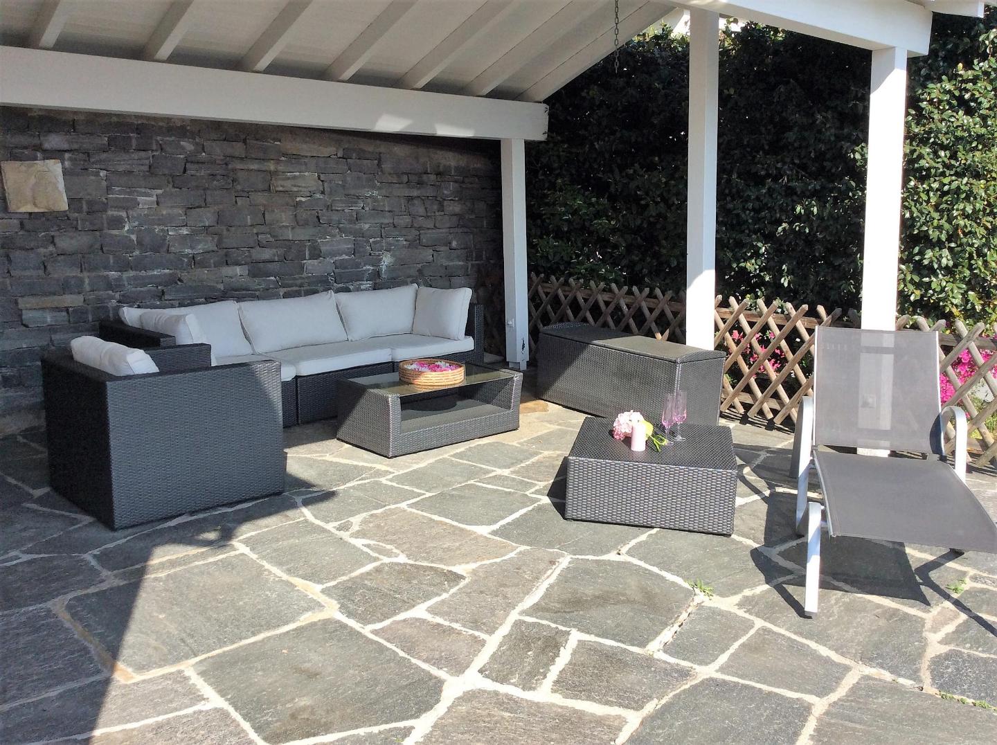 • Sitzplatz mit Tessiner Steintisch mit Pergola
