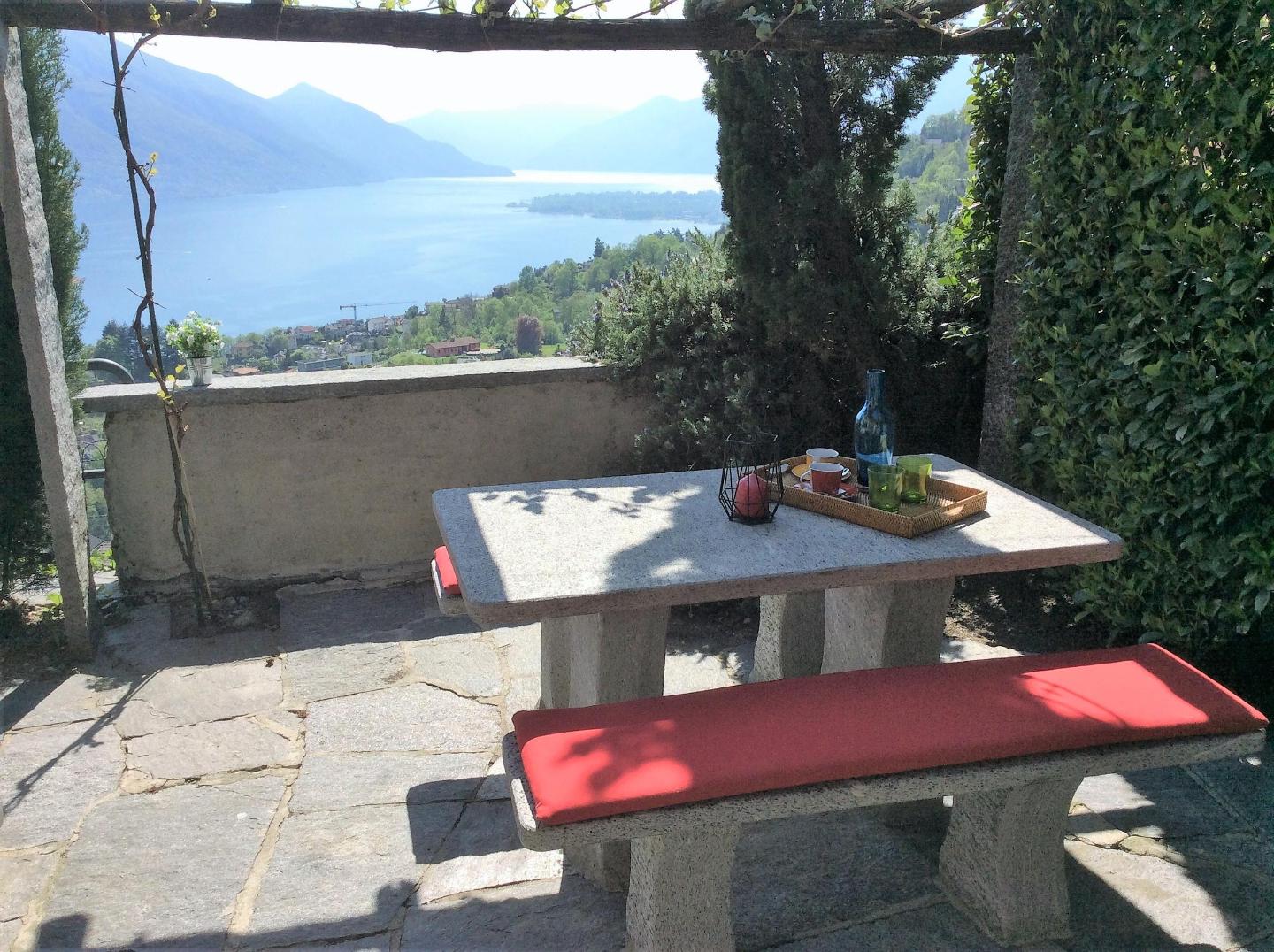 Das 3.5 Zimmer Ferienhaus bietet Platz für 3 Personen. Im Erdgeschoss befindet sich das grosszügige Wohn-, Esszimmer mit offener Küche, einem grossem Esstisch und zwei gemütlichen Sesseln, sowie das Doppelschlafzimmer. Das Haus punktet mit seiner Rundumterrasse und dem uneingeschränkten Panoramablick. Auf der einen Seite befindet sich die grosse, teilweise überdachte Terrasse auf der Sie auch bei schlechterem Wetter den Tag auf der gemütlichen Lounge verbringen können. Auf der anderen Seite können Sie auf dem Tessiner Steintisch mit Pergola Platz nehmen oder auf der Frontterrasse den einmaligen Ausblick geniessen. Das obere Stockwerk ist als Wohnzimmer nutzbar, das ein ausziehbares Sofa für eine weitere Schlafmöglichkeit bietet. Badezimmer mit Wanne, WC und Waschmaschine. Das Haus befindet sich nur wenige Treppen unterhalb der Strasse. Privater Parkplatz direkt vor dem Haus.