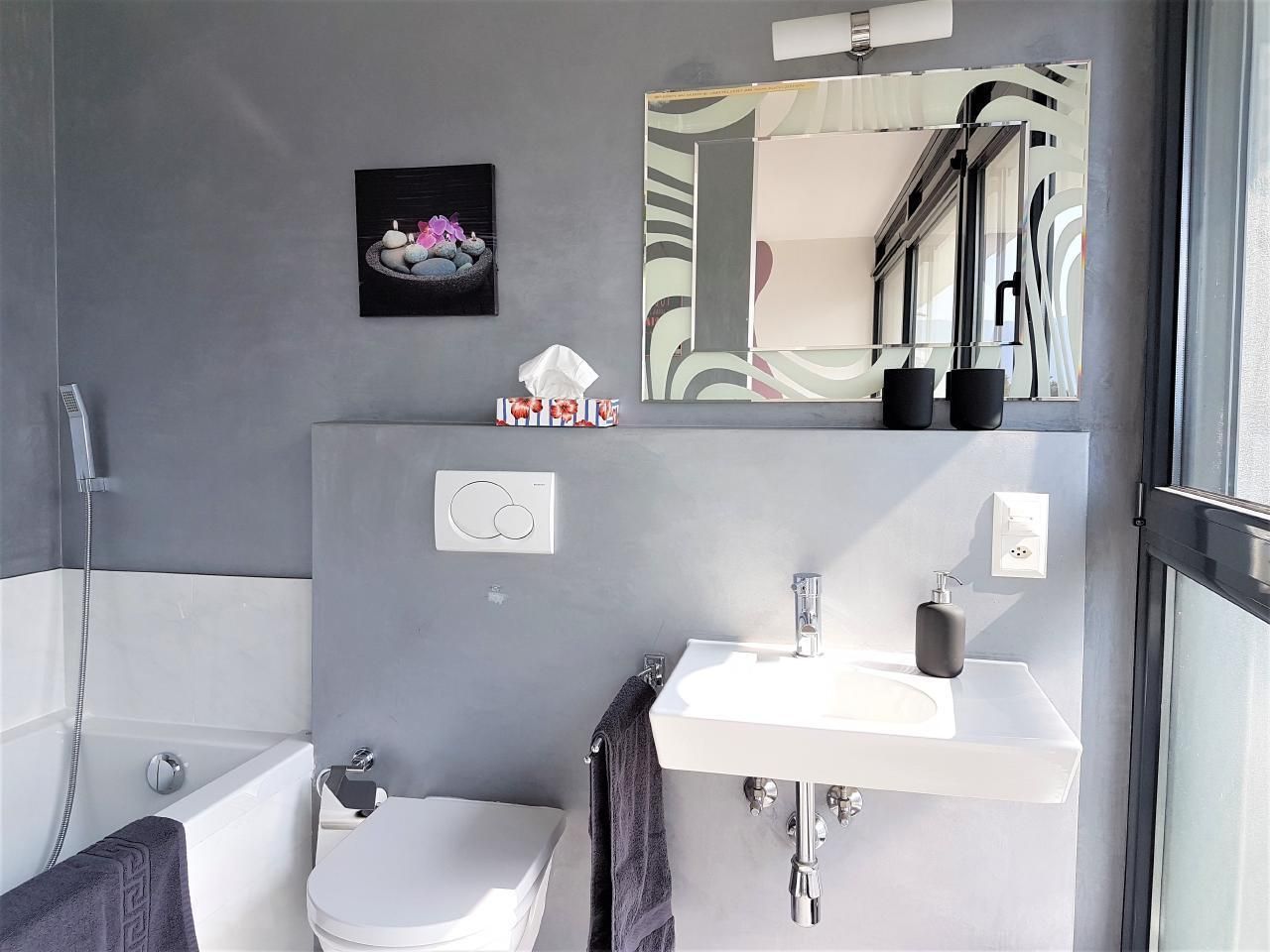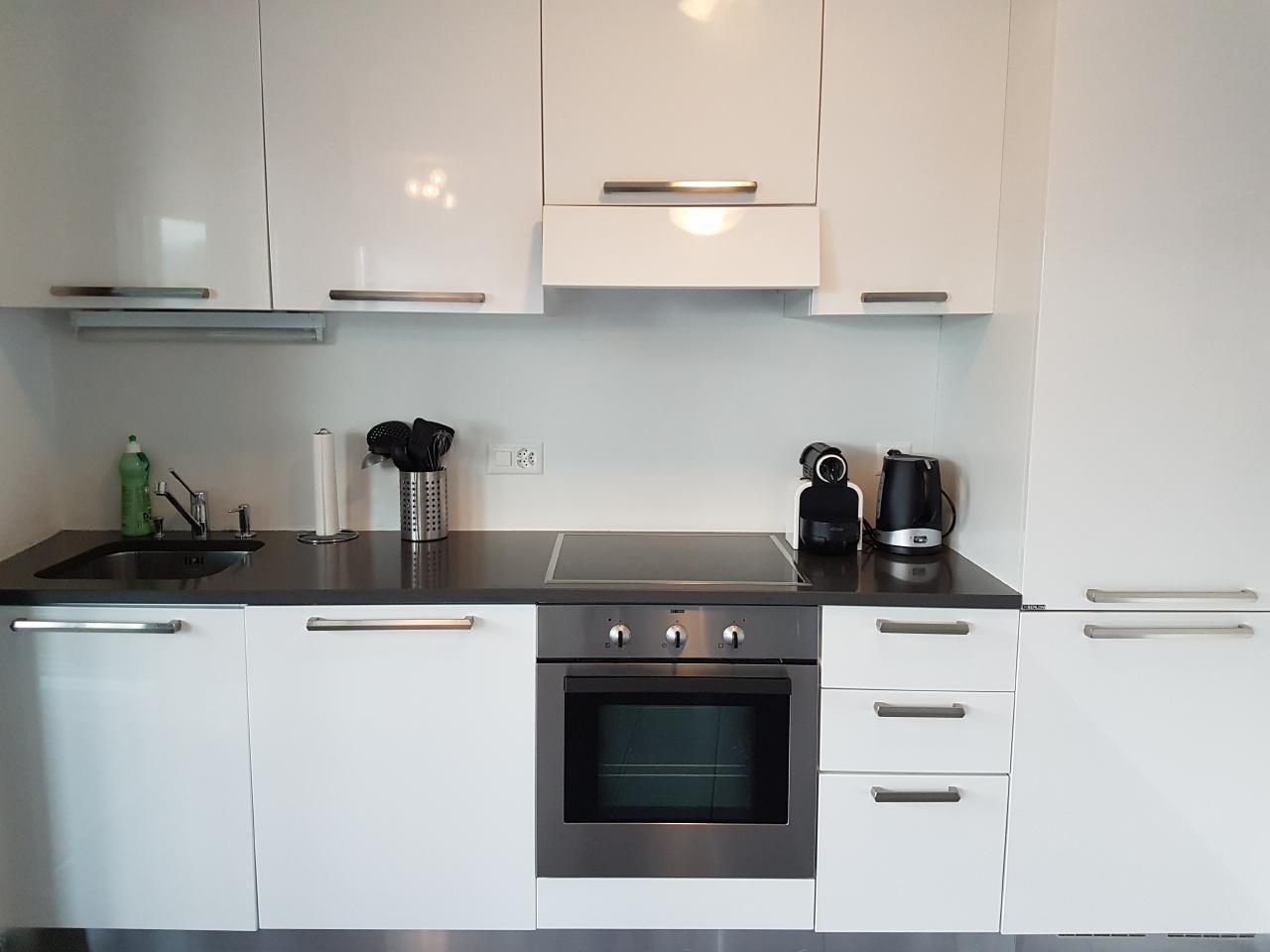 Die Wohnung ist dank der bodentiefen Fenster sehr hell und verfügt über geräumige und moderne Zimmer. Sie verfügt über ein Schlafzimmer mit eigenem Bad (Badewanne) und ein weiteres Schlafzimmer mit einem separaten Bad (Dusche). Der offene Wohn- und Essbereich ist geschmackvoll eingerichtet und lädt mit einer gemütlichen Sitzecke und einem Flachbildfernseher zum Entspannen ein. Die funktionelle Küche ist mit einem Geschirrspüler, einer Kaffeemaschine und allen anderen Annehmlichkeiten ausgestattet, um Ihren Aufenthalt noch angenehmer zu gestalten.