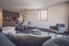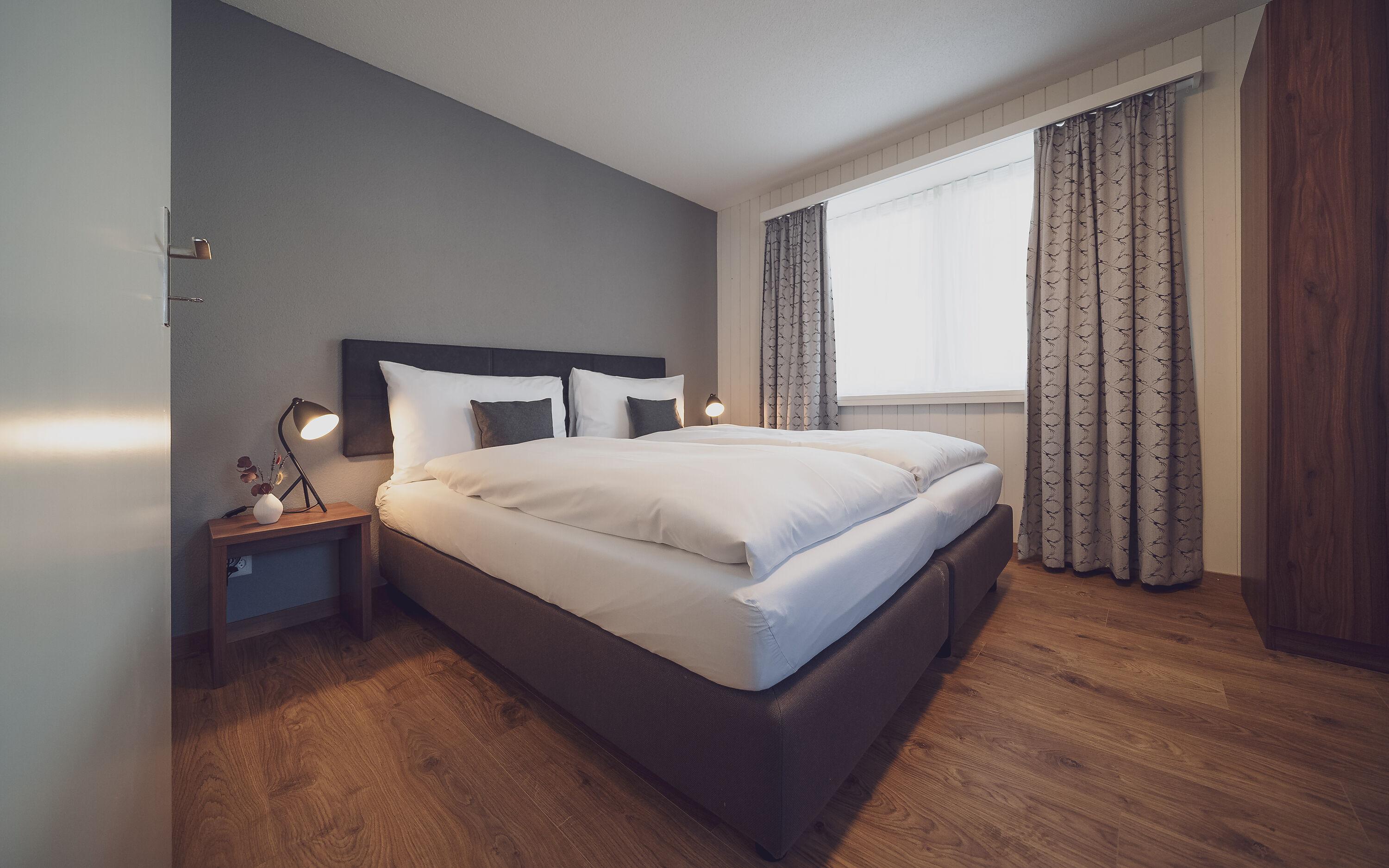 2 ½ Zimmerwohnung (54m2) für 4 Personen; Garagenplatz in der Einstellhalle; zur Mitbenützung grosszügiger Ski- und Bikeraum, Sauna, Fitness; hochwertige Möblierung; Entree mit Garderobe; Küche inkl. Geschirrspüler, Geräte von V-Zug; grosser und heller Wohnraum inkl. Schlafsofa, TV, WLAN; Loggia in Holz ausgekleidet; 1 Schlafzimmer mit Einbauschränken; 1 Nasszelle mit Dusche, WC, Lavabo; separates WC; Nichtraucherwohnung, Haustiere auf Anfrage