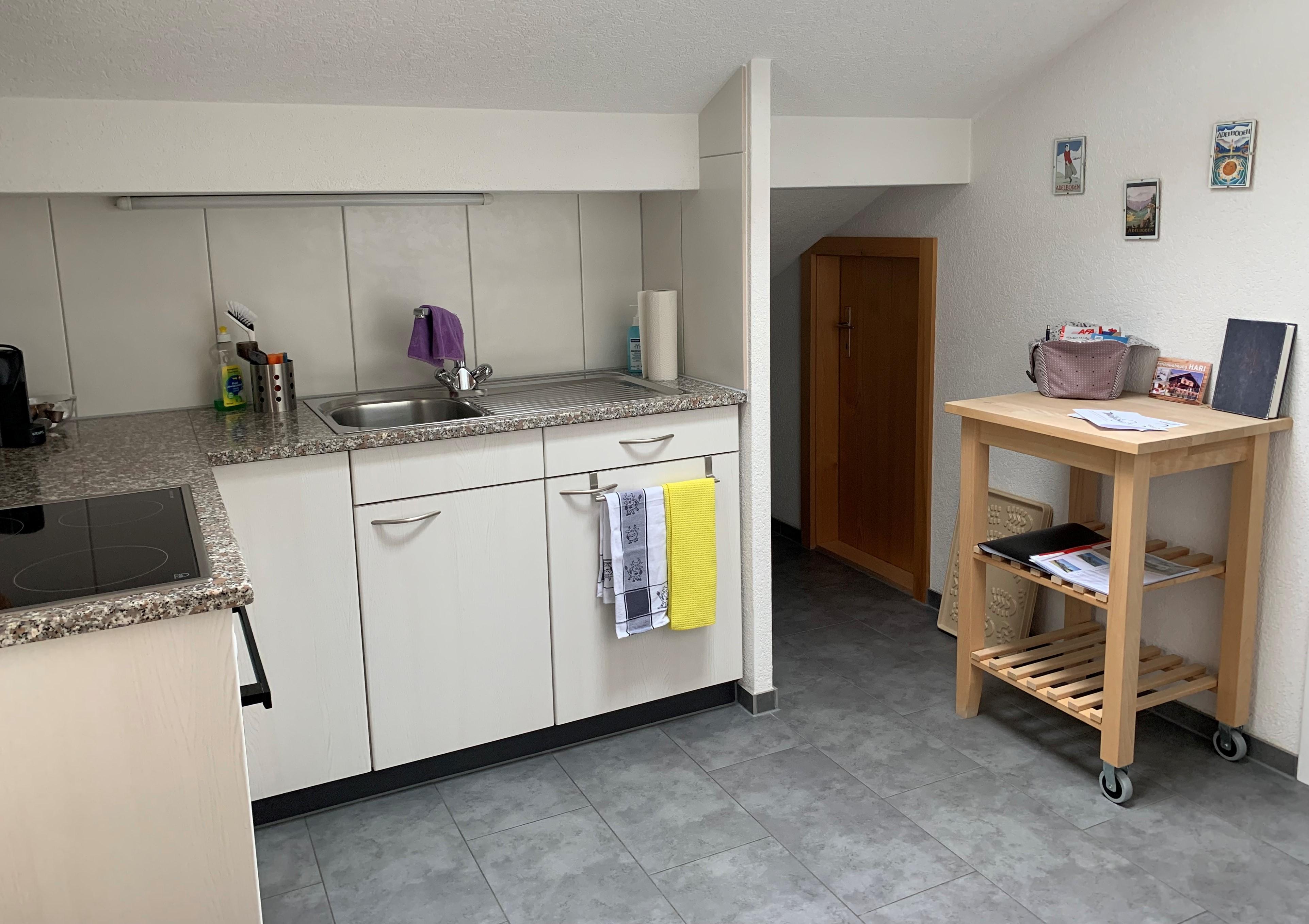 Schöne, renovierte 1.5 Zimmer-Dachwohnung für 2 Personen (30m2) in einem Chalet mit 2 Wohnungen, an zentraler Lage und in unmittelbarer Nähe der Freizeit- und Sportarena, der Bergbahnen sowie der Busstation.