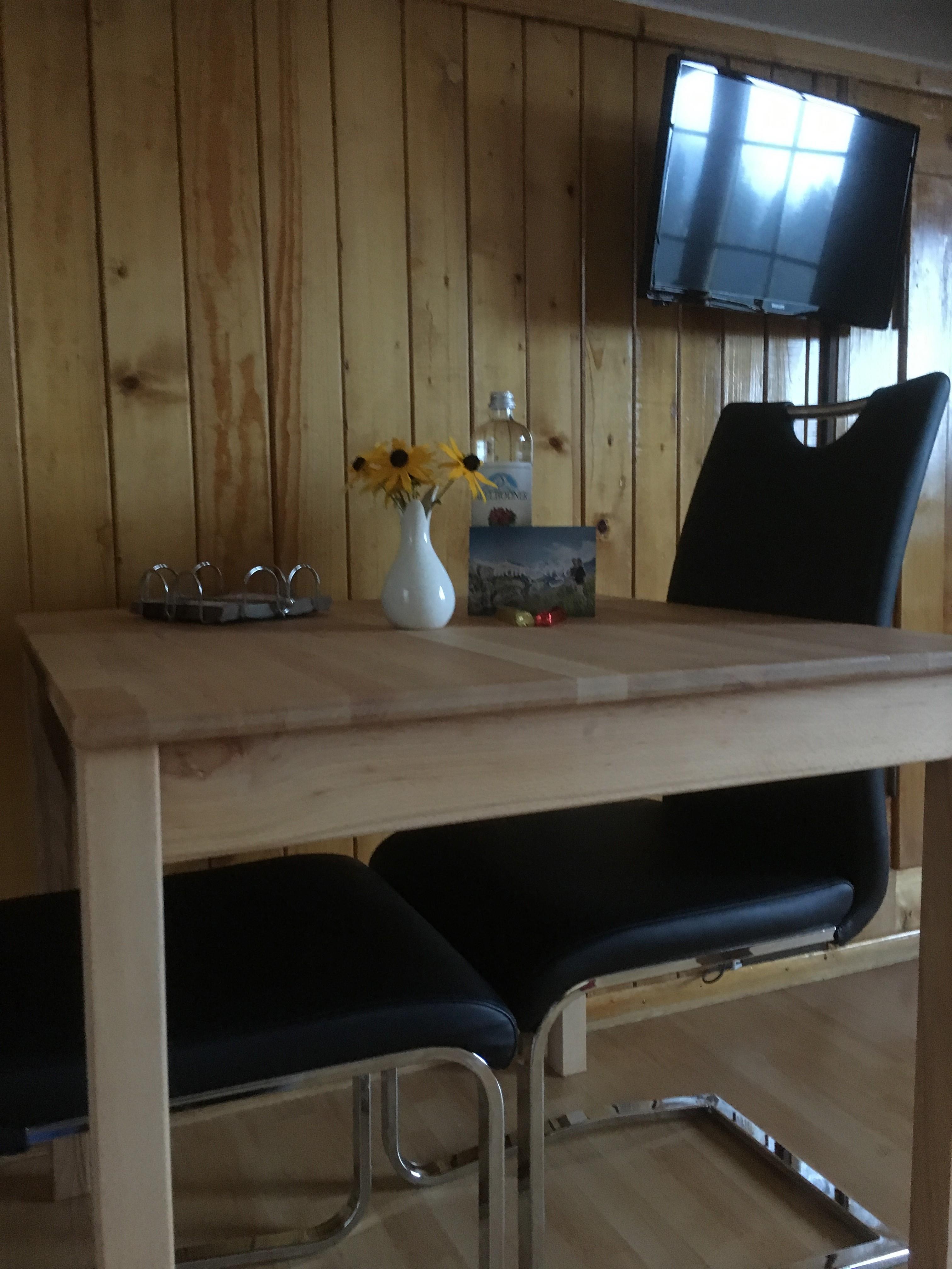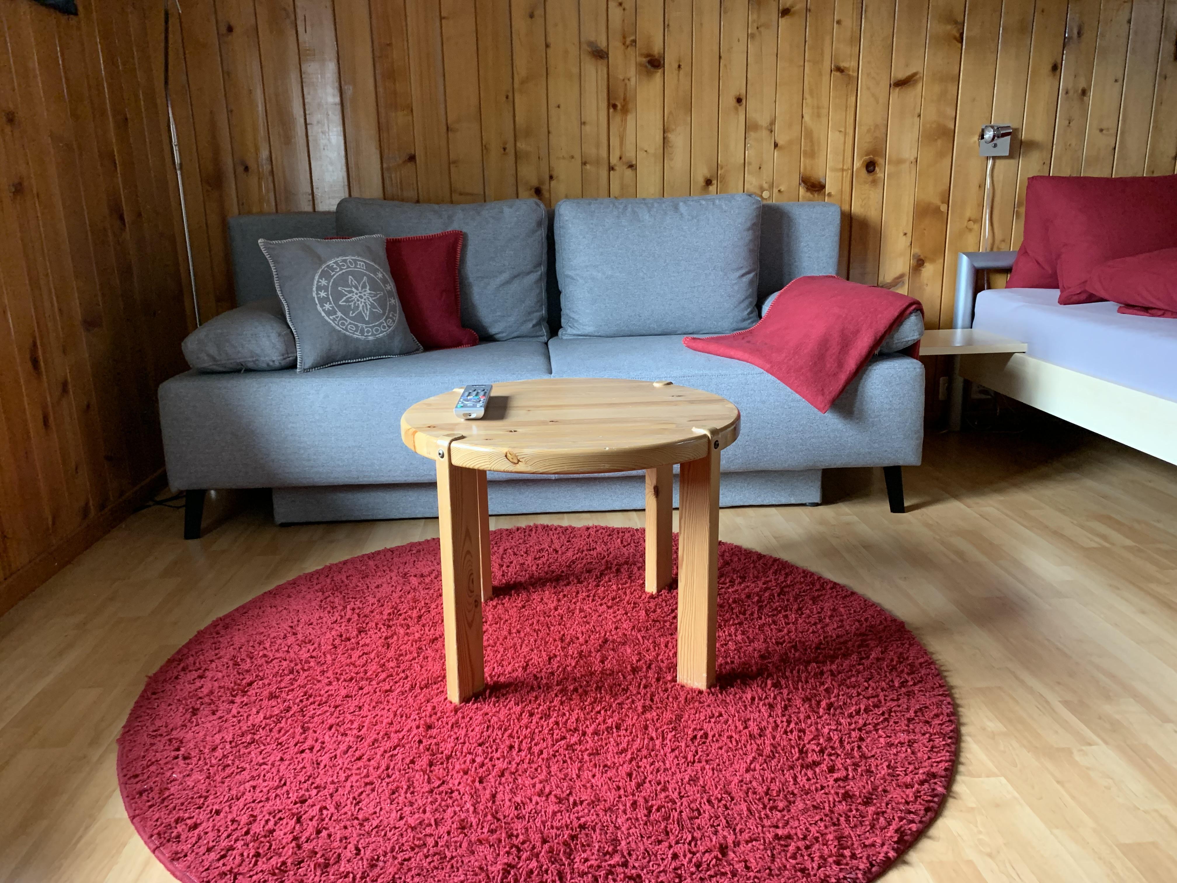 Wohn- und Schlafzimmer mit einem Doppelbett, Sitzecke, Kabel-TV und Esstisch. Küche mit Backofen, Kaffeemaschine, Racletteofen und Fondueset. Ein Badezimmer mit Dusche/WC und Haartrockner. Balkon mit wunderschöner Bergsicht, Parkplatz beim Haus.