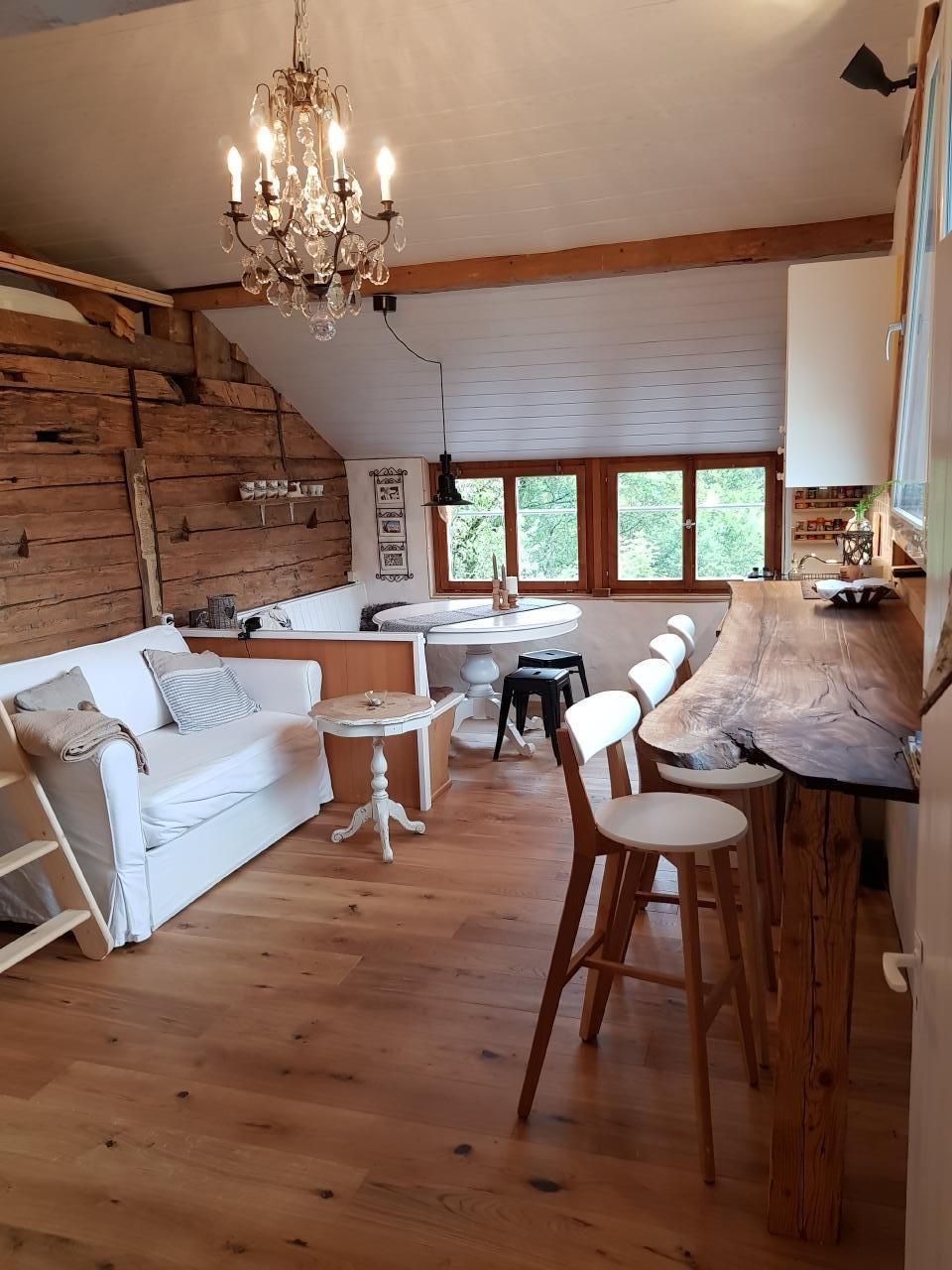 Exclusives Studio mitten in der Natur am Ursprung der Thur. Das Studio Chic besticht durch das moderne und gleichzeitig heimelige Wohnambiente. Die Schlafluke unter dem Dach und das grosse Panoramafenster verleihen dem Raum seine Einzigartigkeit. Hinter dem Haus hat es einen Gartensitzplatz mit einem Whirlpool. Das Studio verfügt über einen separaten Hauseingang. Im Eingangsbereich befindet sich die Garderobe und ein Badezimmer mit Dusche und WC. Zum Studio geht es dann eine Treppe hoch in den ersten Stock. Vom Parkplatz aus führt ein Fussweg von 80 Metern zum Haus. Das Haus ist sehr ruhig gelegen und trotzdem zentral, denn in wenigen Minuten erreicht man die Einkaufsmöglichkeiten oder die Bergbahnen. Wildhaus ist im Winter schön zum Skifahren oder Schneeschuhlaufen, bietet aber auch zu den anderen Jahreszeiten ein abwechslungsreiches Freizeitangebot.