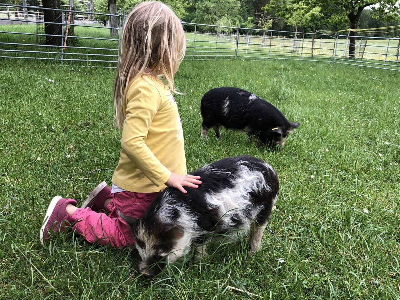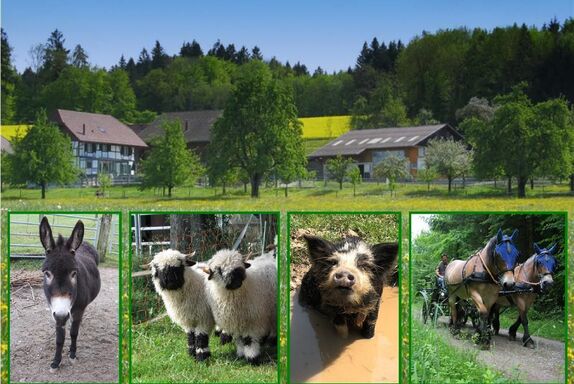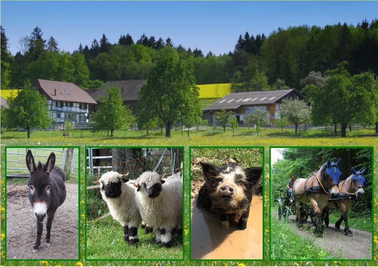 Auf dem idyllischen Pferde - und Eselhof an schöner Aussichtslage können Sie das Bauernhofleben mit Pferden, Eseln, Walliser Schwarznasenschafen, Kune Kune Schweinchen und Katzen hautnah erleben.