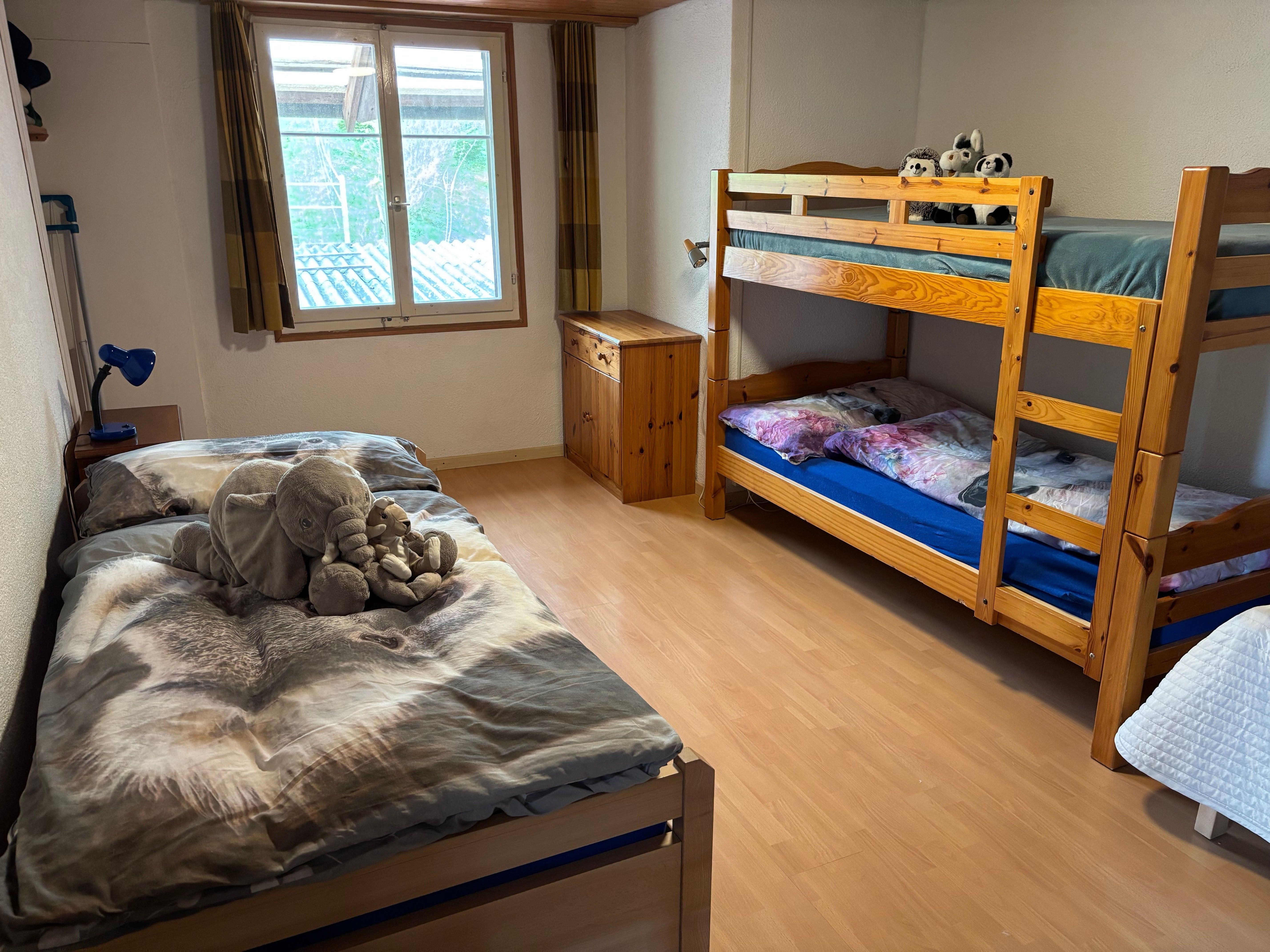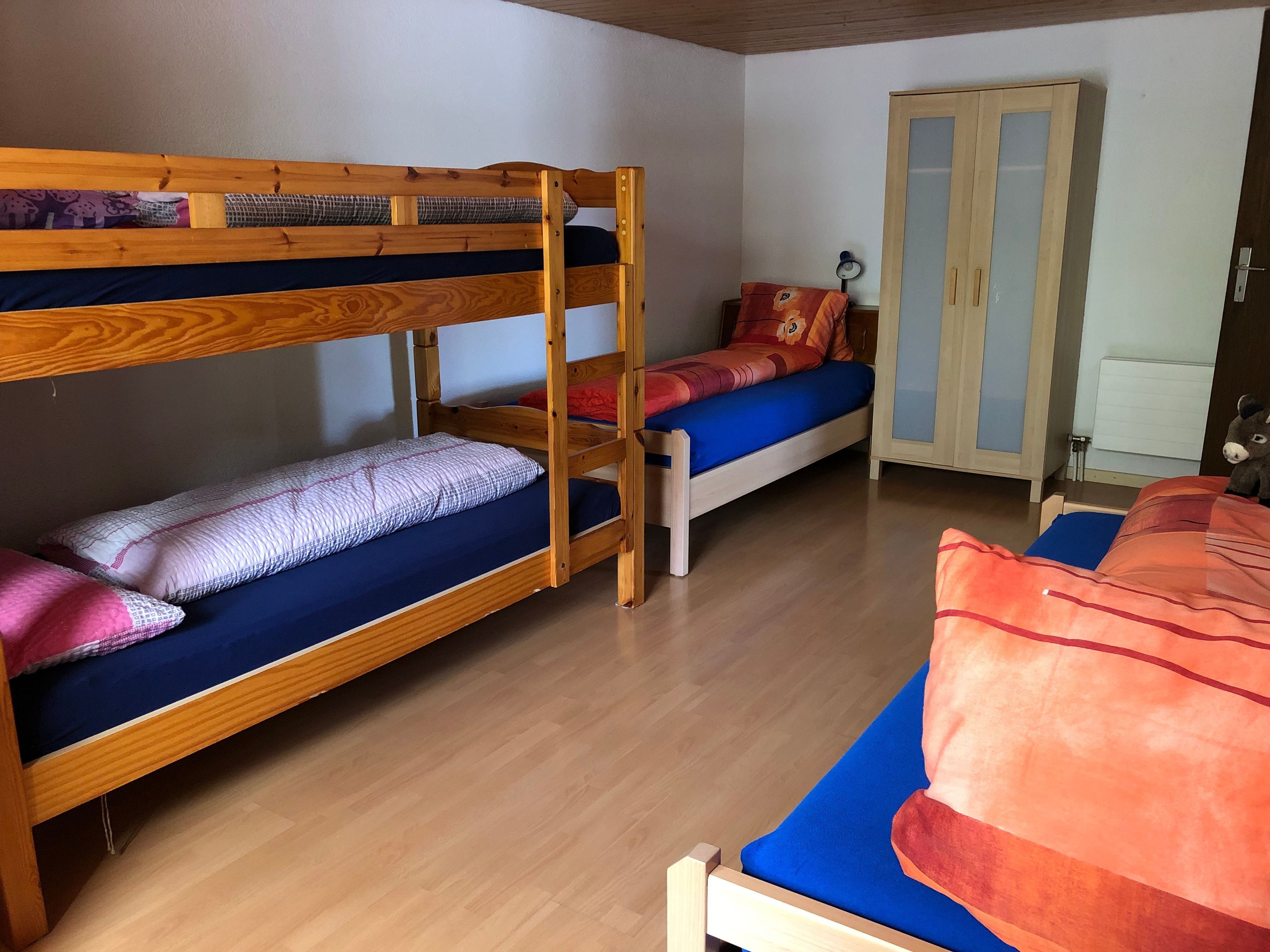2 Einzelbetten, Hochbett, Kleiderschrank, Kommode, Stuhl, Ablage, kleine Kommode, Bettschrank.